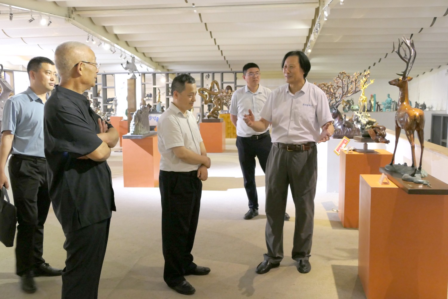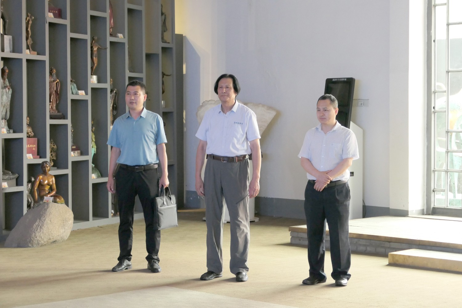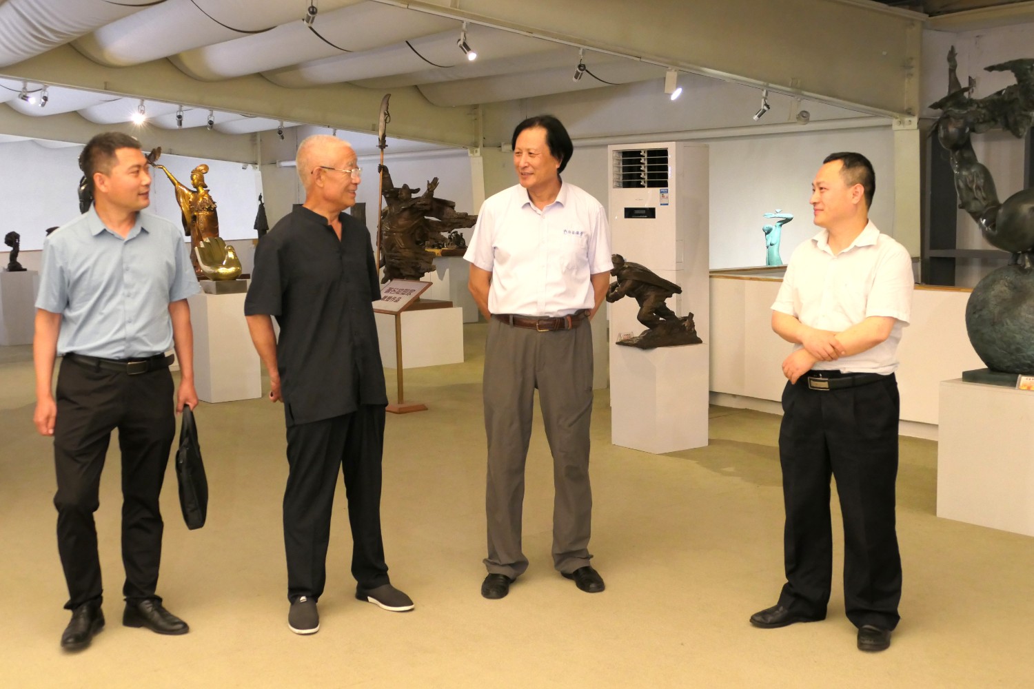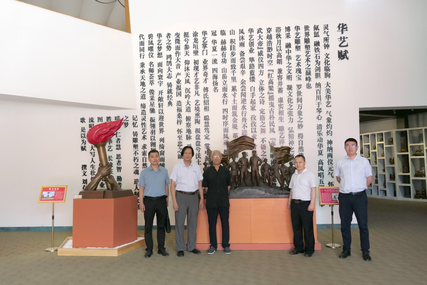 2022年6月23日,青島鐵路有限責(zé)任公司濰坊分公司總經(jīng)理宋文超,中鐵上海設(shè)計院曹棟,中鐵二十三局集團中原區(qū)域總部濰坊分公司經(jīng)理李善龍,中鐵二十三局集團程向明一行,蒞臨華藝雕塑參觀指導(dǎo)。傅紹相與嘉賓進行友好交流及介紹文創(chuàng)雕塑作品。