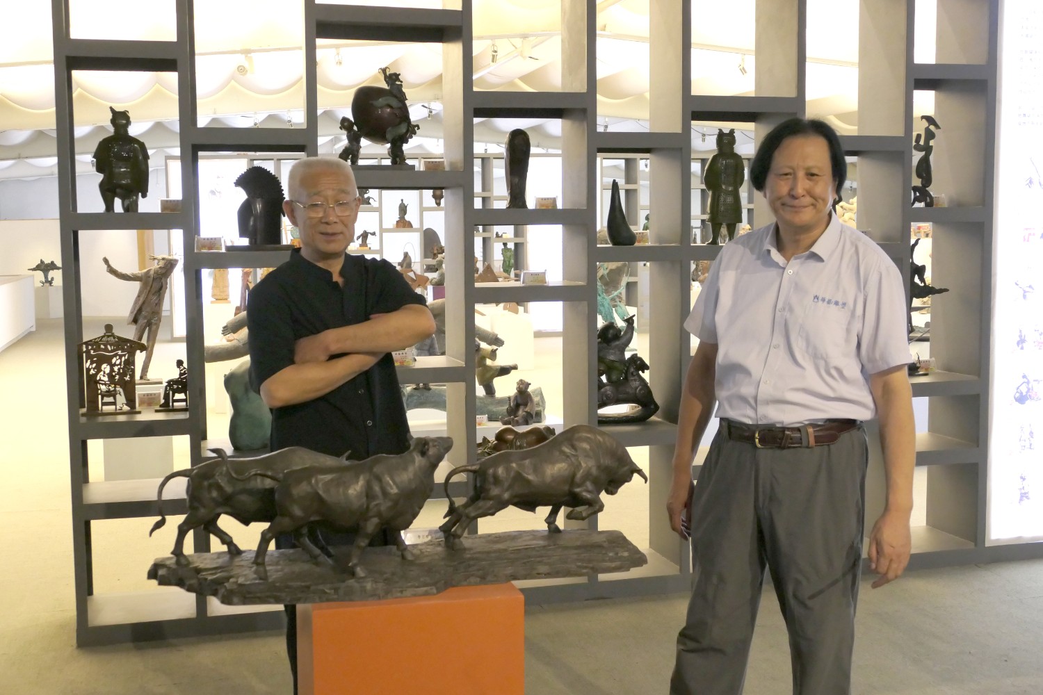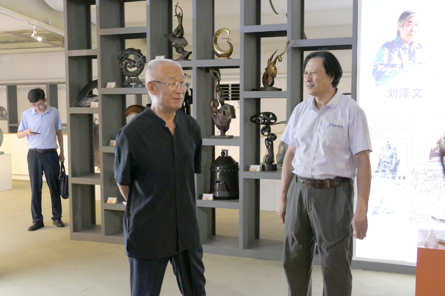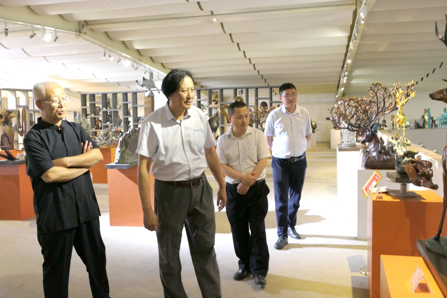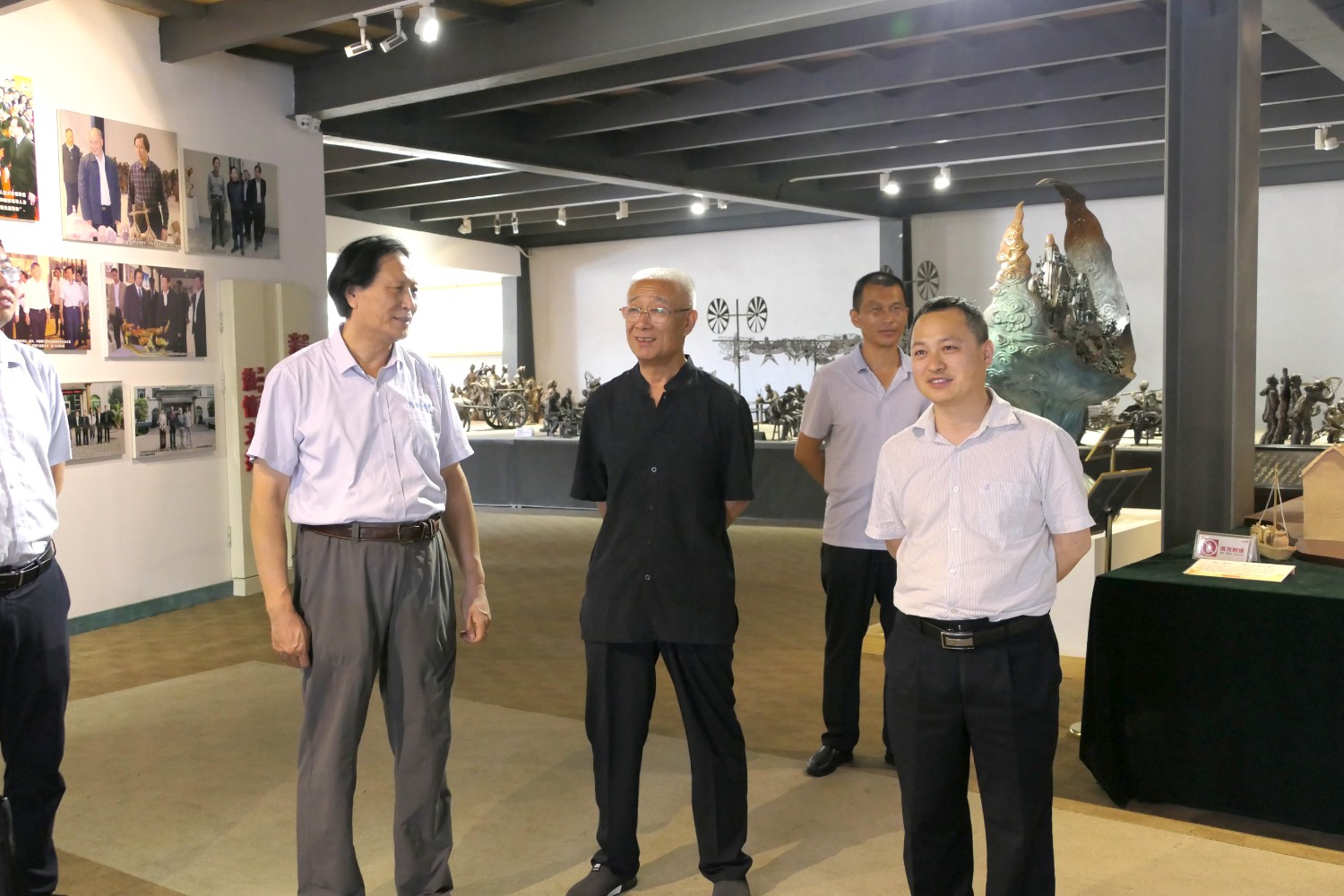 2022年6月23日,青島鐵路有限責(zé)任公司濰坊分公司總經(jīng)理宋文超,中鐵上海設(shè)計院曹棟,中鐵二十三局集團中原區(qū)域總部濰坊分公司經(jīng)理李善龍,中鐵二十三局集團程向明一行,蒞臨華藝雕塑參觀指導(dǎo)。傅紹相與嘉賓進行友好交流及介紹文創(chuàng)雕塑作品。