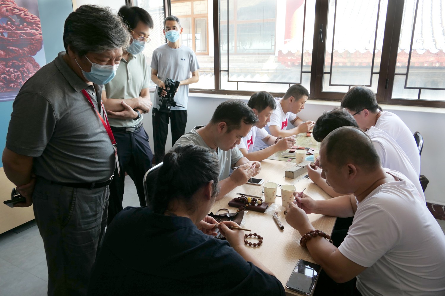 2022-12-152022年7月8日,“山東?。ㄌ遥┖说裰l(xiāng)”榮譽(yù)稱號(hào)復(fù)評(píng)復(fù)審會(huì)議在濰坊藍(lán)海大酒店舉行,山東省工藝美術(shù)協(xié)會(huì)袁敏會(huì)長(zhǎng)、齊魯工業(yè)大學(xué)藝術(shù)學(xué)院魏嘉院長(zhǎng)、山東省工藝美術(shù)學(xué)會(huì)會(huì)長(zhǎng)、山東華藝雕塑藝術(shù)股份有限公司董事長(zhǎng)傅紹相、濰坊市工美協(xié)會(huì)丁傳信會(huì)長(zhǎng)、濰城區(qū)宣傳部孫效治部長(zhǎng)、濰城區(qū)張偉副區(qū)長(zhǎng)、濰城區(qū)文旅局趙炳平局長(zhǎng)等,參加濰坊市“山東省(桃)核雕之鄉(xiāng)”復(fù)評(píng)復(fù)審活動(dòng)。期間,參觀了十笏園“山東手造?濰尚有禮”、核雕工坊及手工藝博物館,華藝雕塑有多件作品在此展出。