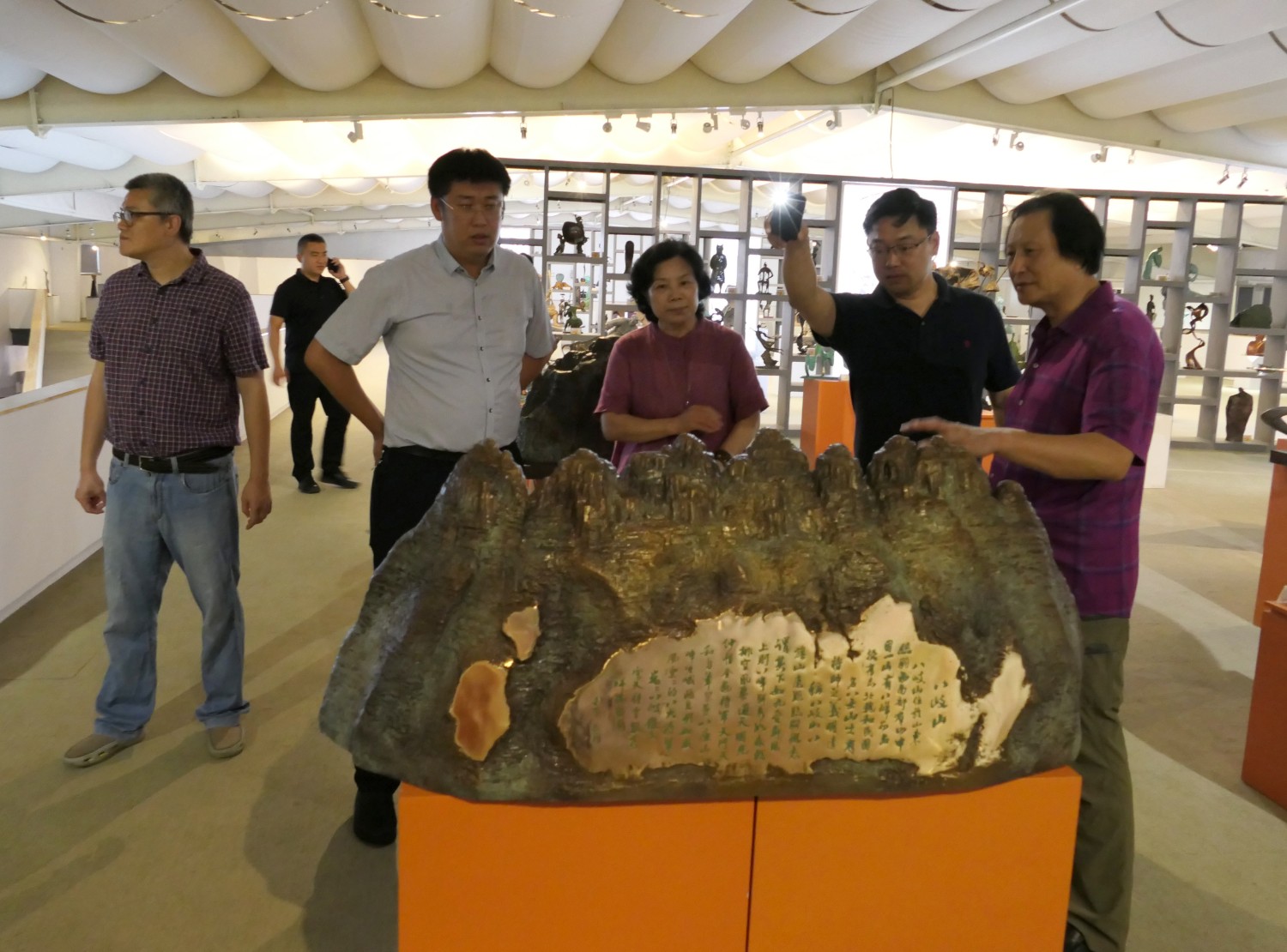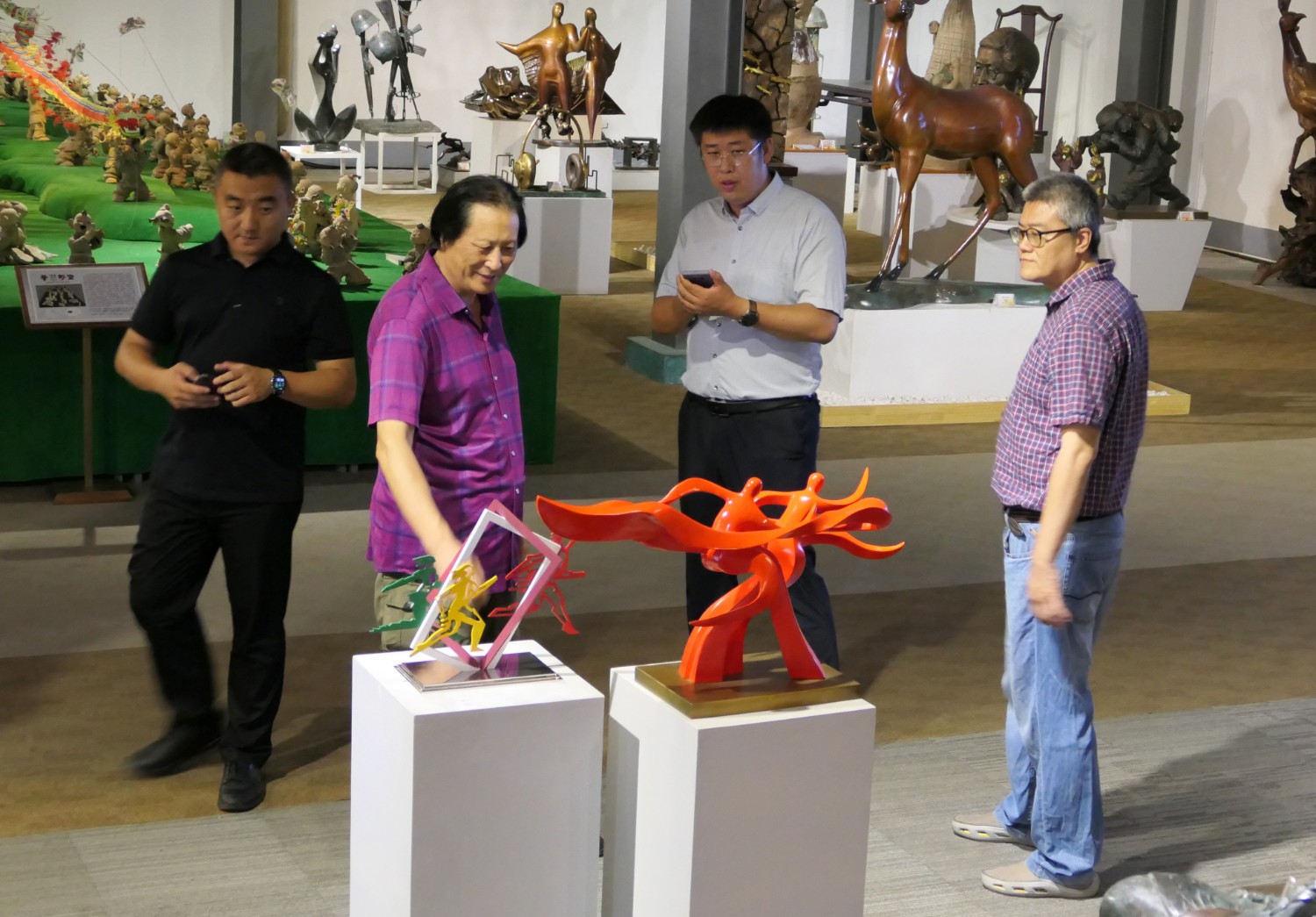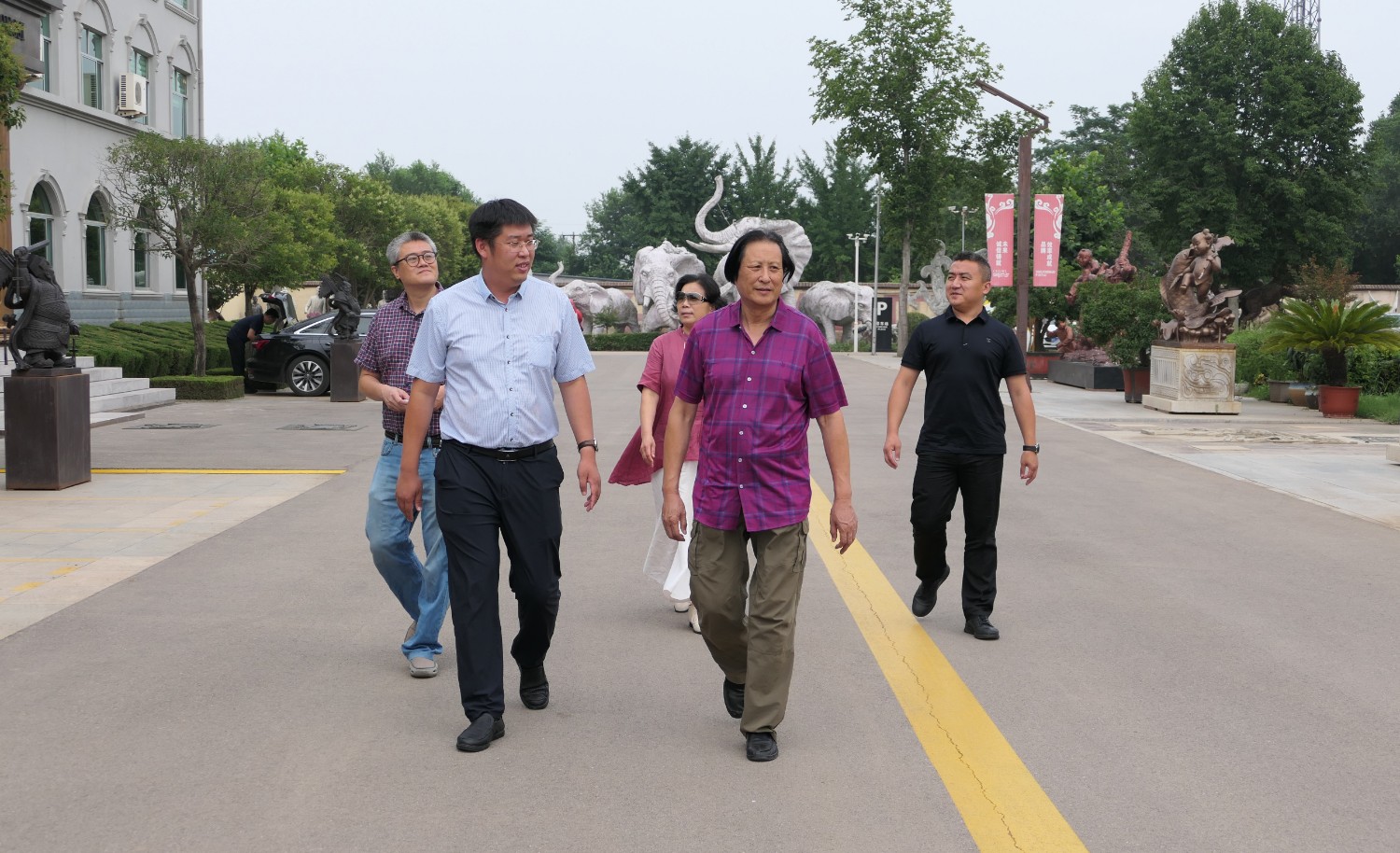 2022年7月11日, 淄博山東四合美術(shù)館王麗君館長陪同淄博市有關(guān)領(lǐng)導(dǎo)蒞臨華藝雕塑參觀指導(dǎo),傅紹相董事長介紹雕塑藝術(shù)。