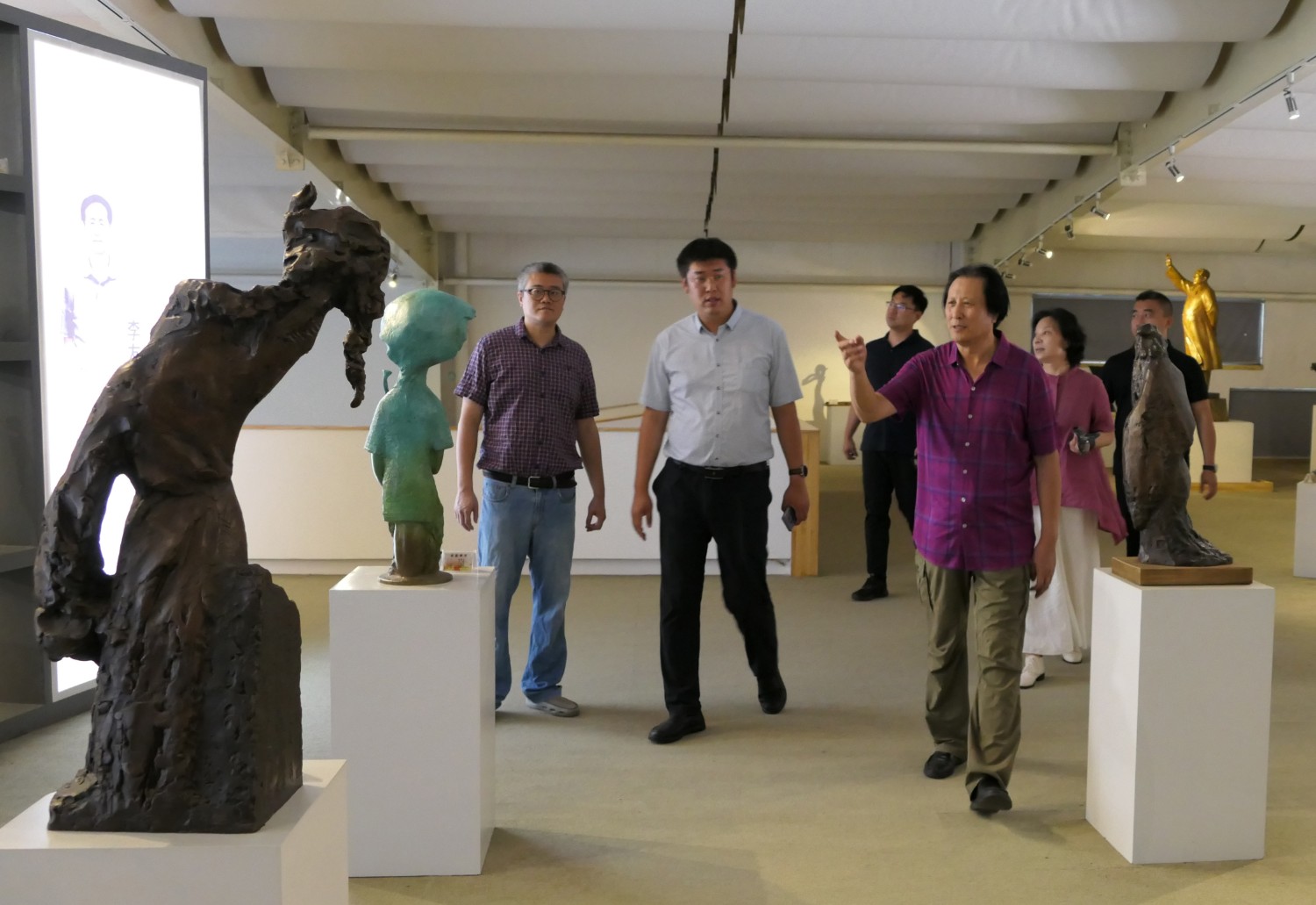 2022年7月11日, 淄博山東四合美術(shù)館王麗君館長陪同淄博市有關(guān)領(lǐng)導(dǎo)蒞臨華藝雕塑參觀指導(dǎo)