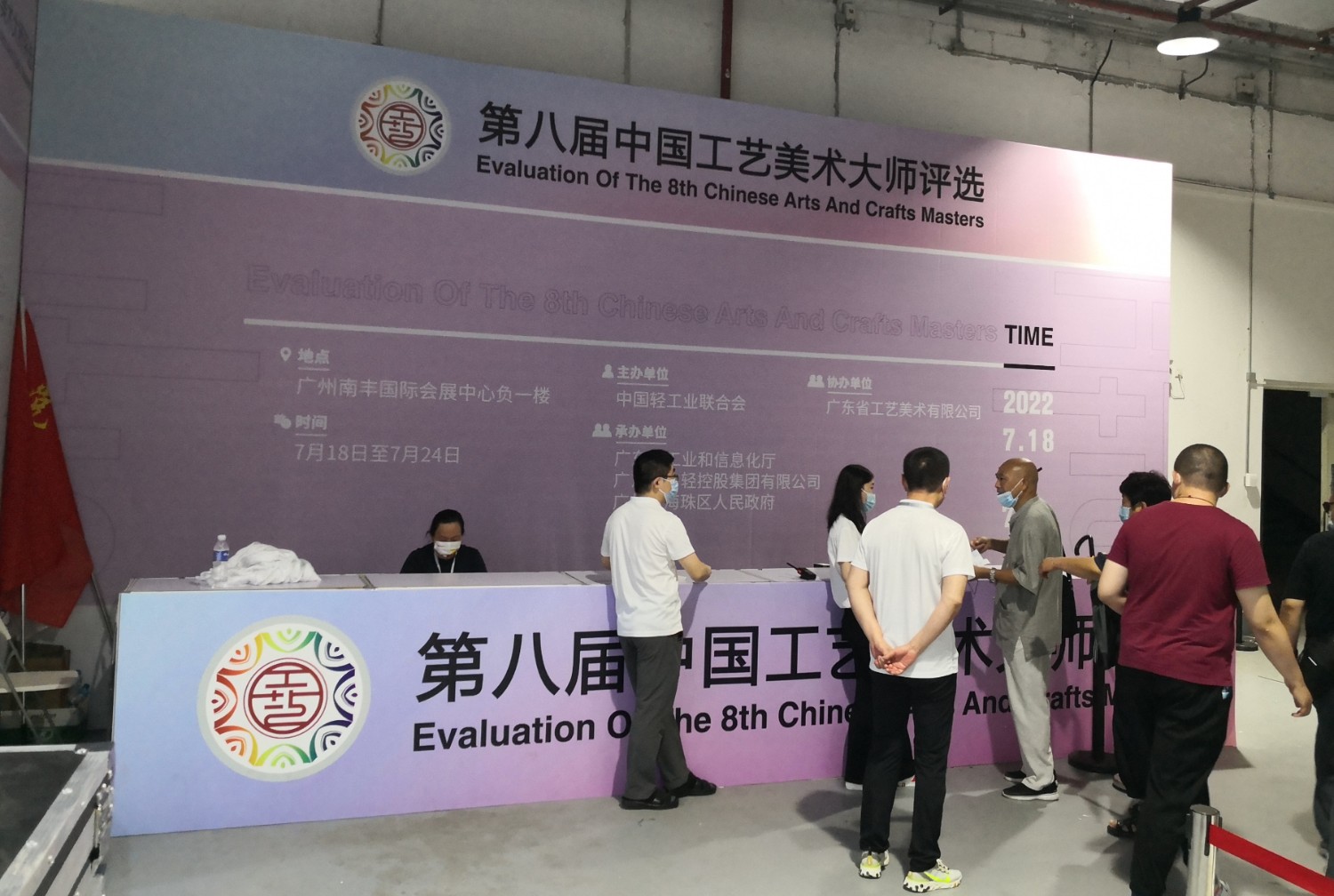 2022年7月20日,第八屆中國工藝美術大師評選在廣州南豐匯國際展覽中心隆重舉行,傅紹相精心布展的三件套作品《九鹿鳴春》《綠水青山》《放飛?放歌夢想?山娃》參加評審,經過第八屆中國工藝美術大師評審組的公平公正的嚴格評審,傅紹相榮獲“第八屆工藝美術大師”稱號。