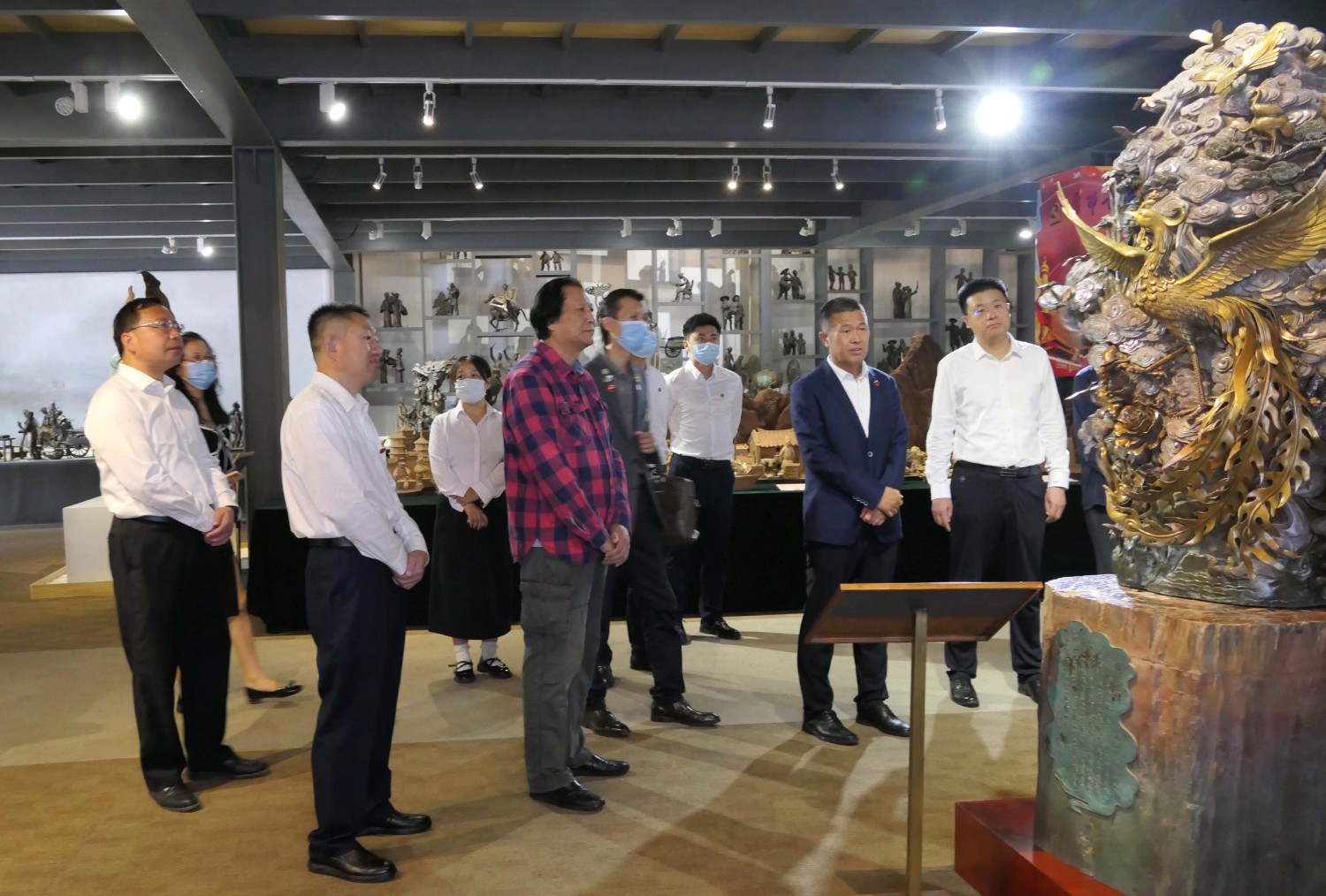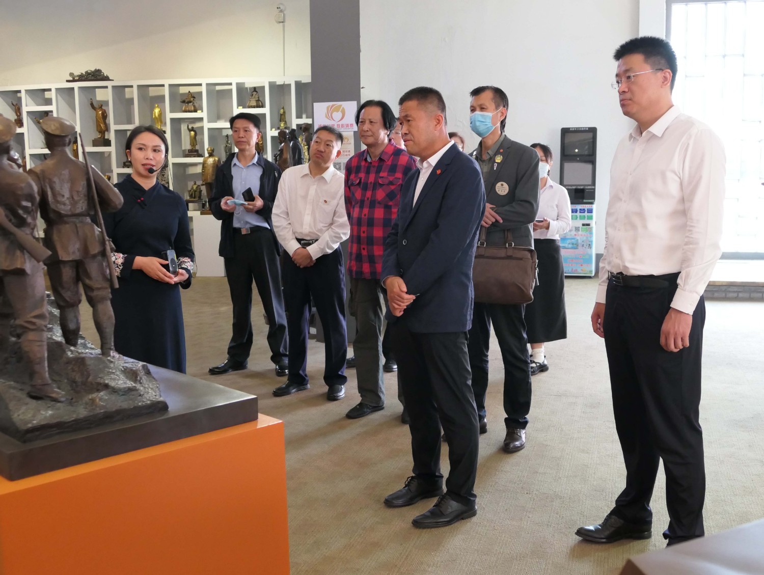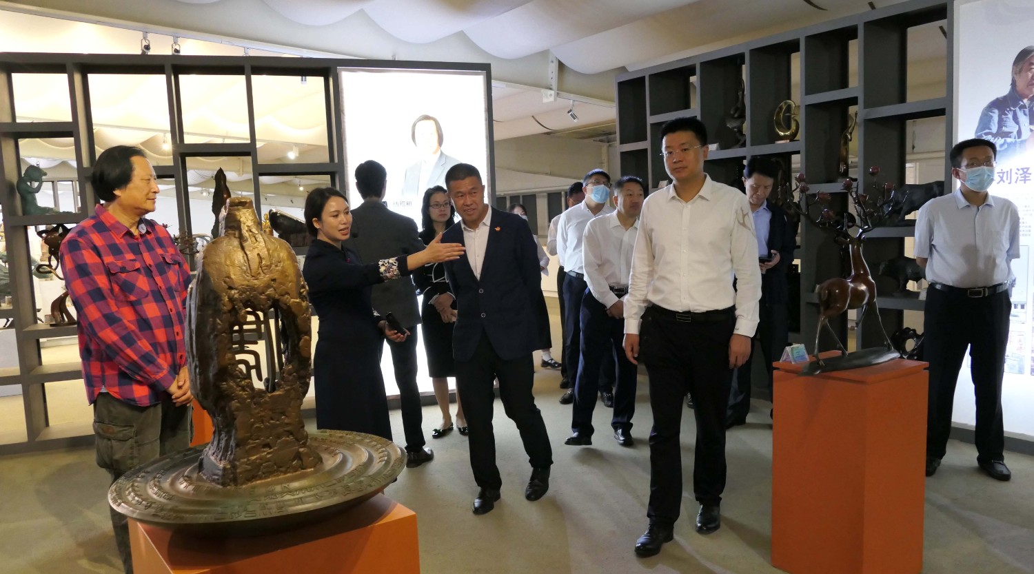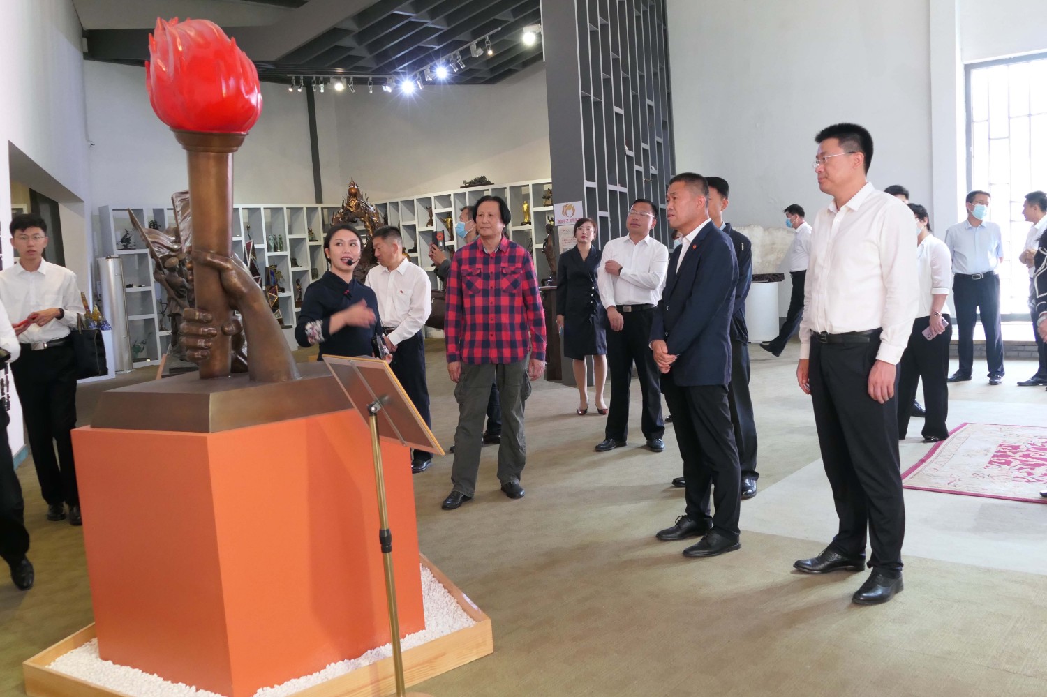 2022年9月27日,臨朐縣縣長陳誠、城關街道辦書記劉洪科等領導陪同千喜鶴集團董事長劉延云,全國工商聯(lián)餐飲業(yè)委員秘書長方立成一行10人,蒞臨華藝雕塑參觀指導。傅紹相董事長向嘉賓介紹雕塑藝術。