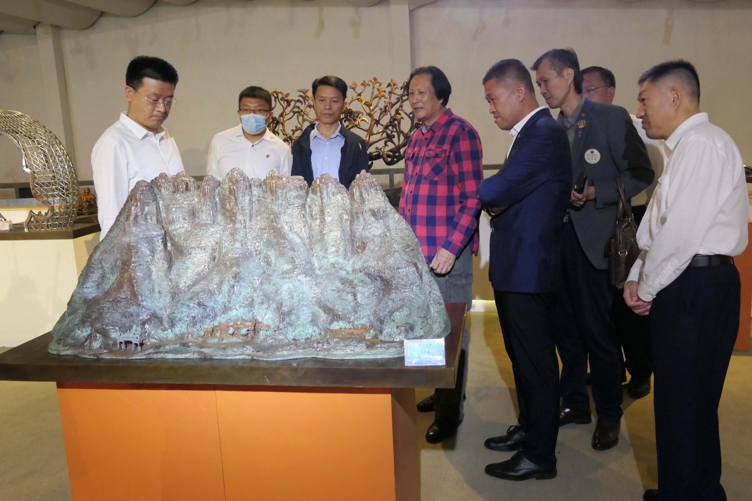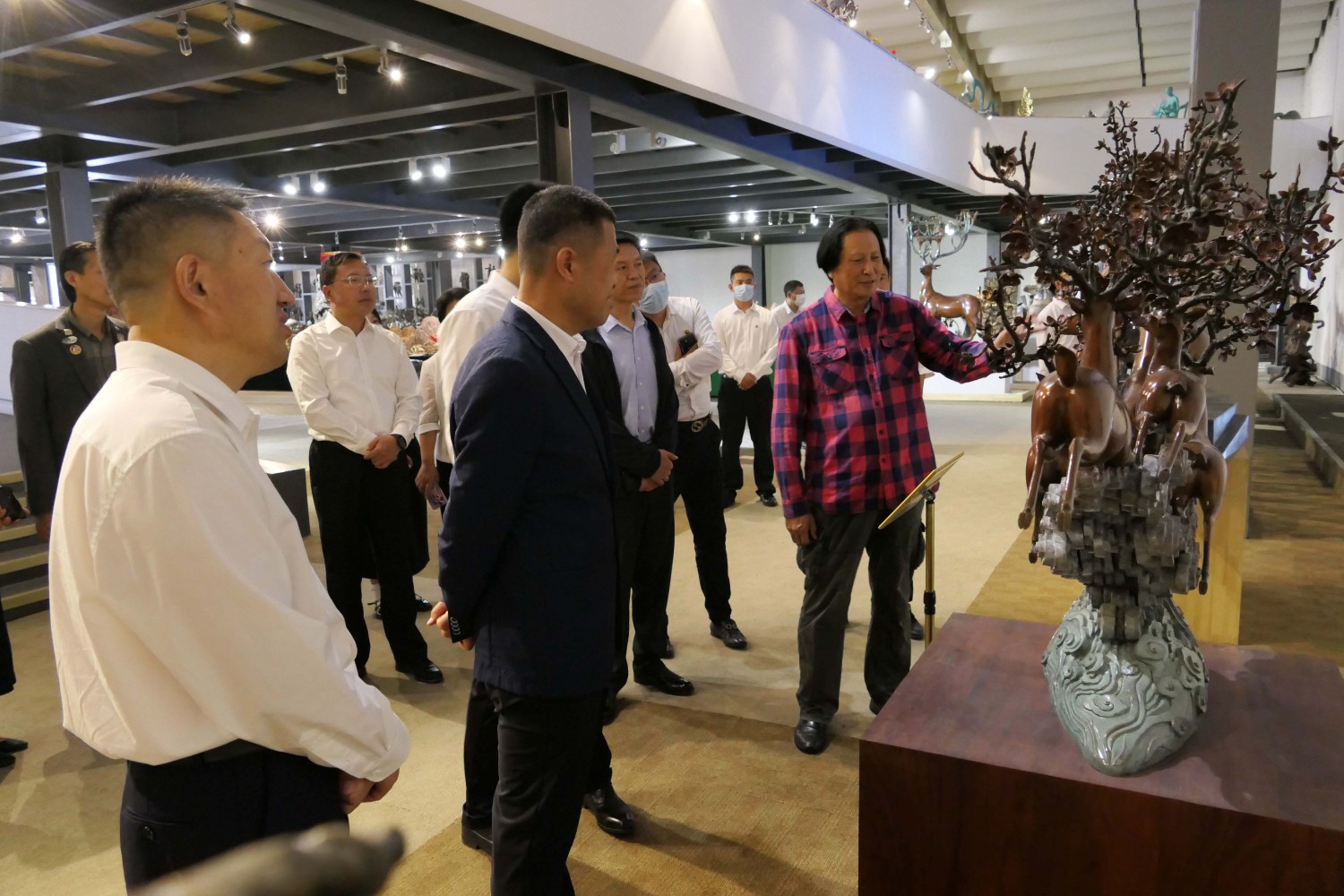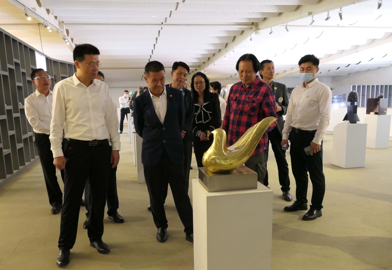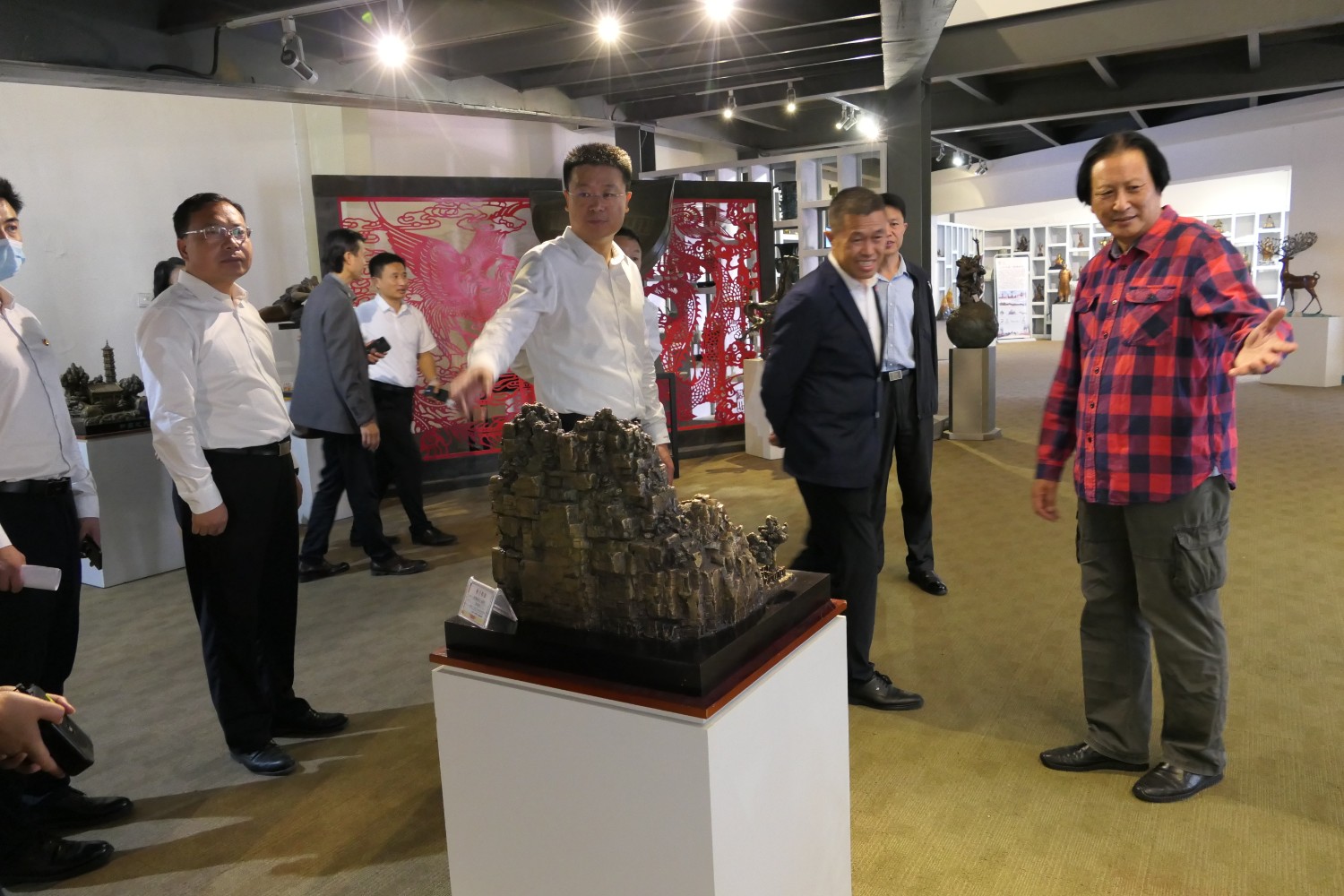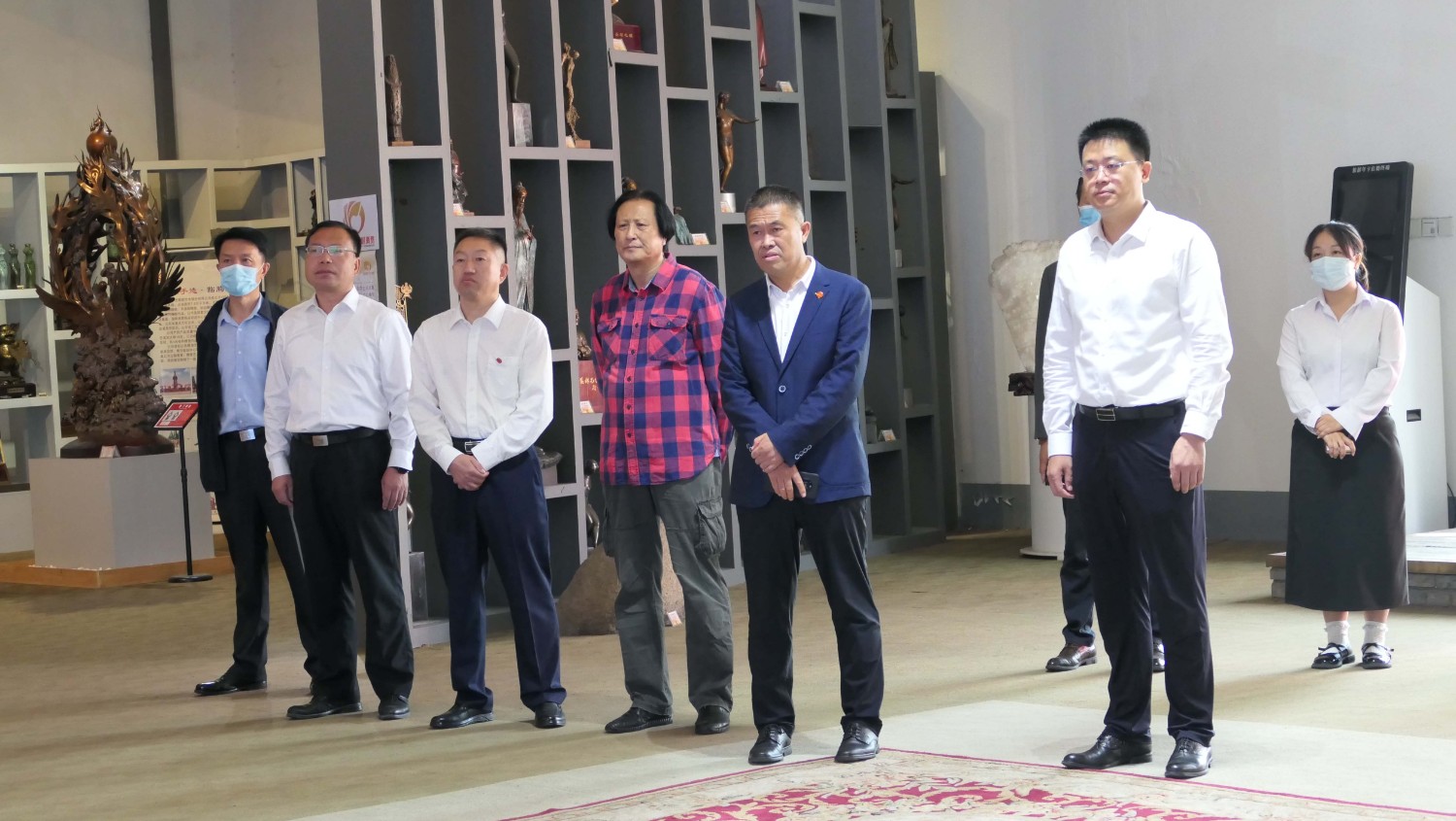 2022年9月27日,臨朐縣縣長陳誠、城關街道辦書記劉洪科等領導陪同千喜鶴集團董事長劉延云,全國工商聯(lián)餐飲業(yè)委員秘書長方立成一行10人,蒞臨華藝雕塑參觀指導。傅紹相董事長向嘉賓介紹雕塑藝術。