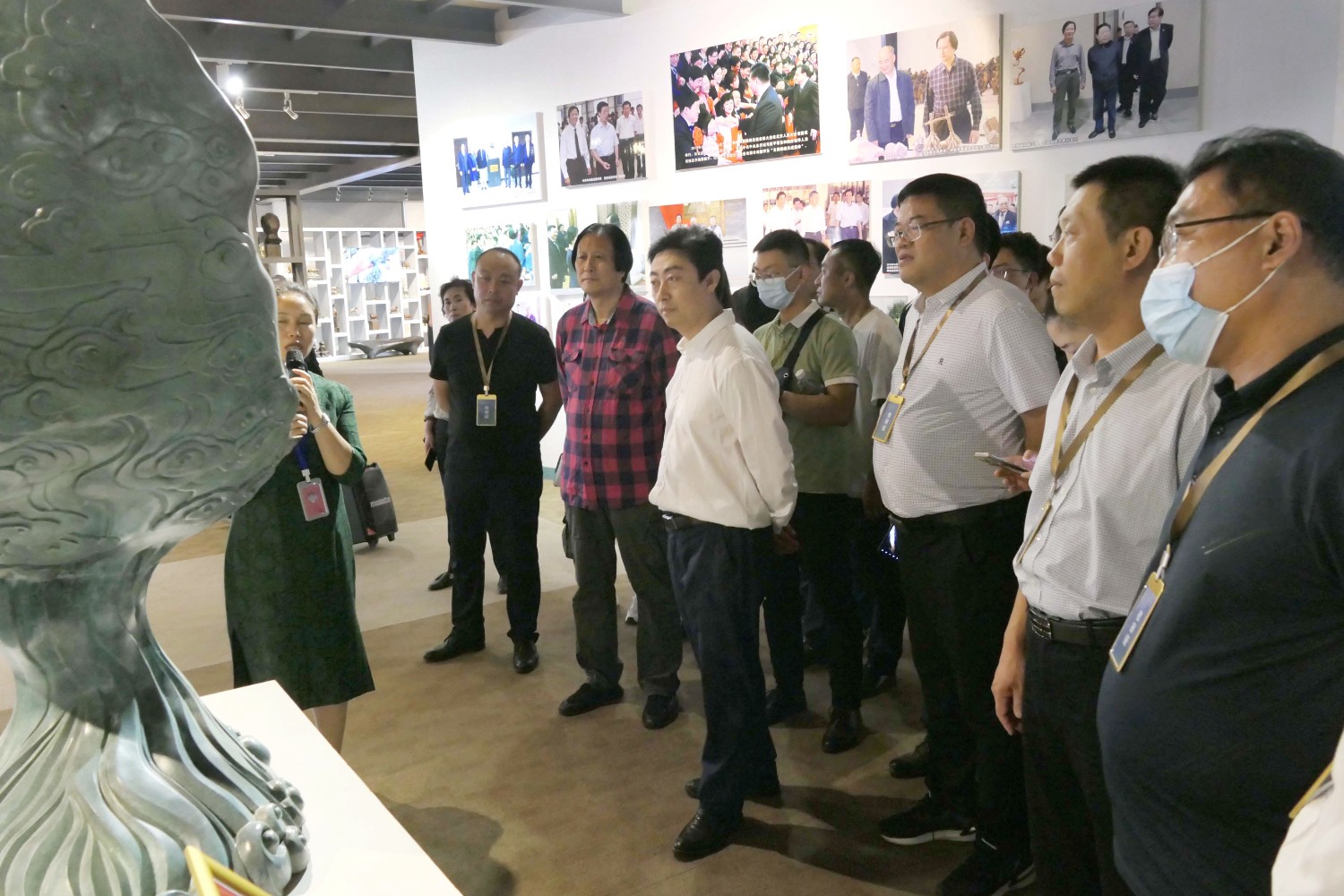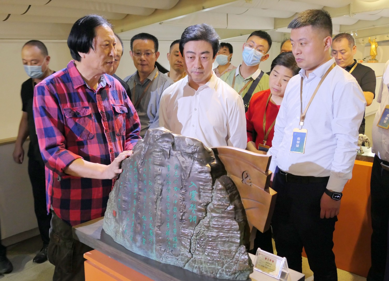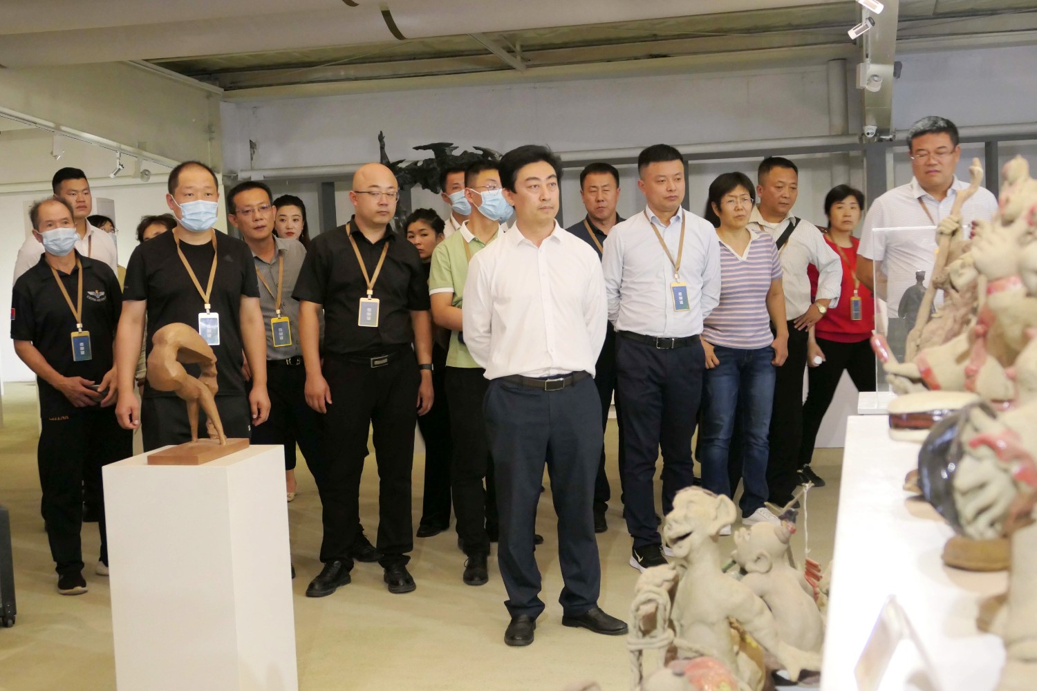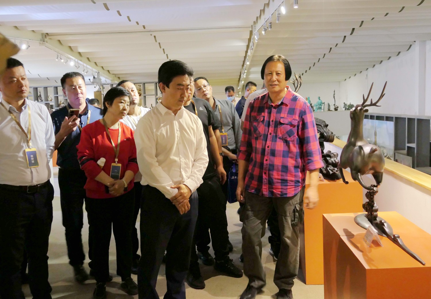 2022年9月28,濰坊市創(chuàng)大創(chuàng)業(yè)服務(wù)中心主任代衛(wèi)平及濰坊市部分企業(yè)家代表60余人,蒞臨華藝雕塑考察企業(yè)文化、經(jīng)營管理、市場營銷等方面交流活動。傅紹相董事長向客人介紹華藝雕塑文化產(chǎn)業(yè)及文創(chuàng)作品。
