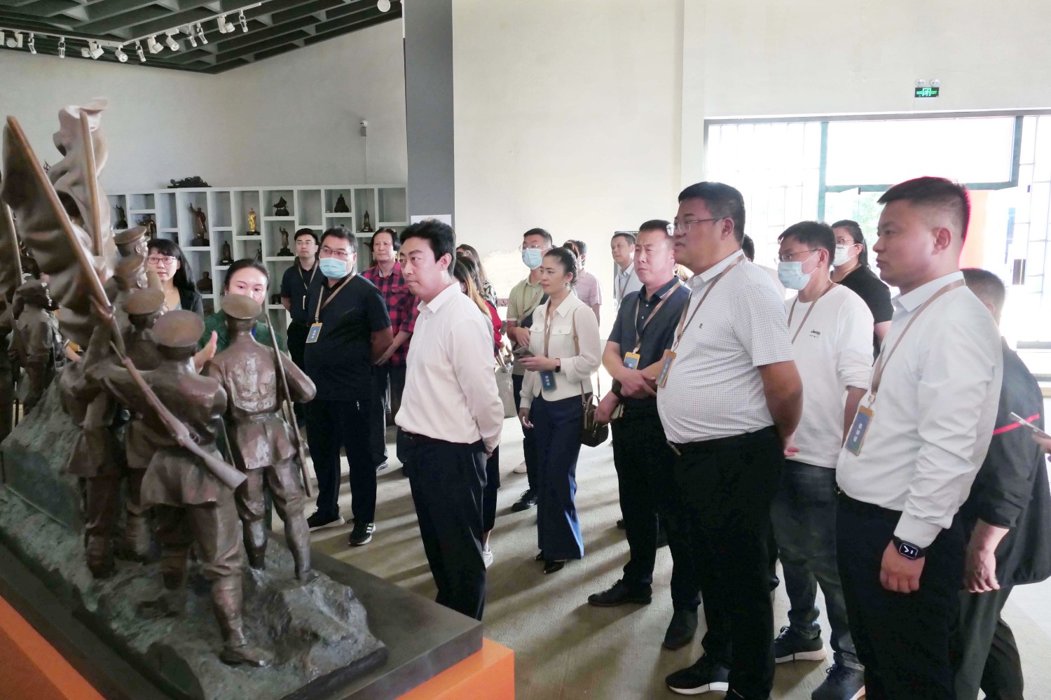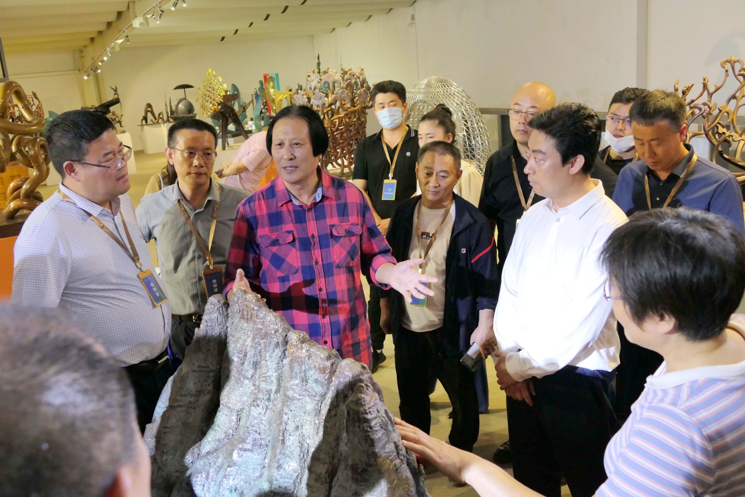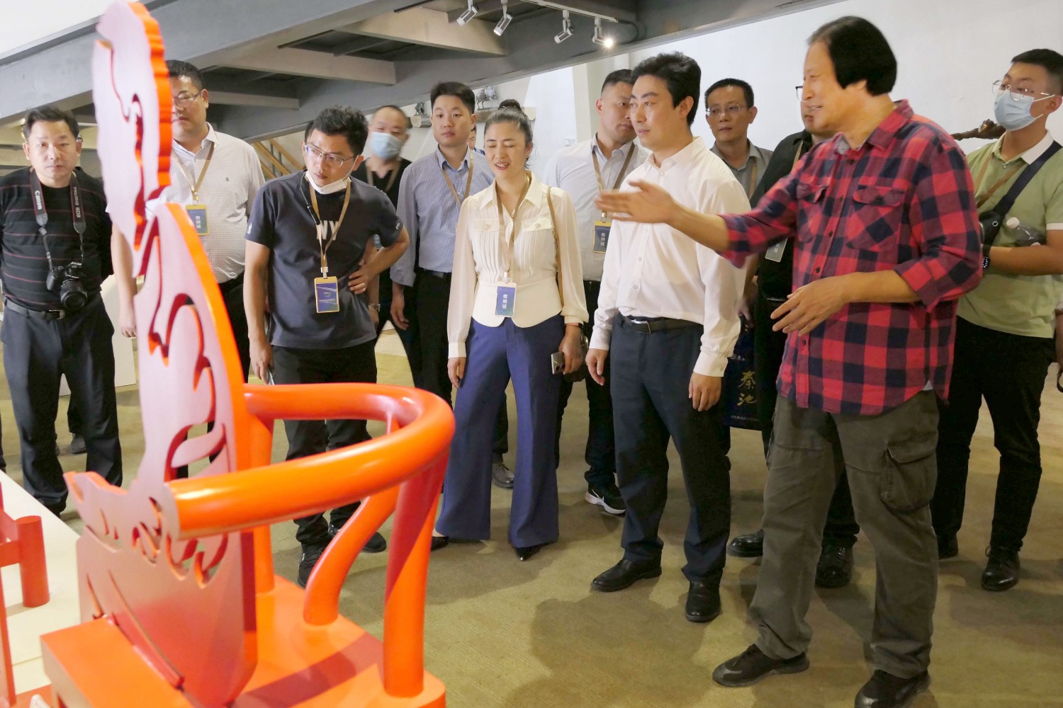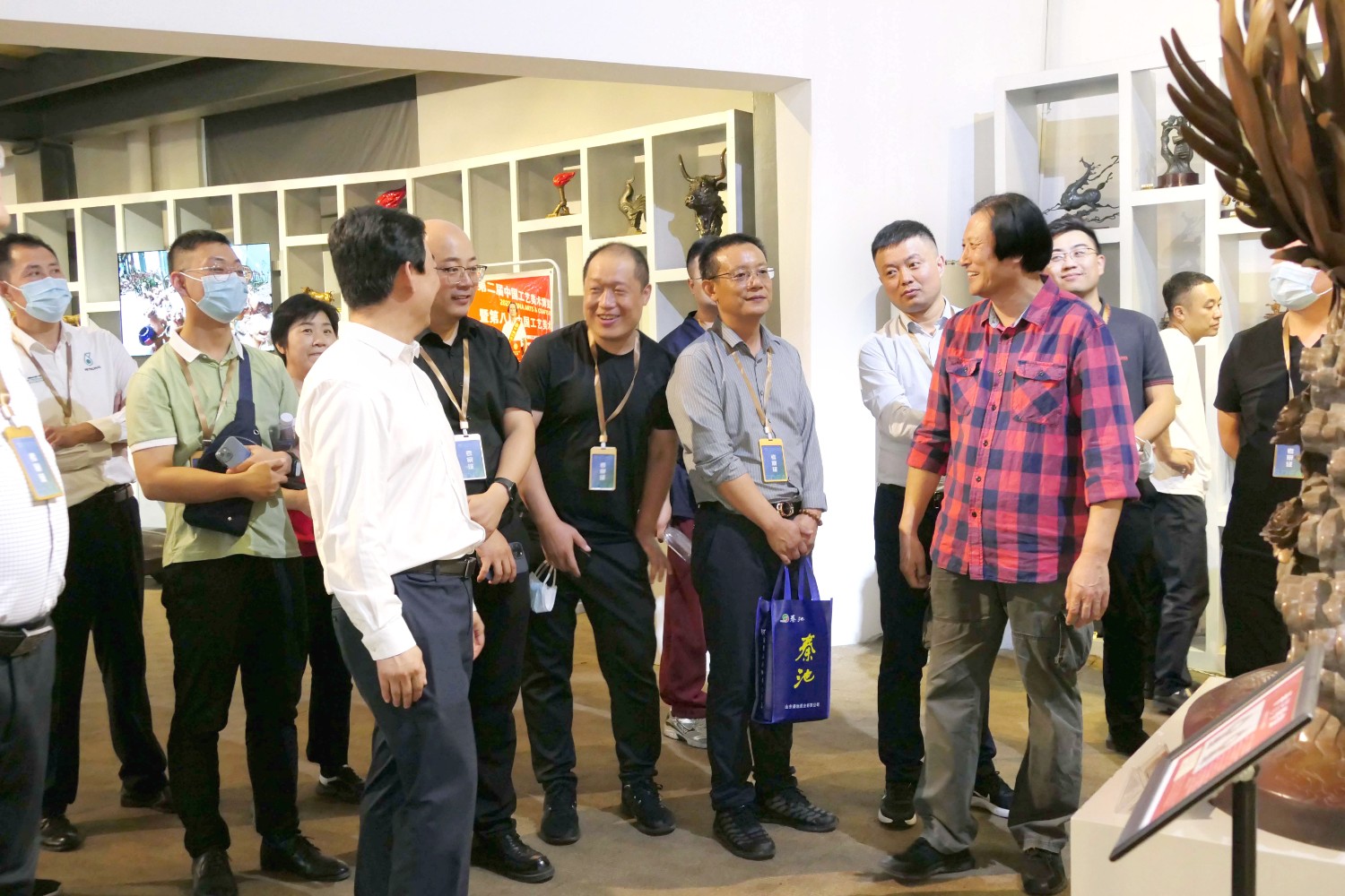 2022年9月28,濰坊市創(chuàng)大創(chuàng)業(yè)服務(wù)中心主任代衛(wèi)平及濰坊市部分企業(yè)家代表60余人,蒞臨華藝雕塑考察企業(yè)文化、經(jīng)營管理、市場營銷等方面交流活動。傅紹相董事長向客人介紹華藝雕塑文化產(chǎn)業(yè)及文創(chuàng)作品。