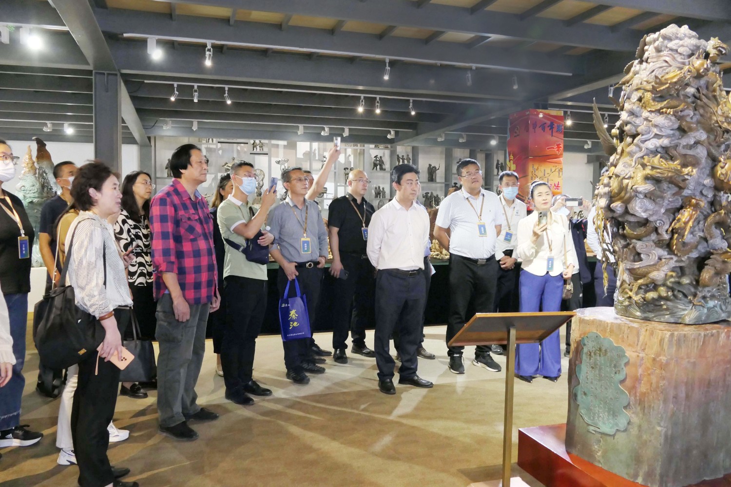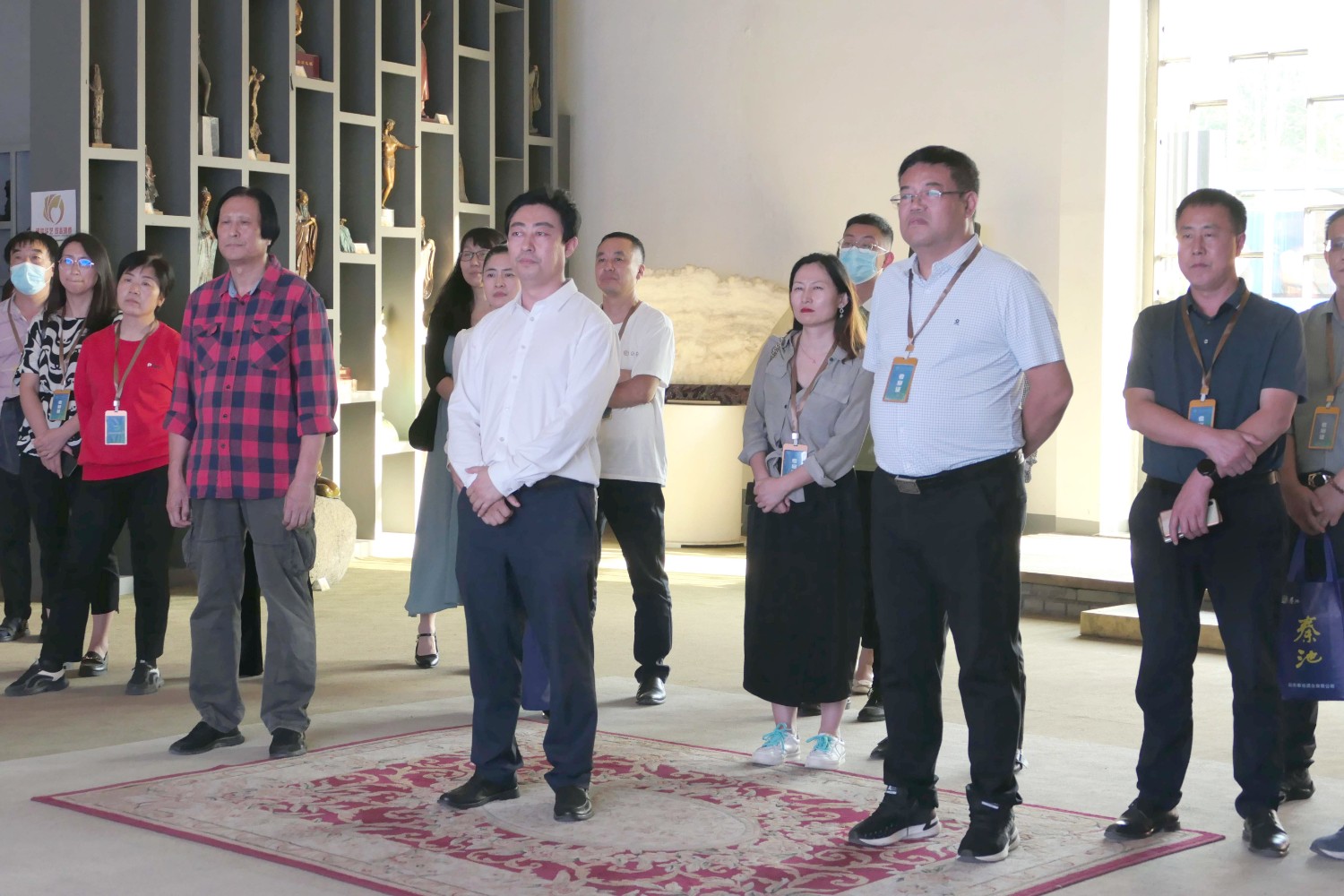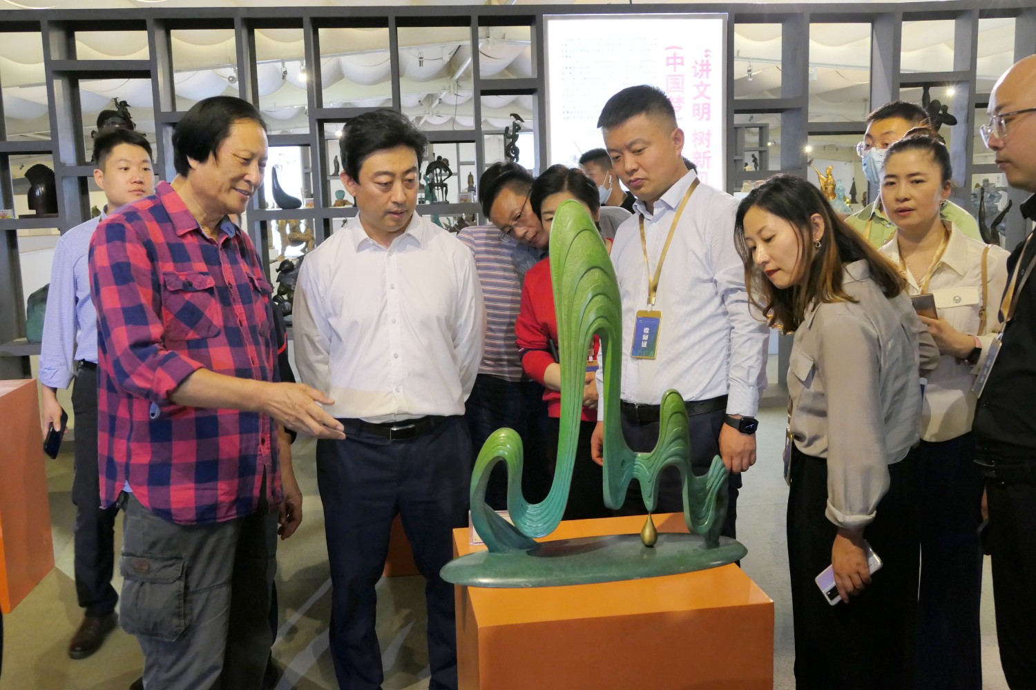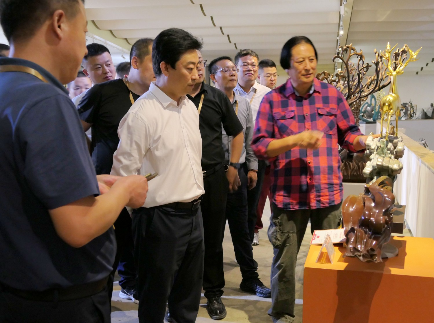 2022年9月28,濰坊市創(chuàng)大創(chuàng)業(yè)服務(wù)中心主任代衛(wèi)平及濰坊市部分企業(yè)家代表60余人,蒞臨華藝雕塑考察企業(yè)文化、經(jīng)營管理、市場營銷等方面交流活動。傅紹相董事長向客人介紹華藝雕塑文化產(chǎn)業(yè)及文創(chuàng)作品。