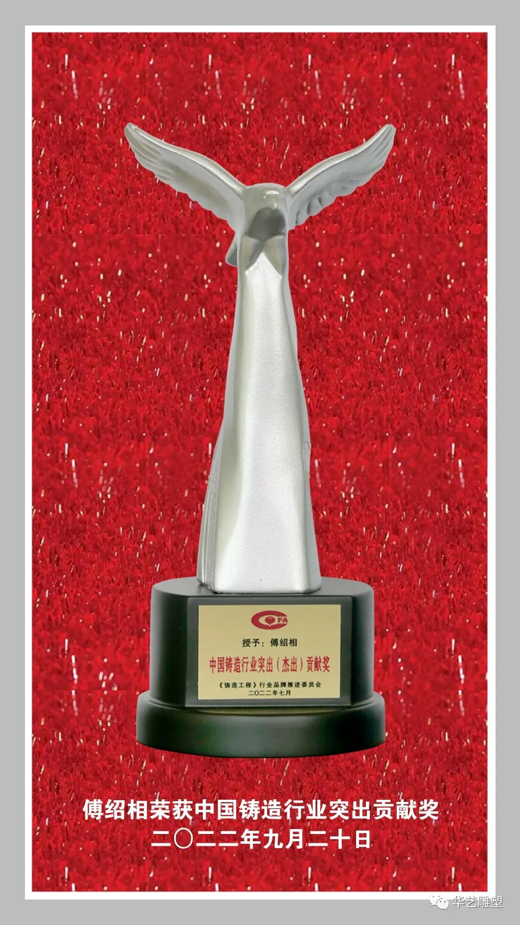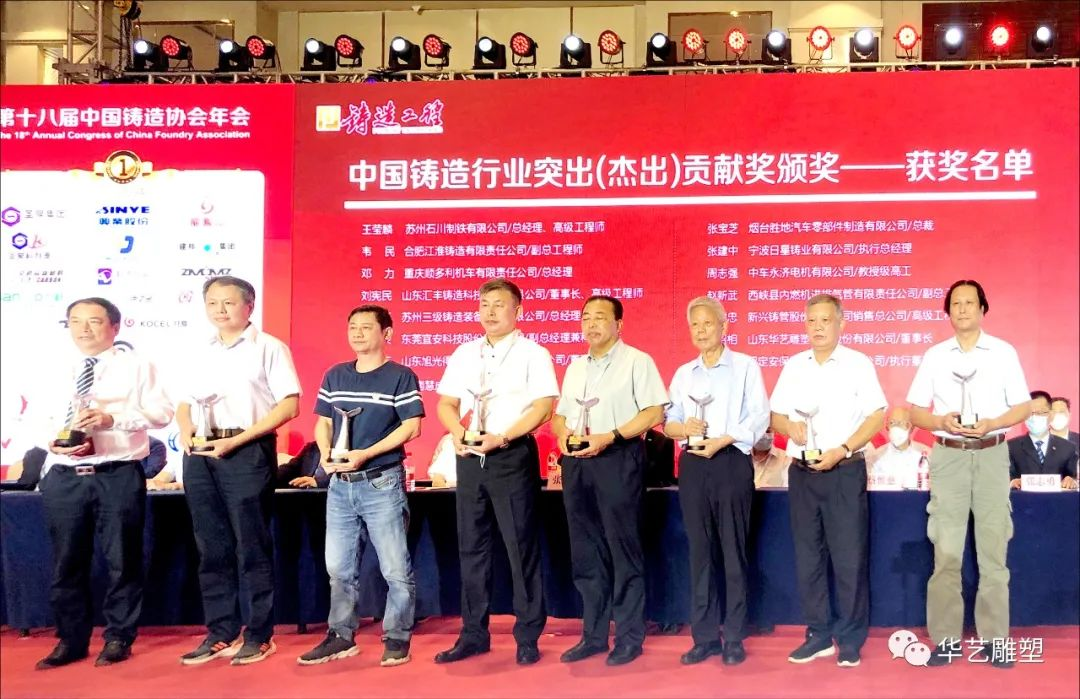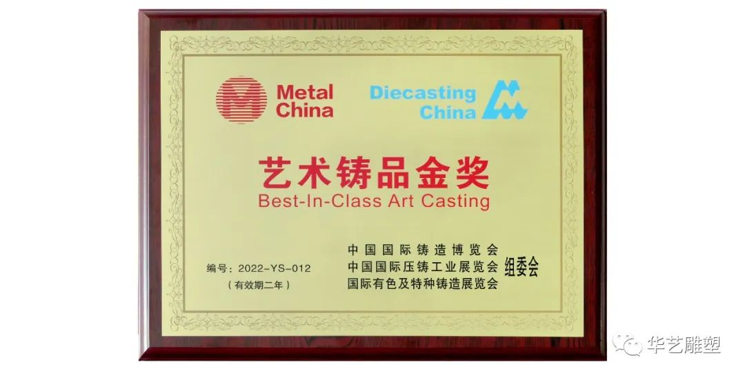 華藝雕塑遴選新的文創(chuàng)精品力作20余件青銅藝術(shù)品參加鑄造文化展區(qū),傅紹相董事長應(yīng)邀出席開幕式及參加第十八屆中國鑄造年會(并在主席臺就座)。中國工藝美術(shù)大師傅紹相榮獲《鑄造工程》行業(yè)品牌推進(jìn)委員會“中國鑄造行業(yè)突出(杰出)貢獻(xiàn)獎”,華藝參展作品《八岐雄風(fēng)》榮獲第二十屆中國國際鑄造博覽會藝術(shù)鑄品金獎。