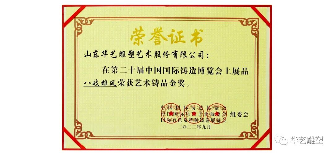 華藝雕塑作品《八岐雄風(fēng)》榮獲第二十屆中國國際鑄造博覽會藝術(shù)鑄品金獎