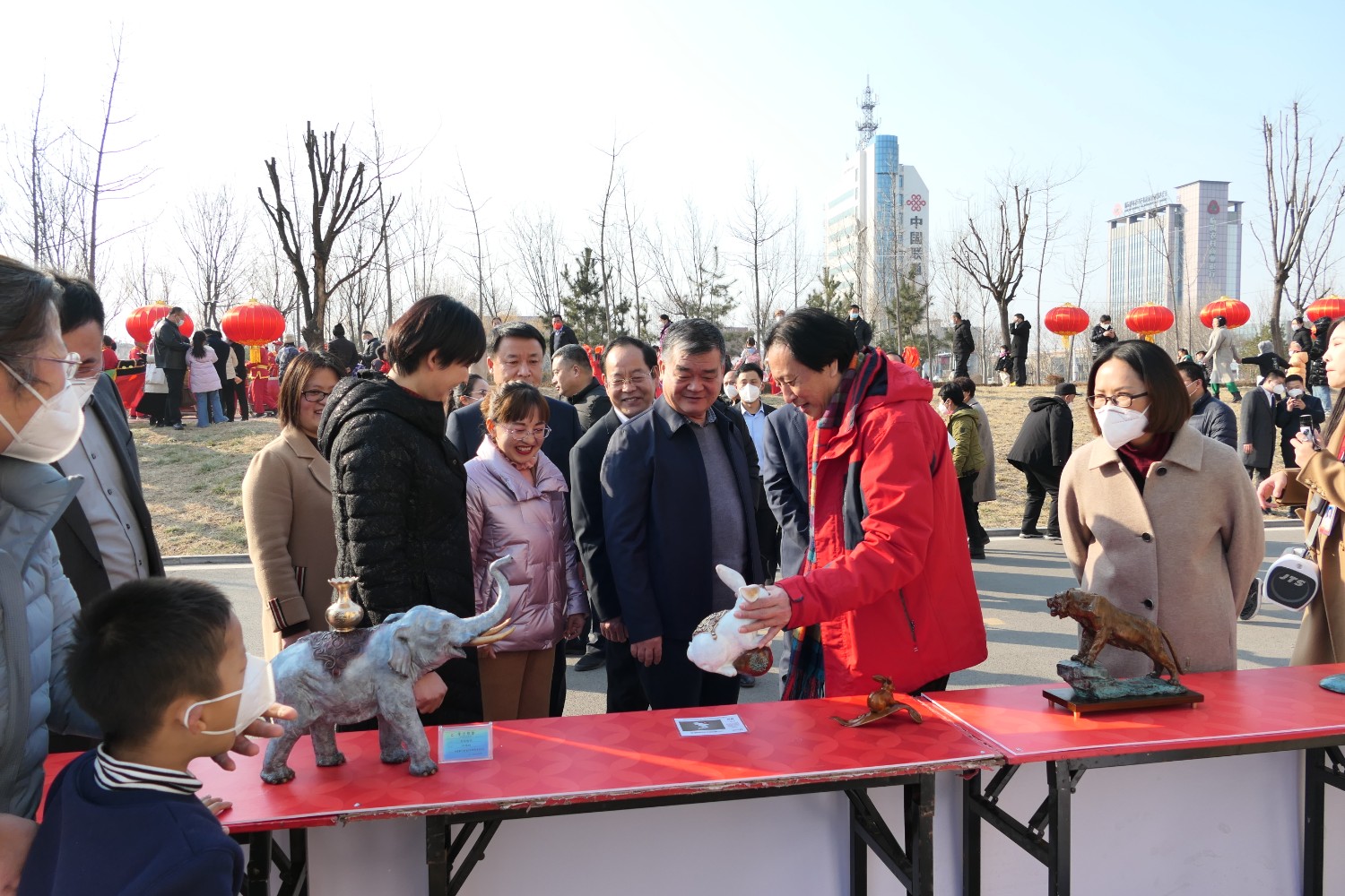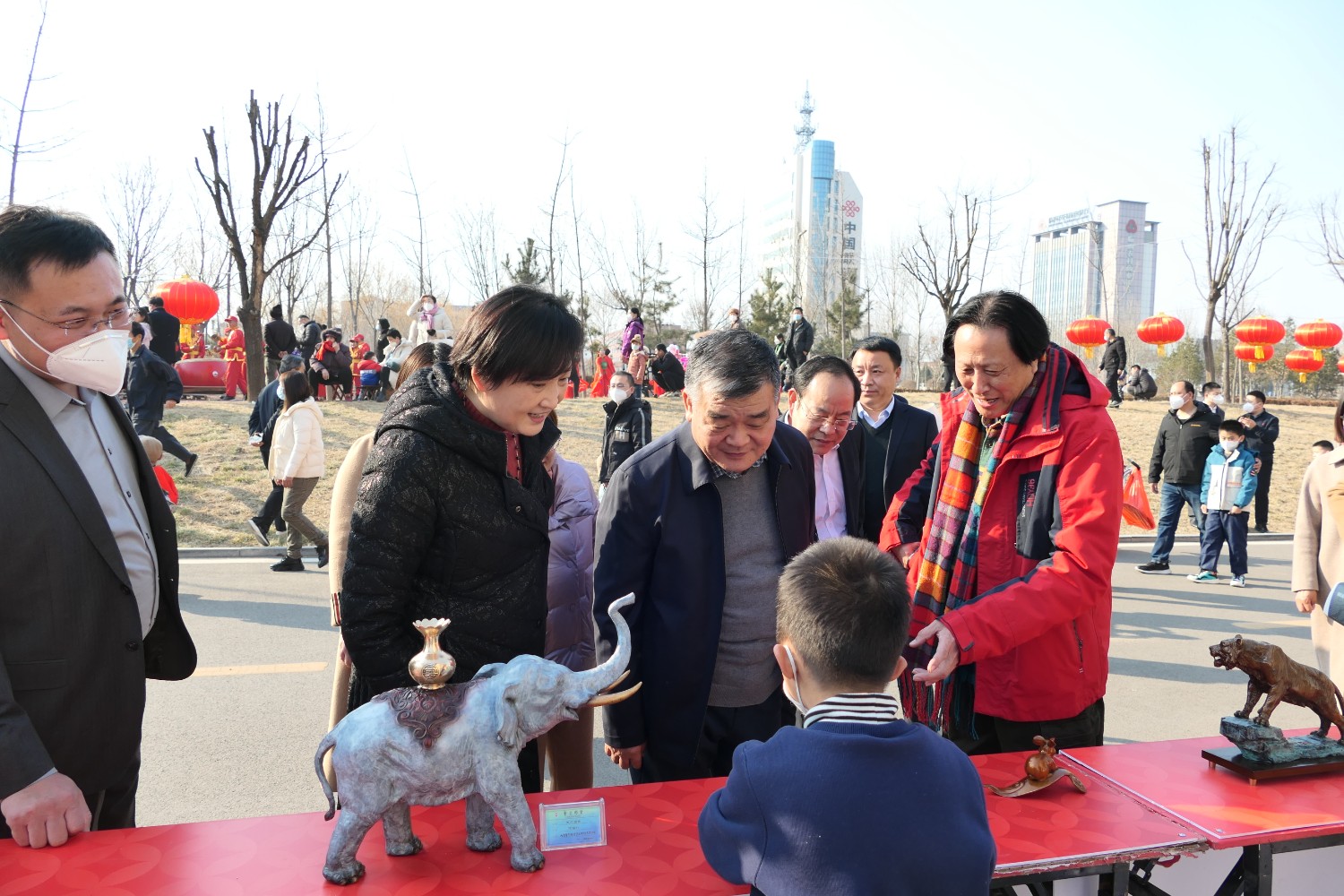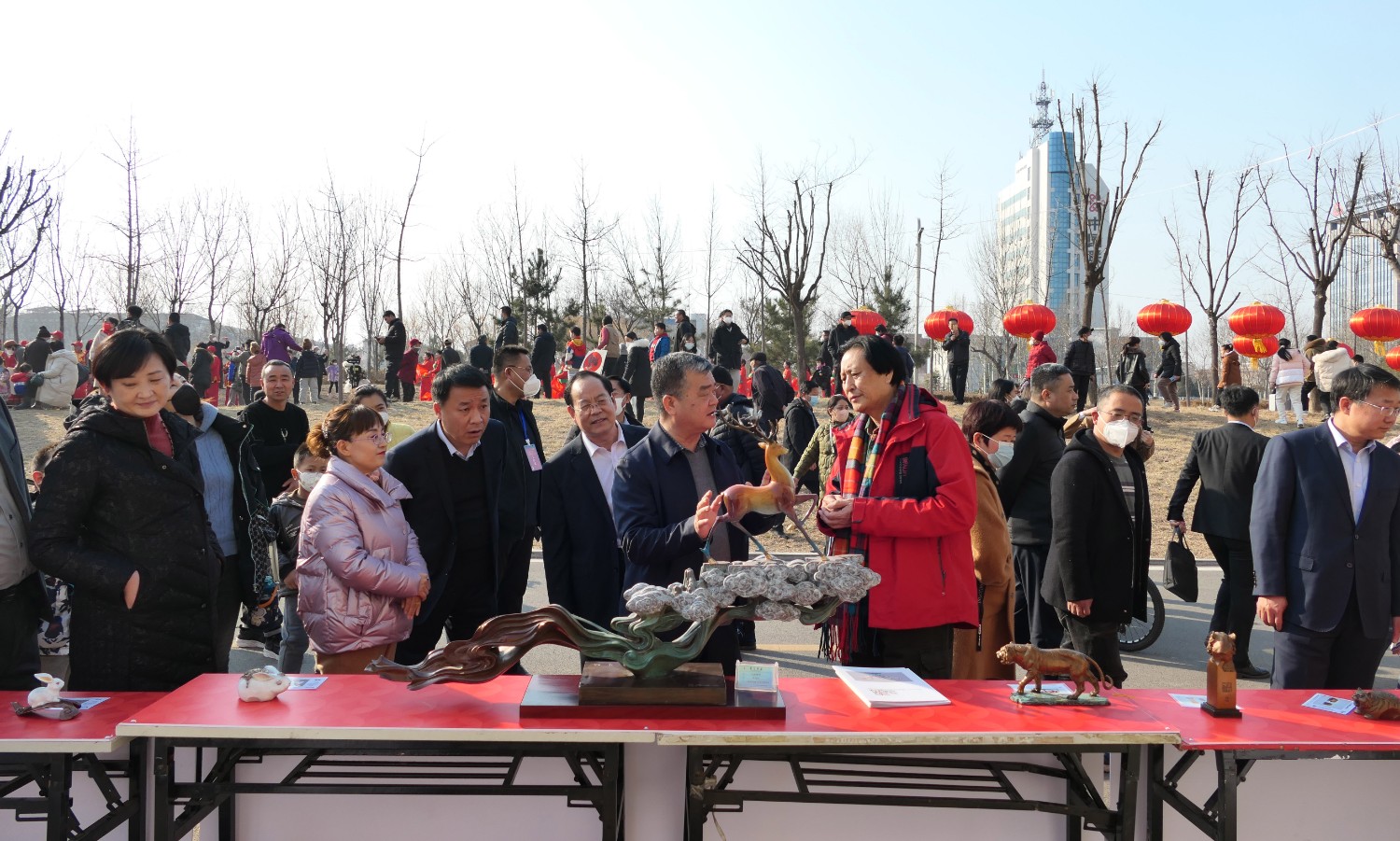 2023年2月4日,國(guó)潮嘉年華臨朐縣民俗節(jié)日節(jié)慶活動(dòng)啟動(dòng)儀式在縣文化中心隆重舉行。濰坊市文旅局苗慶安副局長(zhǎng),濰坊市非遺保護(hù)中心主任范新建,臨朐縣人大副主任倪若強(qiáng)等領(lǐng)導(dǎo)在副縣長(zhǎng)張惠玉的陪同下參觀華藝展區(qū),中國(guó)工美藝術(shù)大師傅紹相向領(lǐng)導(dǎo)嘉賓介紹文創(chuàng)作品。