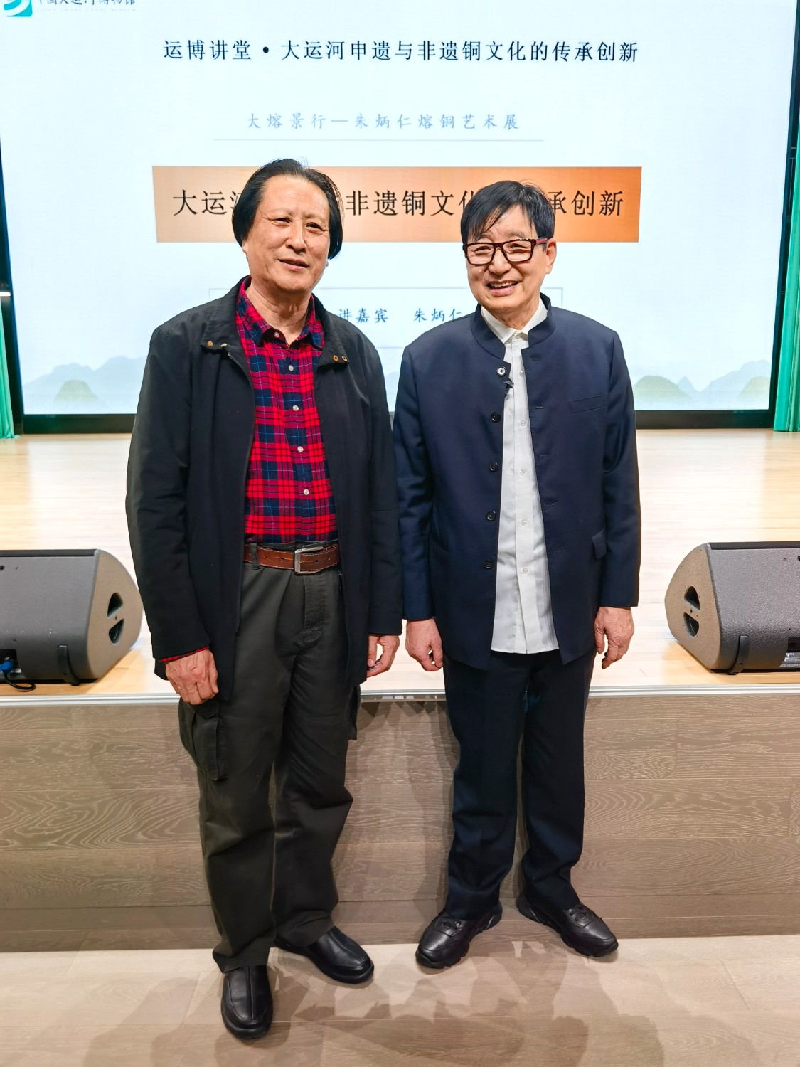 2023-7-42023年3月12日,應(yīng)中國工藝美術(shù)大師朱炳仁先生邀請,中國機(jī)械工業(yè)聯(lián)合會副會長、中國鑄造協(xié)會會長張立波,中國鑄協(xié)協(xié)會藝鑄分會秘書長袁亞娟總工,中國工藝美術(shù)大師、山東華藝雕塑藝術(shù)股份有限公司董事長傅紹相,在江蘇揚(yáng)州中國運(yùn)河博物館參觀“大熔景行——朱炳仁銅藝術(shù)展”,并聆聽了朱炳仁先生的“大運(yùn)河申遺與非遺銅文化的傳承創(chuàng)新”的講座,期間與朱炳仁先生進(jìn)行了藝術(shù)交流并合影留念。
