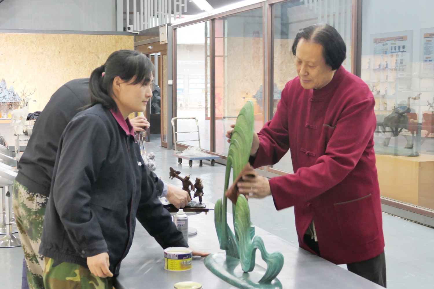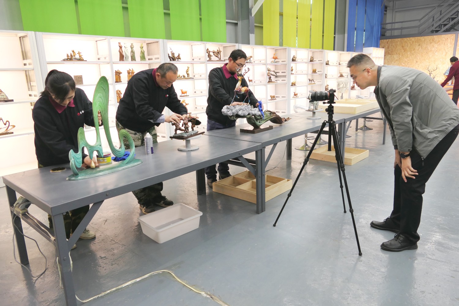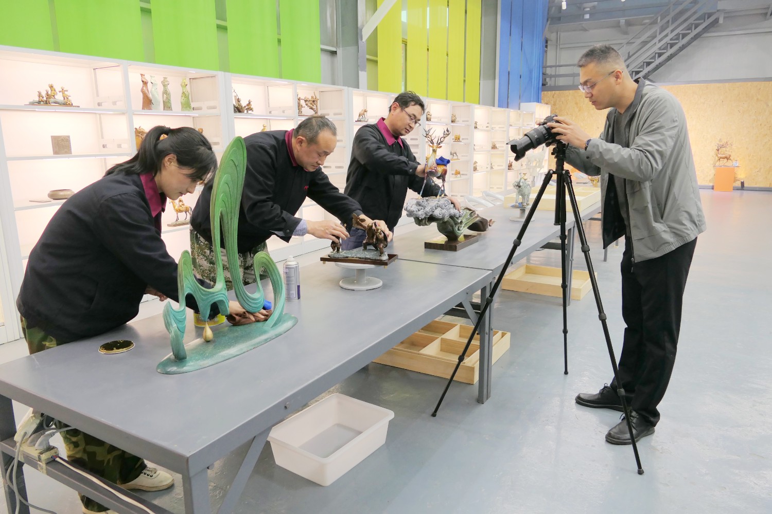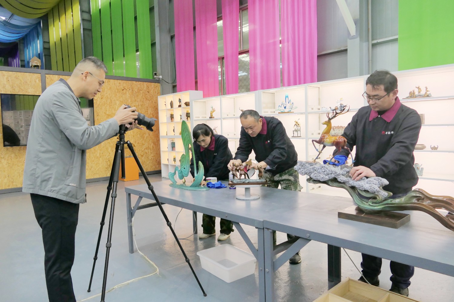 2023年4月4日,臨朐縣電視臺(tái)記者蘇凱來(lái)華藝拍攝選送“第40屆濰坊國(guó)際風(fēng)箏會(huì)”展出的四件青銅作品《一路祥瑞》《放飛》《山青水韻》《太平吉象》,傅紹相參加采訪視頻。