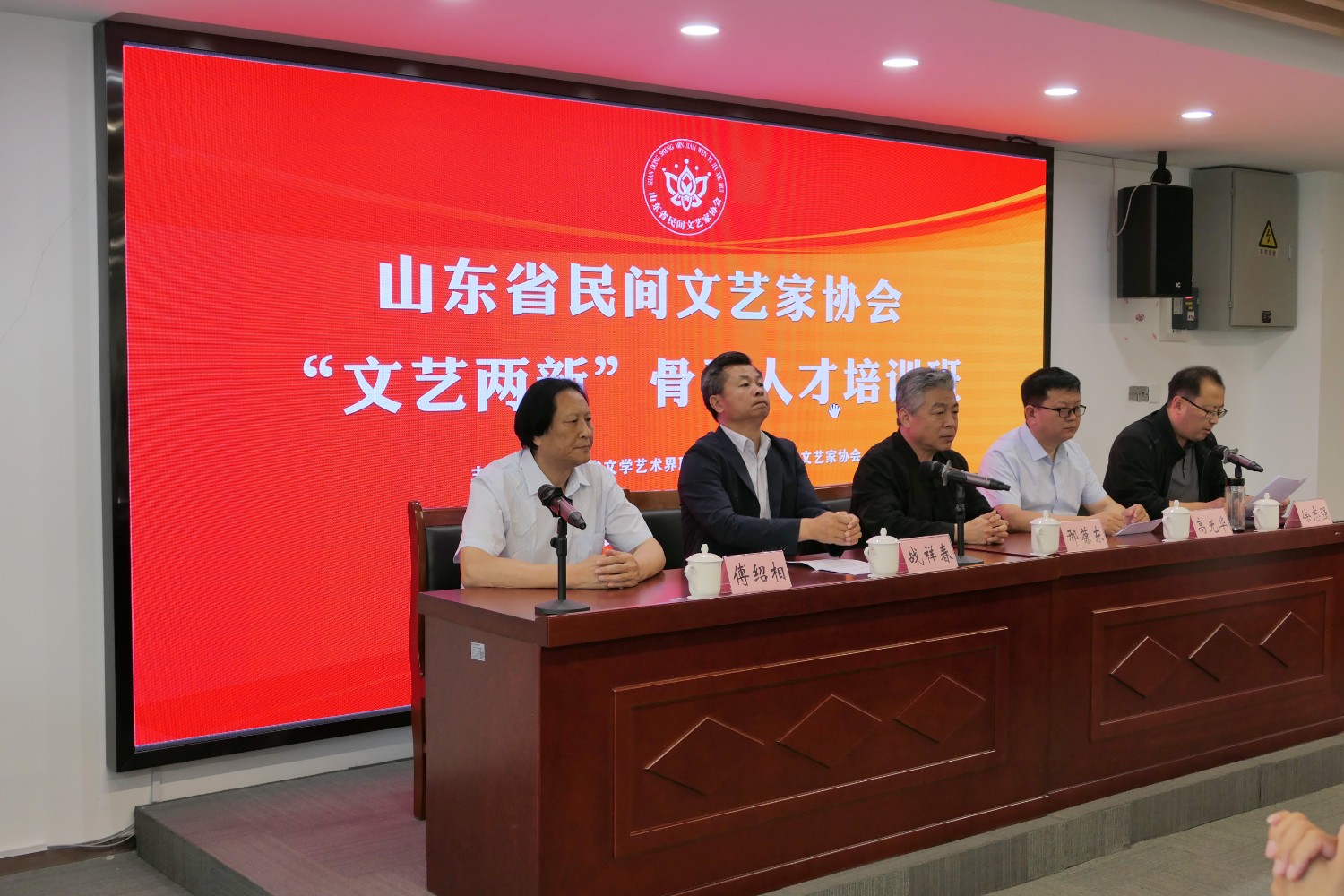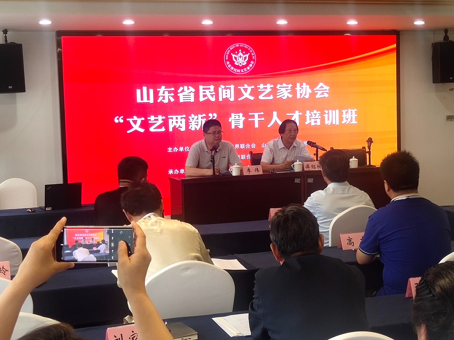 5月23日至26日,山東省民間文藝家協(xié)會(huì)“文藝兩新”骨干人才培訓(xùn)班在臨沂市順利舉辦。山東省民協(xié)副主席、日照市民協(xié)主席邢葆東,山東省民協(xié)副秘書長、三級(jí)調(diào)研員高光華,山東省民協(xié)文藝兩新工作委員會(huì)主任傅紹相,臨沂市文聯(lián)黨組書記、主席戰(zhàn)祥春,臨沂市文聯(lián)辦公室主任、臨沂市民協(xié)主席徐志強(qiáng)出席開班式。來自全省各市民協(xié)推薦的“文藝兩新”骨干代表、省民協(xié)“文藝兩新”工作委員會(huì)成員及當(dāng)?shù)亍拔乃噧尚隆眲?chuàng)作骨干代表等50余人參加培訓(xùn)。培訓(xùn)班邀請到臨沂市委黨校副校長楊建中教授,臨沂市委黨校文史教研部副主任劉柯薇副教授,省民協(xié)副主席、青島科技大學(xué)朱紀(jì)副教授,省民協(xié)主席團(tuán)委員、山東工藝美術(shù)學(xué)院人文藝術(shù)學(xué)院榮新副教授等四位教員,重點(diǎn)圍繞“黨的二十大精神學(xué)習(xí)”和“提升文藝精品創(chuàng)作”等主題,精選《黨的二十大精神專題》《沂蒙精神專題》《非遺保護(hù)與文創(chuàng)設(shè)計(jì)》《民間文藝主題創(chuàng)作創(chuàng)新發(fā)展的思考》等課程為學(xué)員進(jìn)行現(xiàn)場專題授課,各領(lǐng)域、各地區(qū)“文藝兩新”人才齊聚一堂,互動(dòng)交流。