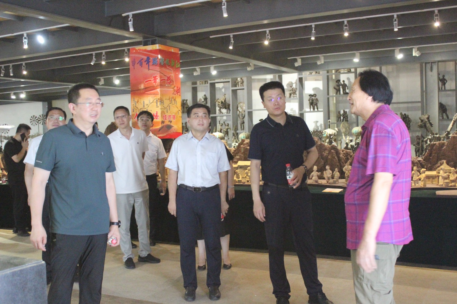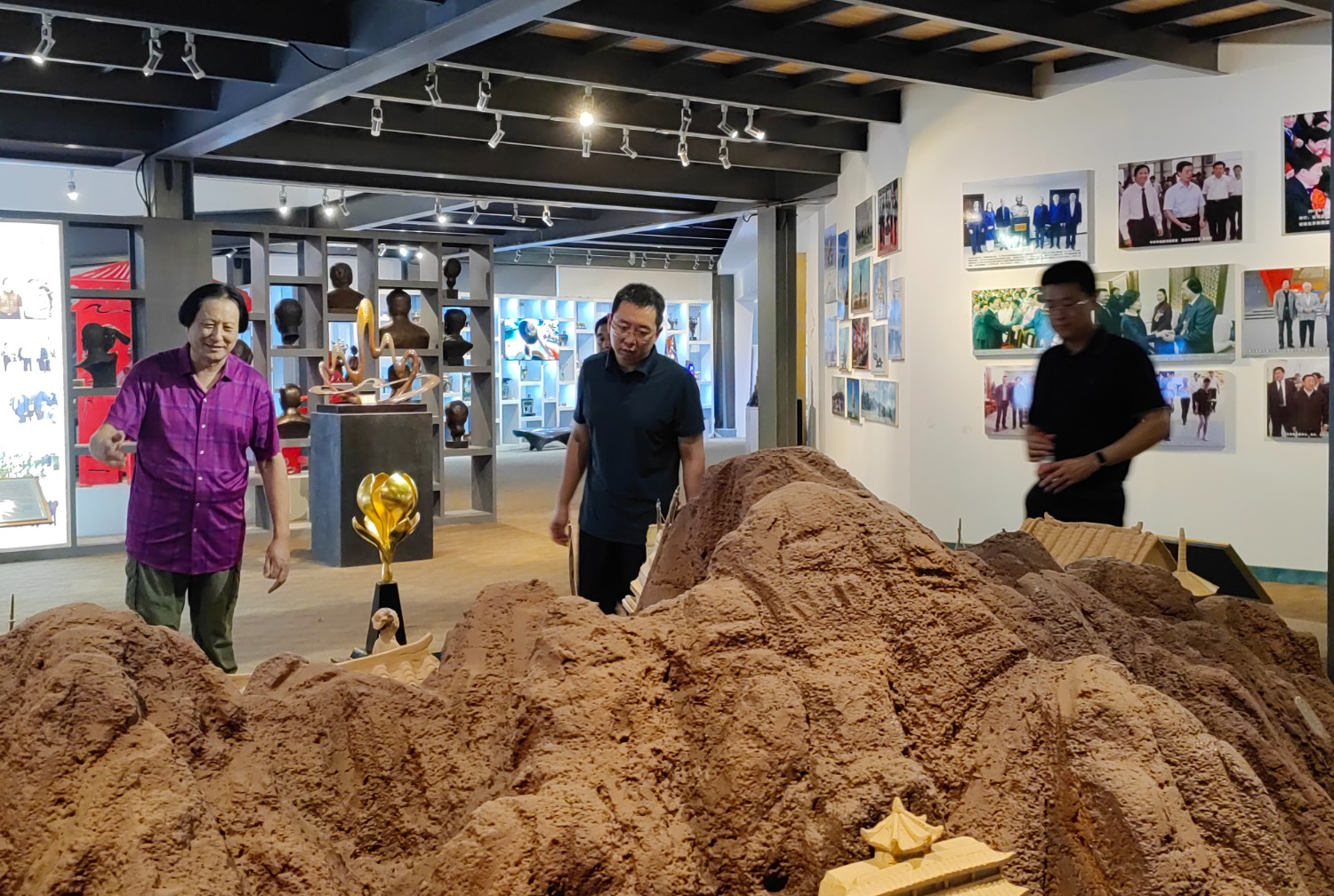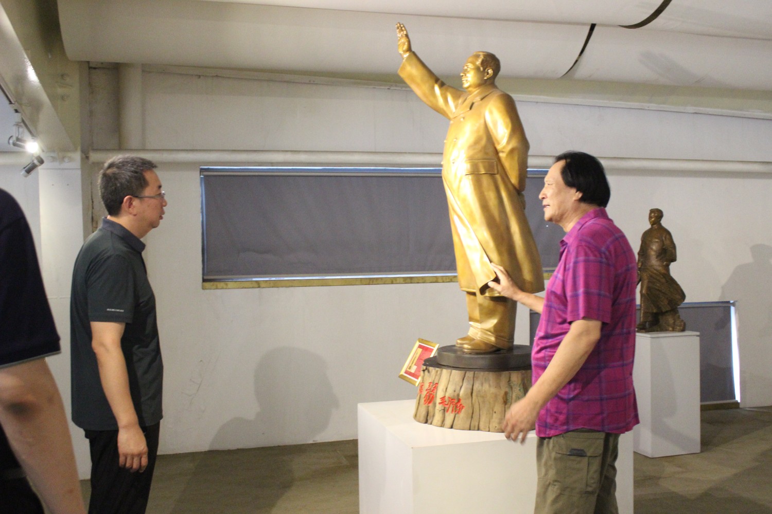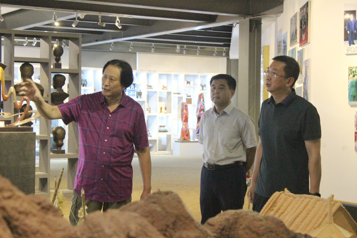 2023年7月19日,山東省財政廳政府債務(wù)管理處副處長李金法,省交通廳交通運輸事務(wù)服務(wù)發(fā)展研究處副處長李國東等領(lǐng)導(dǎo),在臨朐縣委副書記、縣長陳誠陪同下蒞臨華藝雕塑參觀指導(dǎo)。中國工藝美術(shù)大師傅紹相介紹雕塑藝術(shù)。