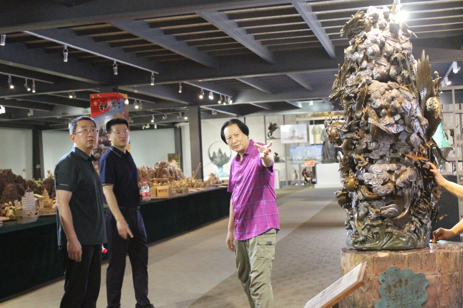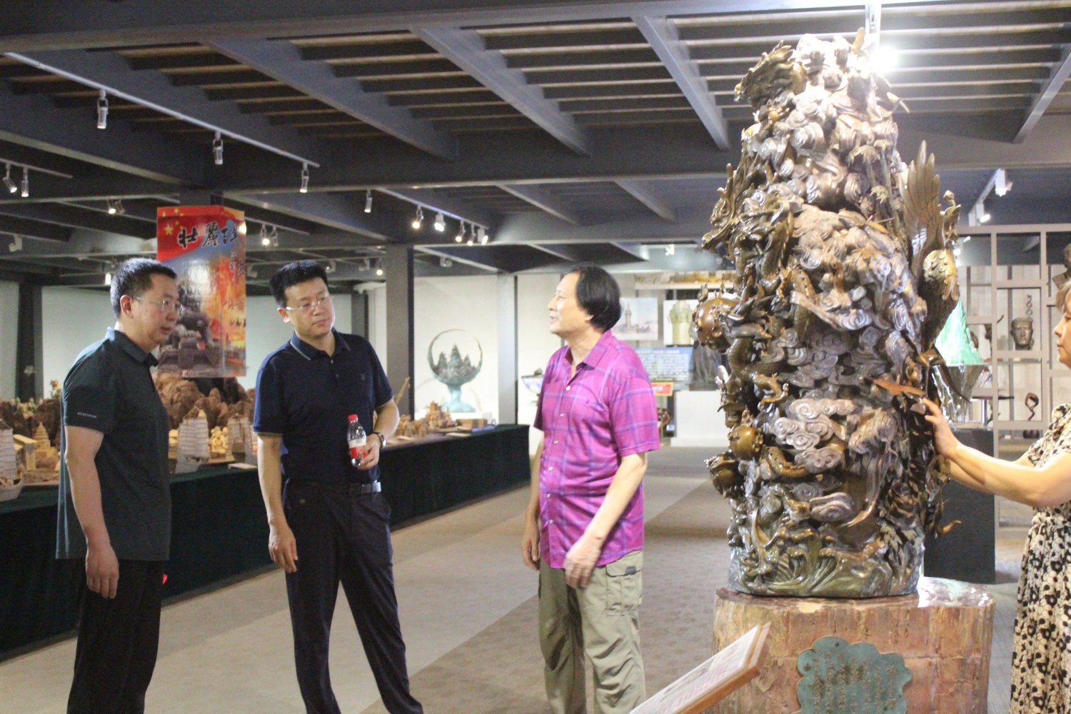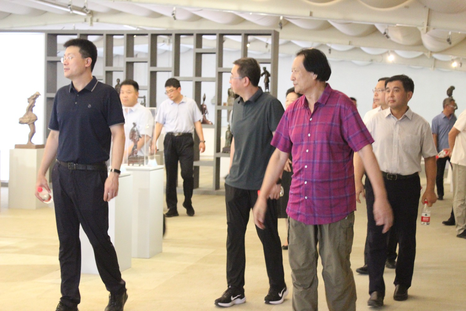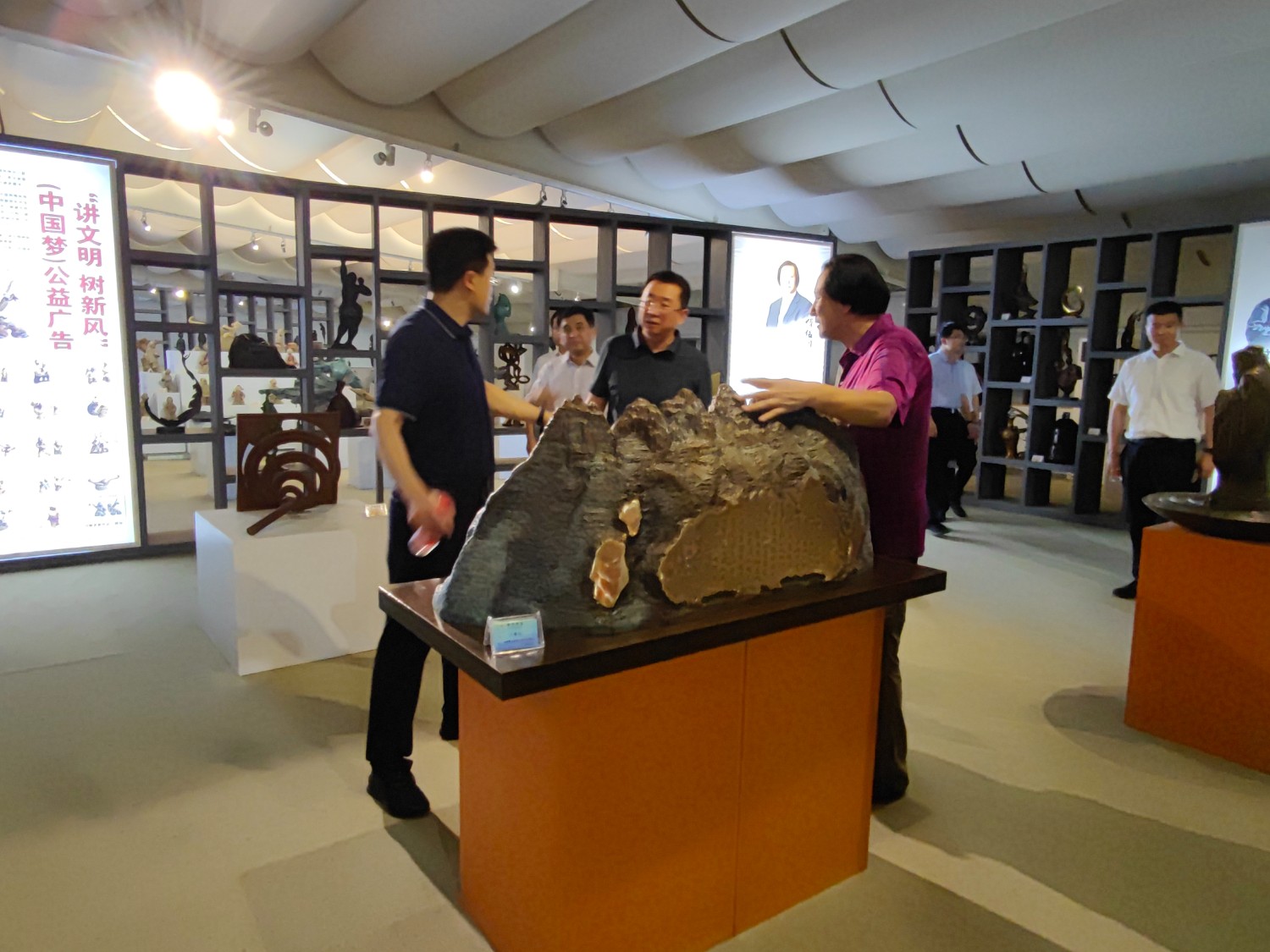 2023年7月19日,山東省財政廳政府債務(wù)管理處副處長李金法,省交通廳交通運輸事務(wù)服務(wù)發(fā)展研究處副處長李國東等領(lǐng)導(dǎo),在臨朐縣委副書記、縣長陳誠陪同下蒞臨華藝雕塑參觀指導(dǎo)。中國工藝美術(shù)大師傅紹相介紹雕塑藝術(shù)。