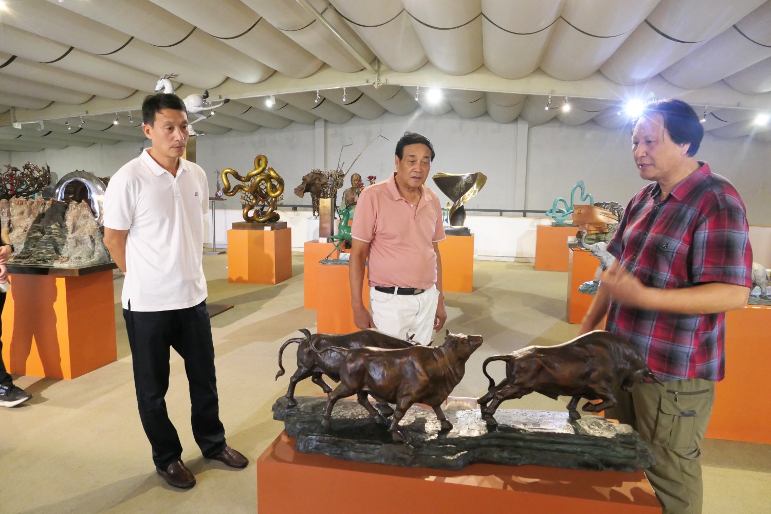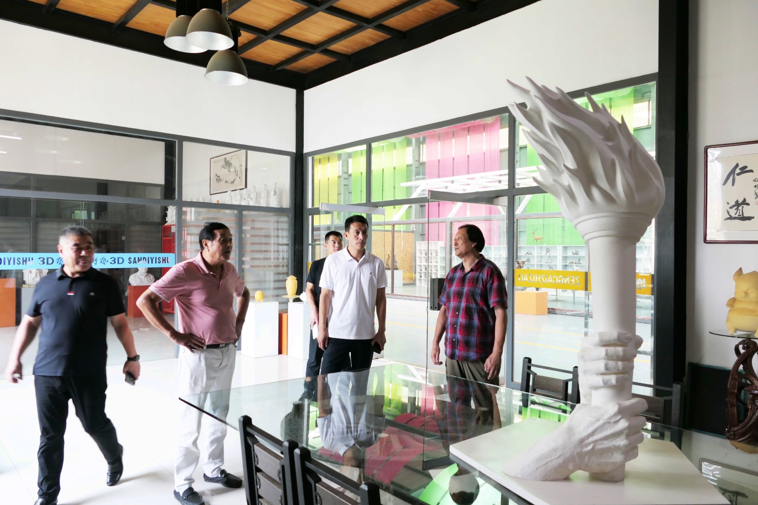 2023年8月18日,山東華苑企業(yè)集團有限公司黨委書記、董事長周寶柱一行,蒞臨華藝雕塑參觀考察并洽談合作項目,中國工美藝術(shù)大師、華藝雕塑董事長傅紹相陪同活動。