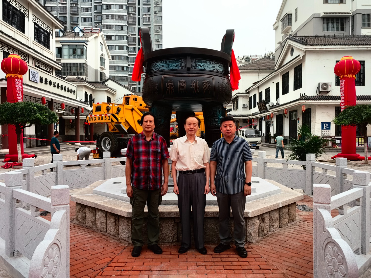 2023年8月26日 ,“龍城寶鼎”安放典禮在諸城市龍都街道岔道口張擇端文化街區(qū)茶道古街中心廣場(chǎng)隆重舉行,出席揭幕慶典儀式的有諸城市老領(lǐng)導(dǎo)、龍都街道辦事處領(lǐng)導(dǎo)、中國辭賦院院長(zhǎng)王金鈴先生,龍都街道岔道口社區(qū)黨委書記、諸城市東升房地產(chǎn)開發(fā)有限責(zé)任公司董事長(zhǎng)姜衛(wèi)剛先生、中國工美藝術(shù)大師、山東華藝雕塑藝術(shù)股份有限公司藝術(shù)總監(jiān)、董事長(zhǎng)傅紹相先生?!褒埑菍毝Α庇筛到B相先生設(shè)計(jì),鼎腹鐫刻王金鈴先生《龍城賦》,寶鼎由華藝雕塑精心鑄制。