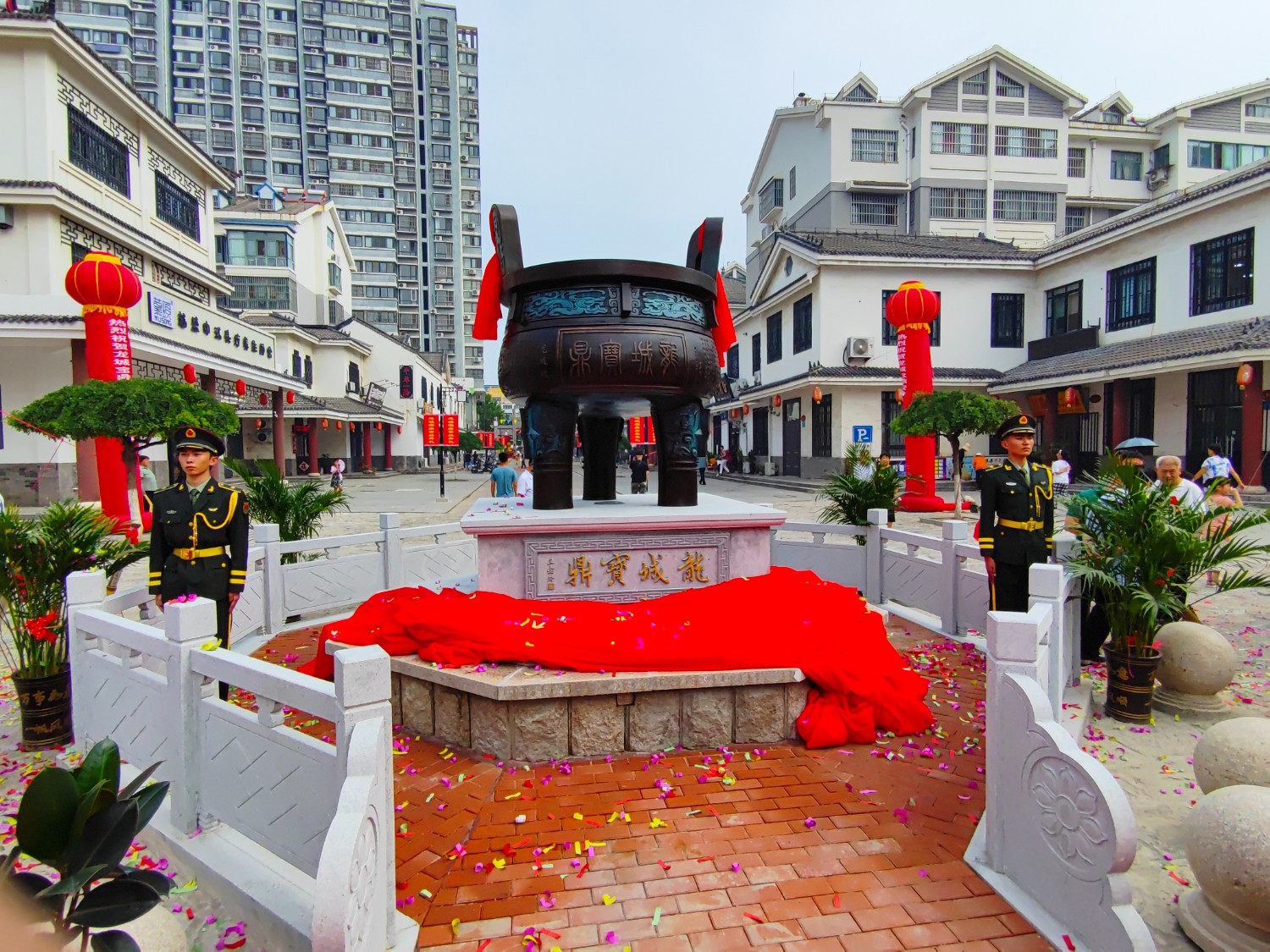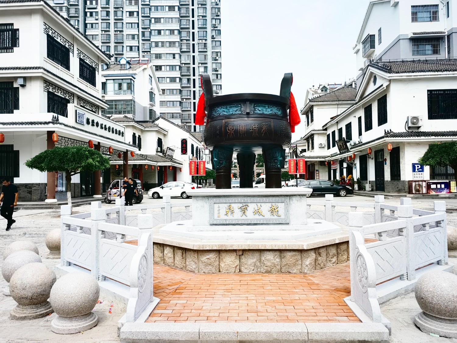 國之重器,以鼎為尊?!褒埑菍毝Α笔且蛔鹑沣~鼎,高2.3米,莊重而典雅,與同街區(qū)的“張擇端故里”、“畫圣坊”、“茶道古街”三大石制碑坊交相輝映,形成了獨(dú)特的文化氛圍,承載了厚重的歷史淵源。