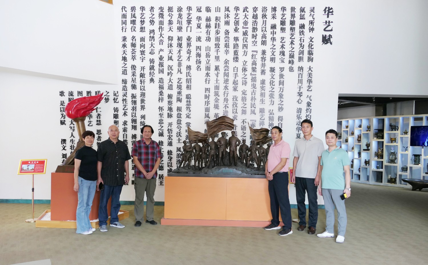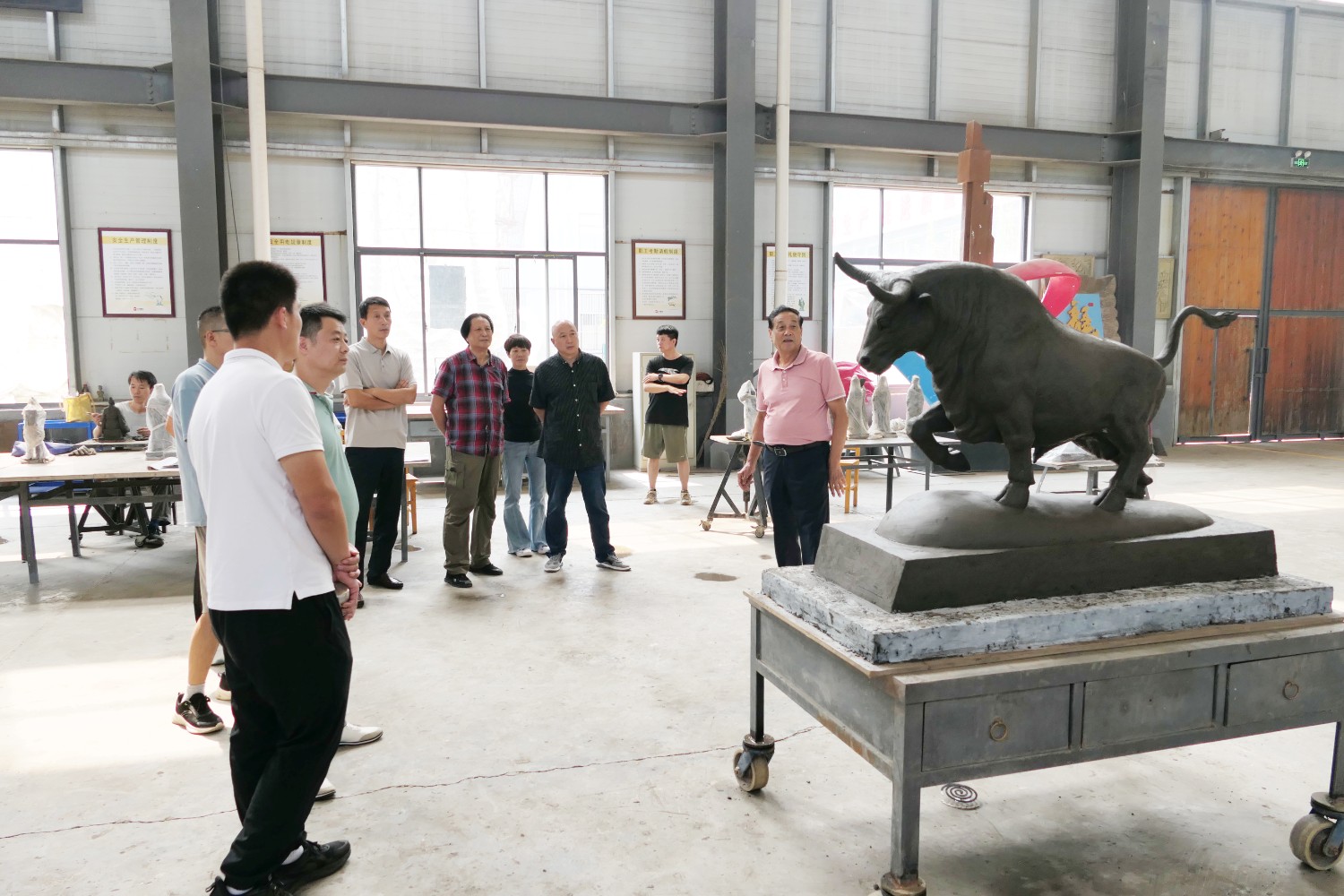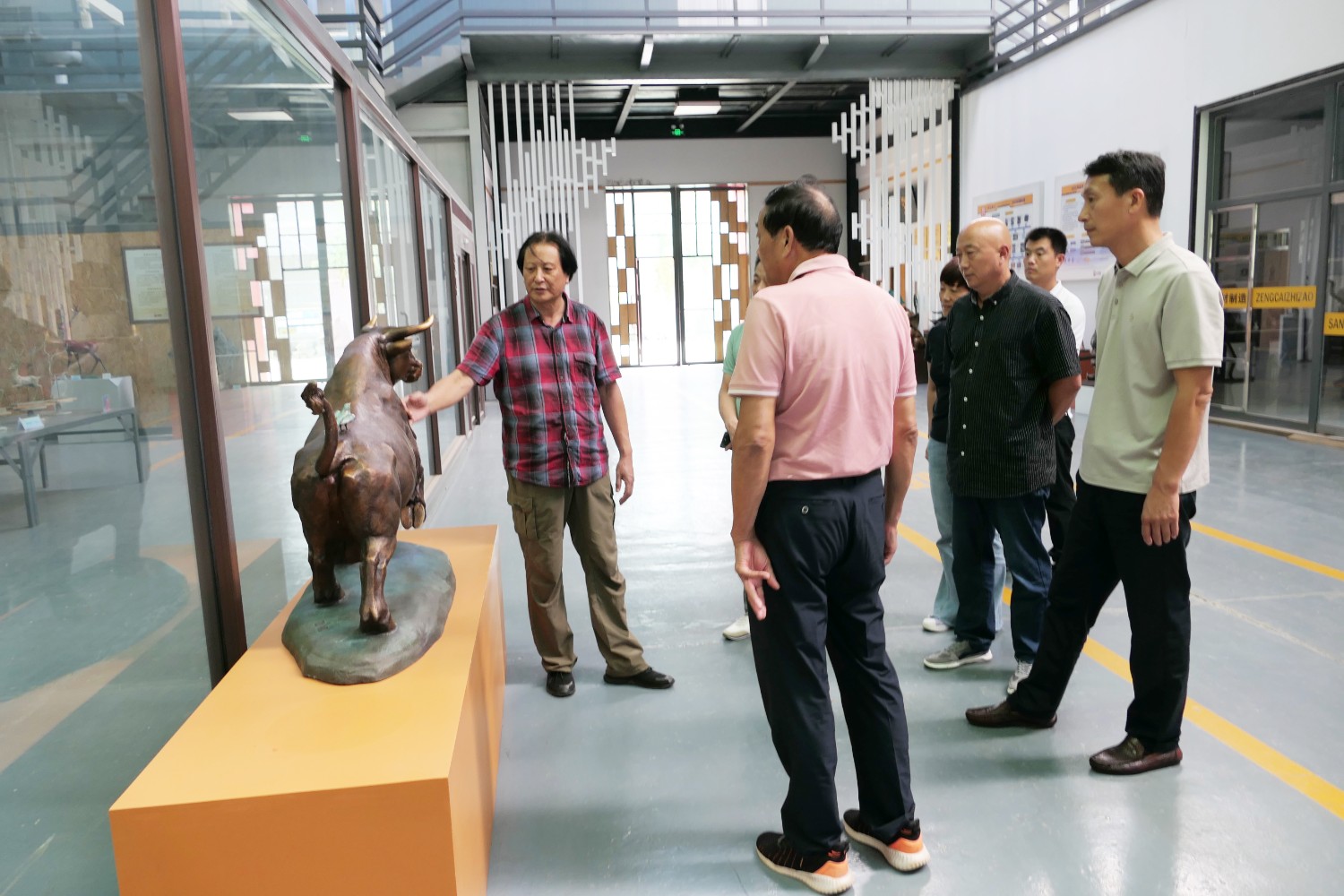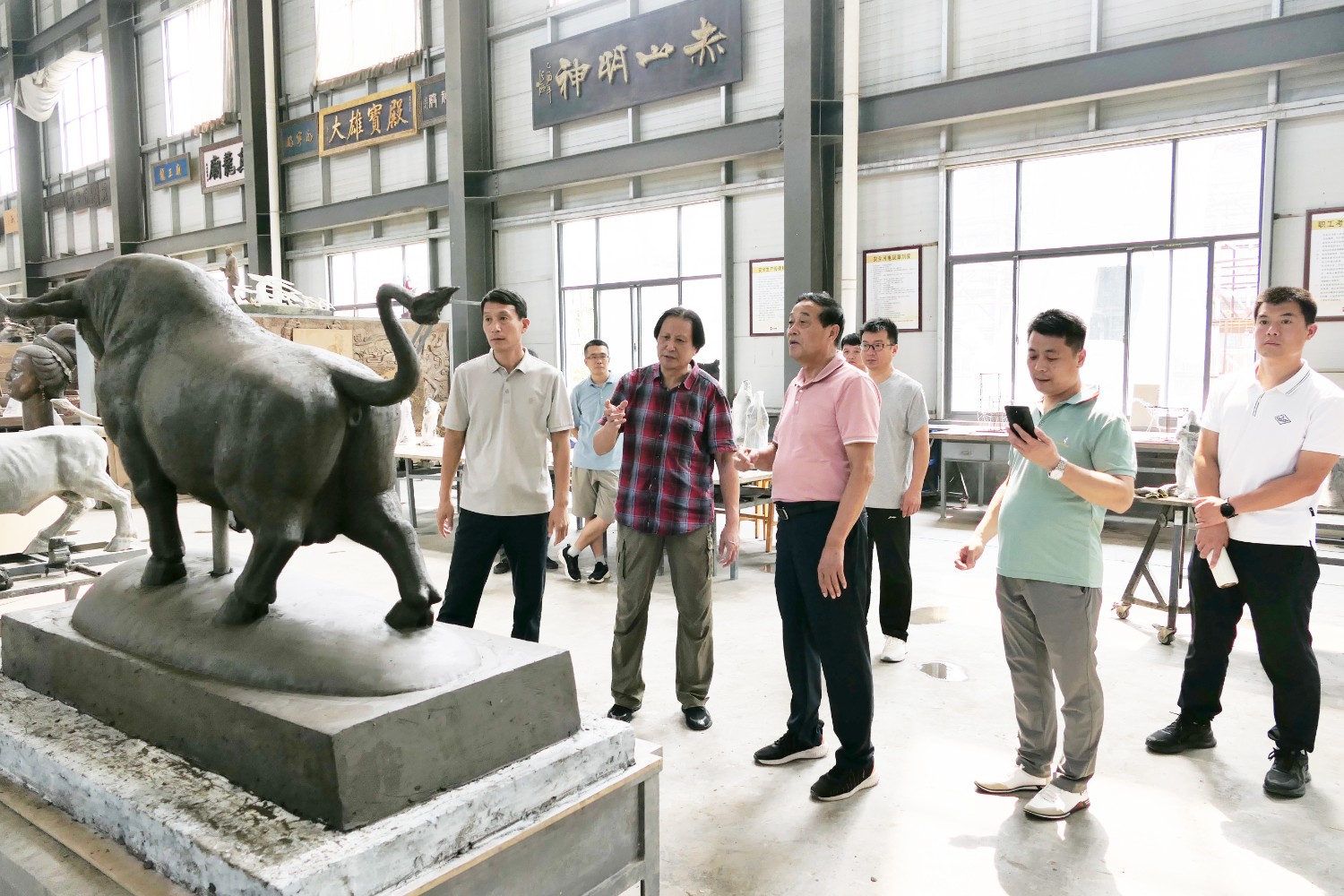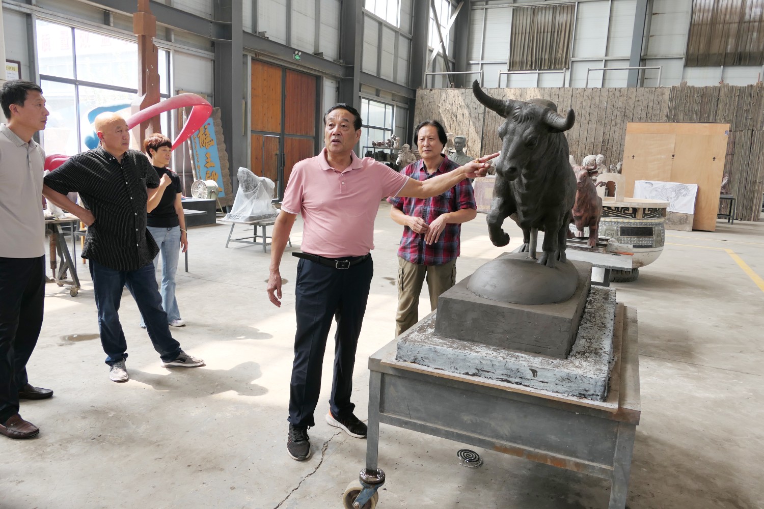 2023年9月5日,山東華苑企業(yè)集團(tuán)有限公司黨委書記、董事長周寶柱一行,蒞臨華藝雕塑審核驗收《旺市金?!返袼茉O(shè)計稿,中國工美藝術(shù)大師、華藝雕塑董事長傅紹相陪同活動。
