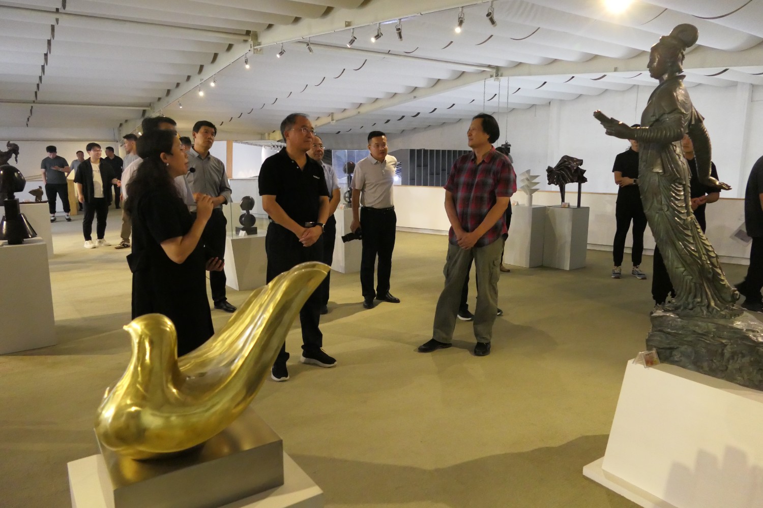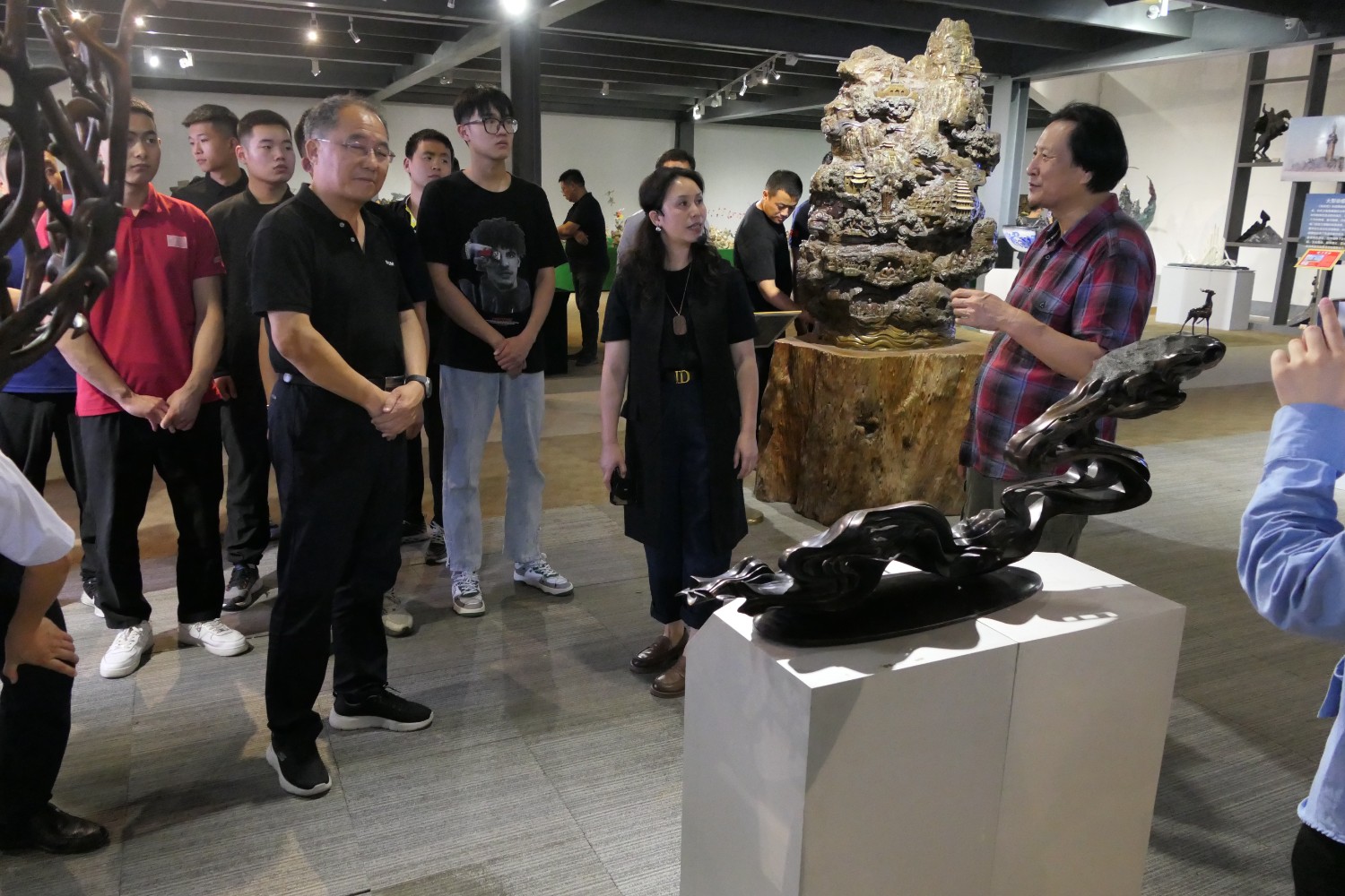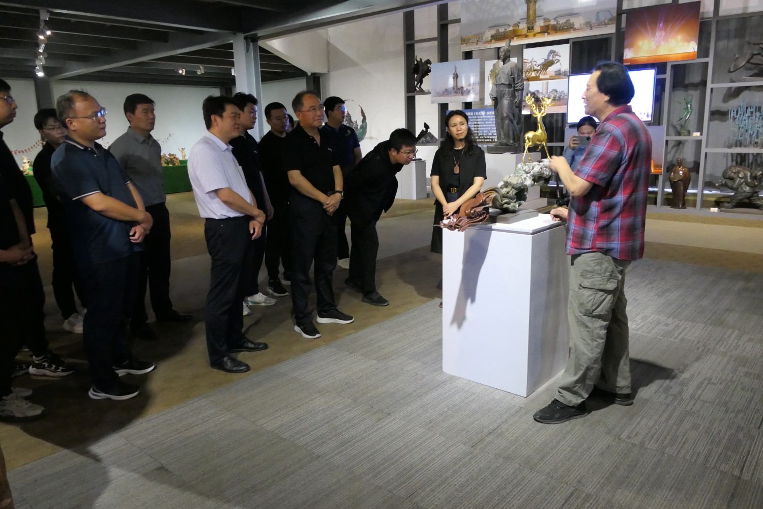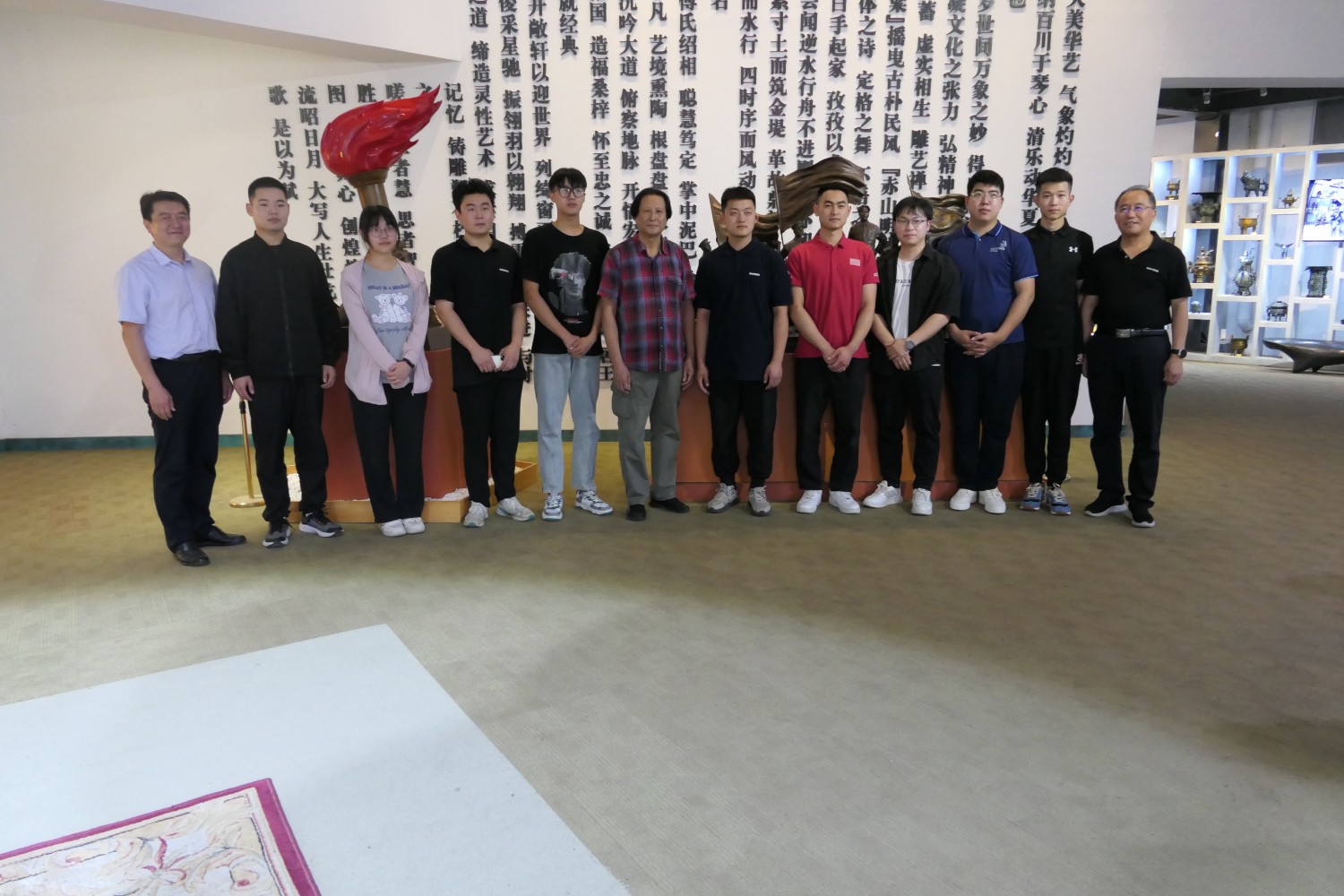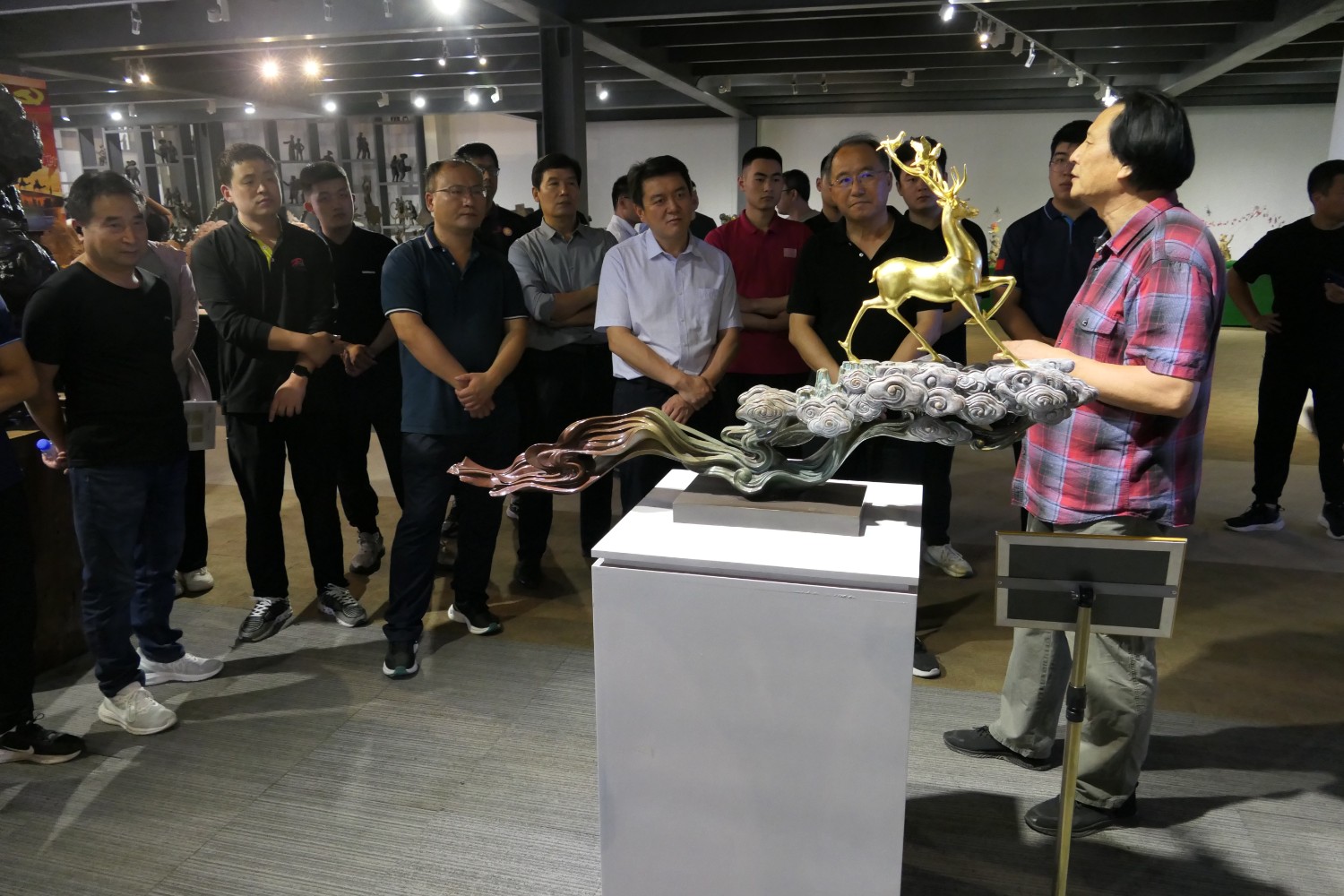 2023年9月26日,山東工業(yè)技師學(xué)院黨委書記孫科順 、 副院長董振濤一行,帶領(lǐng)40余名學(xué)生蒞臨華藝雕塑參觀學(xué)習(xí),中國工美藝術(shù)大師、華藝董事長傅紹相介紹雕塑藝術(shù),并與孫科順書記和技工能手合影留念。
