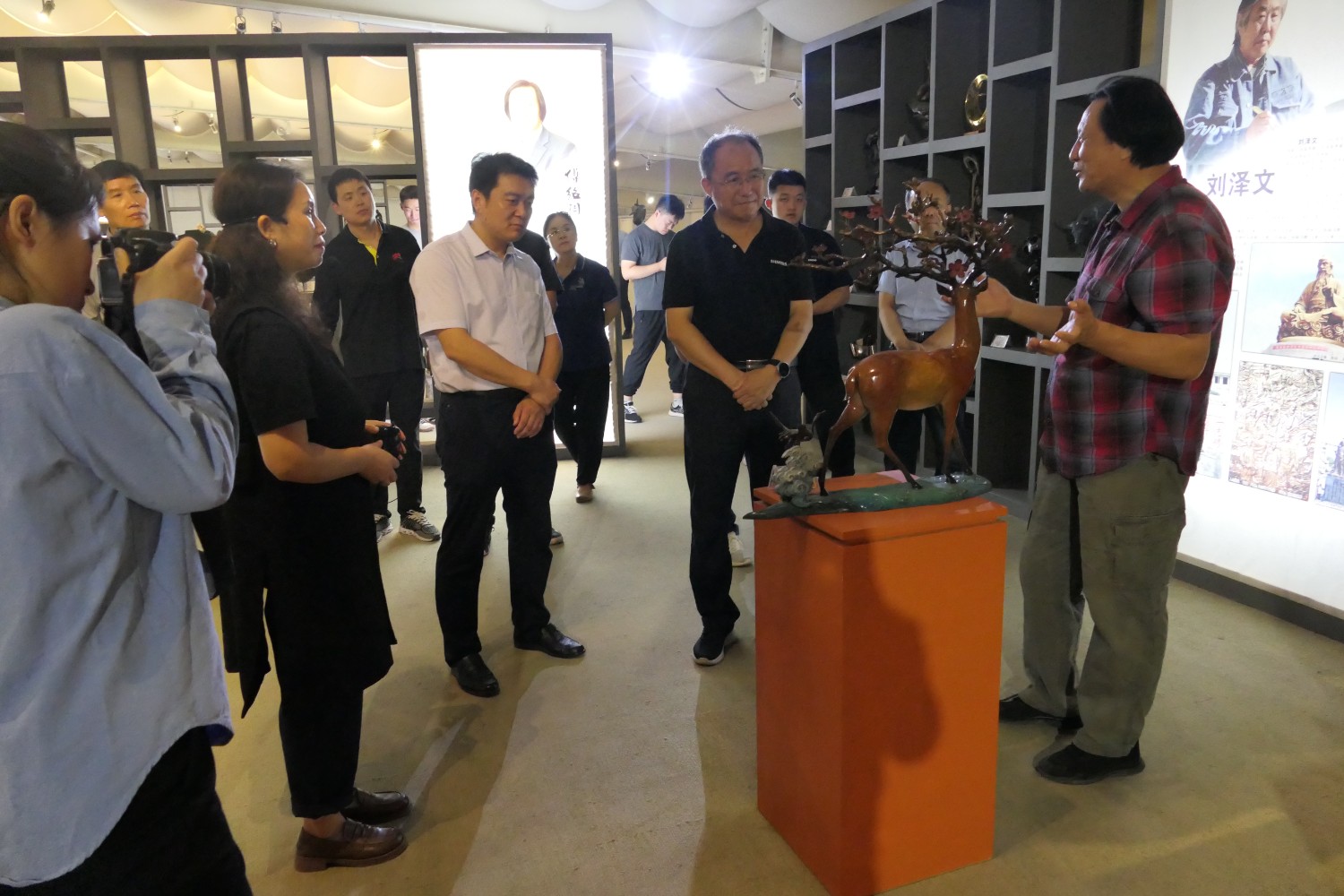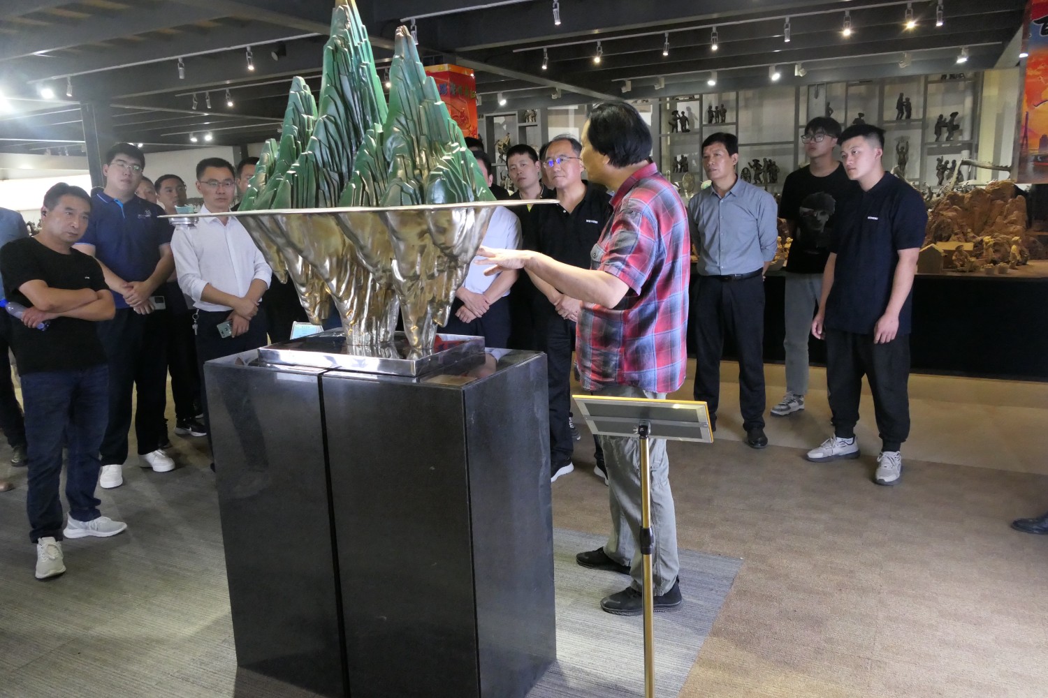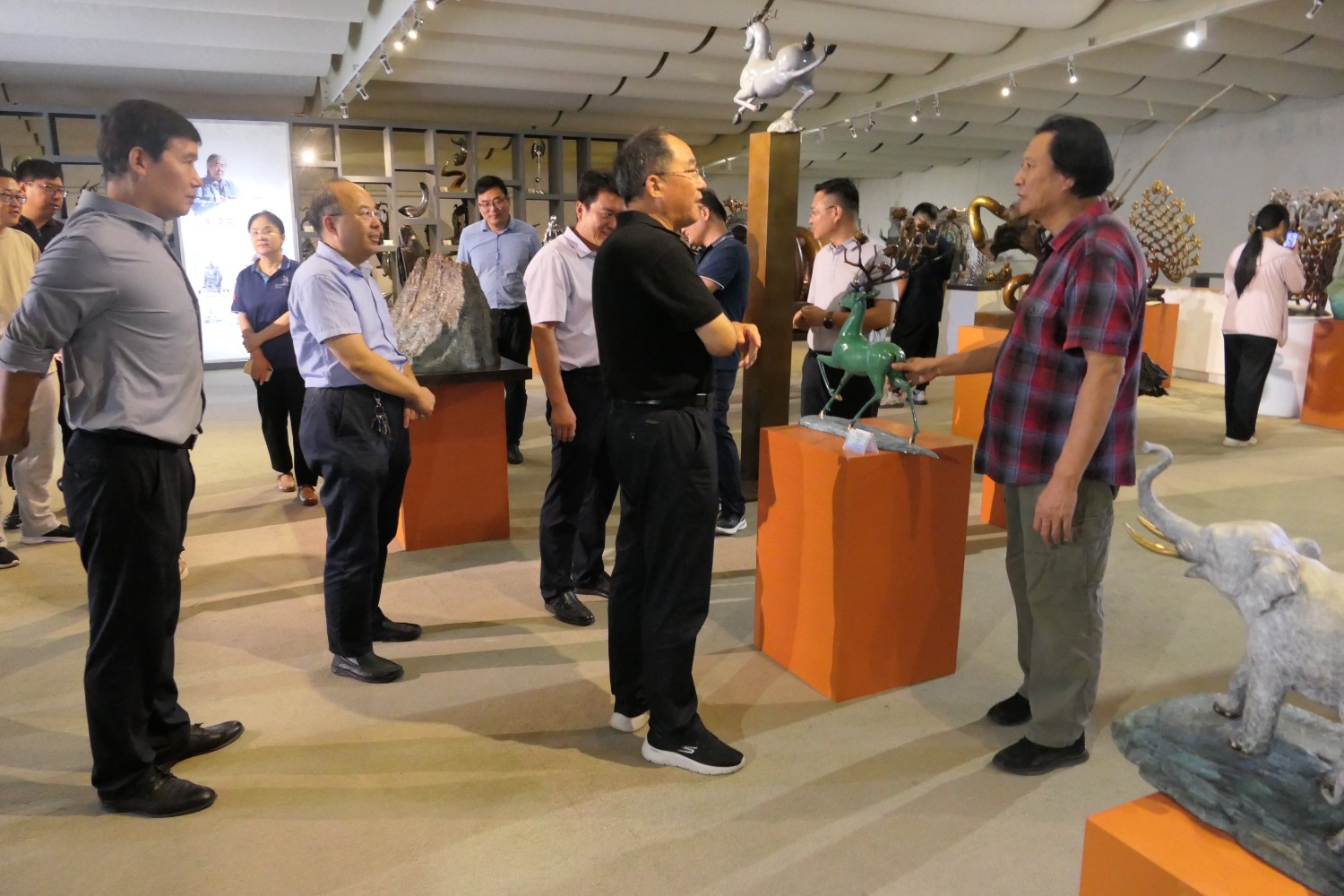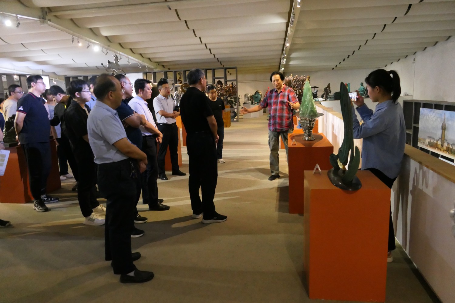 2023年9月26日,山東工業(yè)技師學(xué)院黨委書記孫科順 、 副院長董振濤一行,帶領(lǐng)40余名學(xué)生蒞臨華藝雕塑參觀學(xué)習(xí),中國工美藝術(shù)大師、華藝董事長傅紹相介紹雕塑藝術(shù),并與孫科順書記和技工能手合影留念。