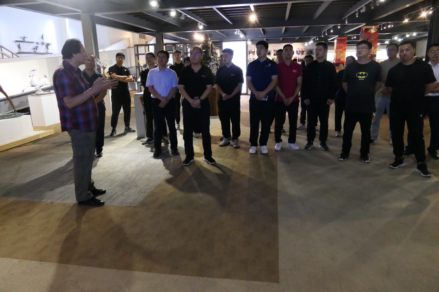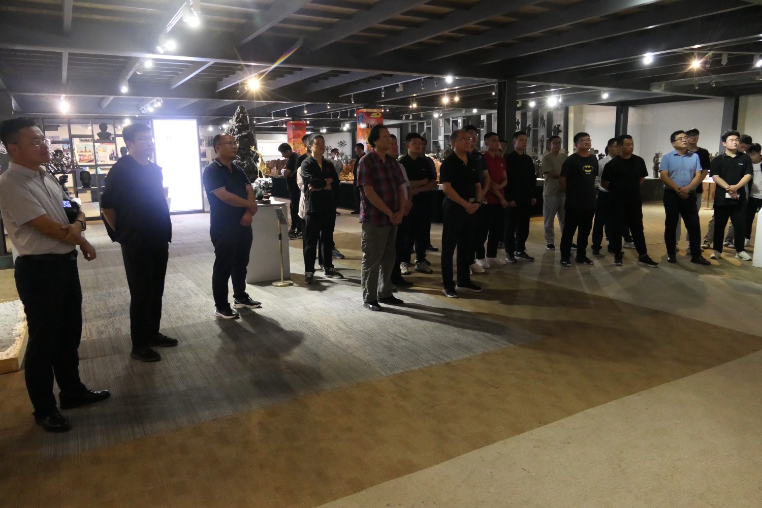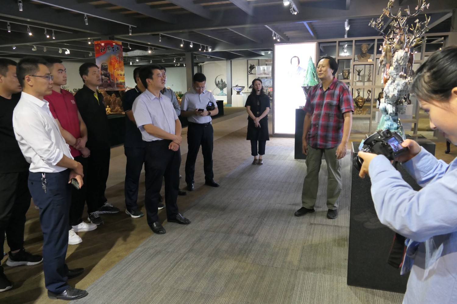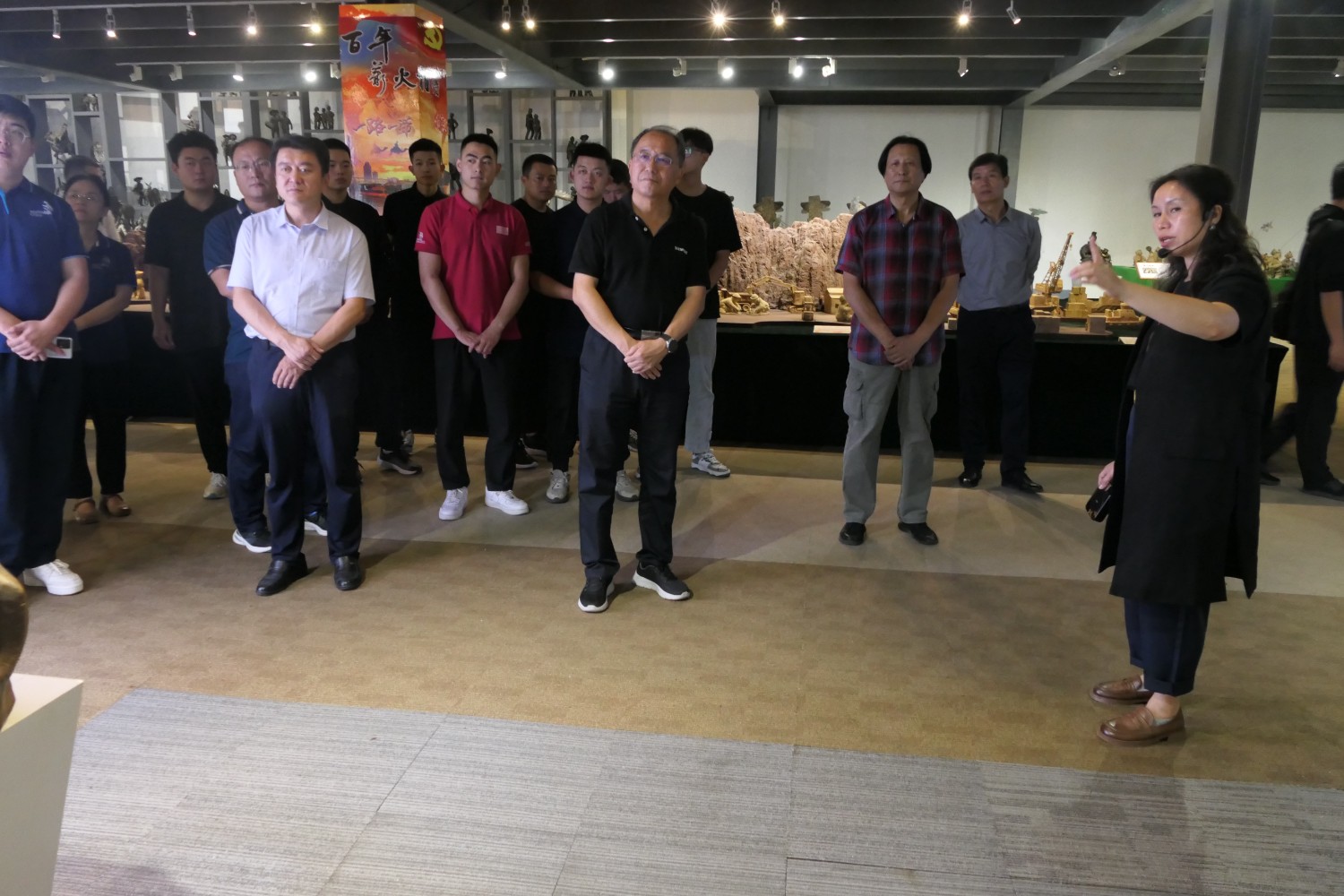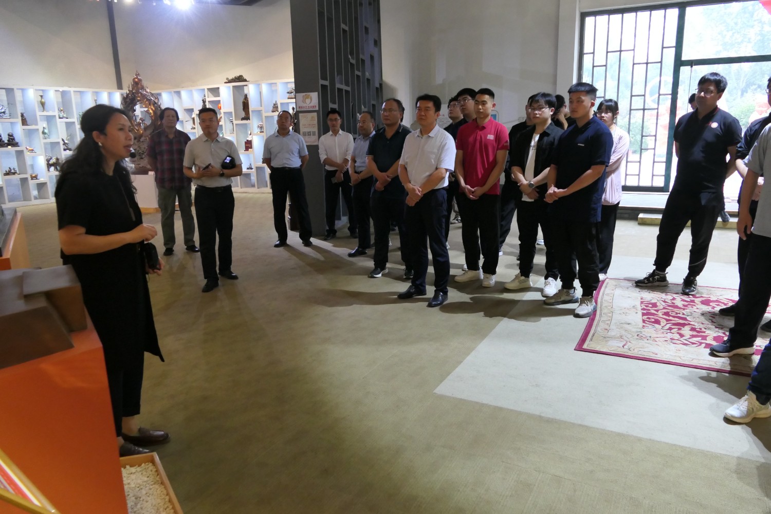 2023年9月26日,山東工業(yè)技師學(xué)院黨委書記孫科順 、 副院長董振濤一行,帶領(lǐng)40余名學(xué)生蒞臨華藝雕塑參觀學(xué)習(xí),中國工美藝術(shù)大師、華藝董事長傅紹相介紹雕塑藝術(shù),并與孫科順書記和技工能手合影留念。