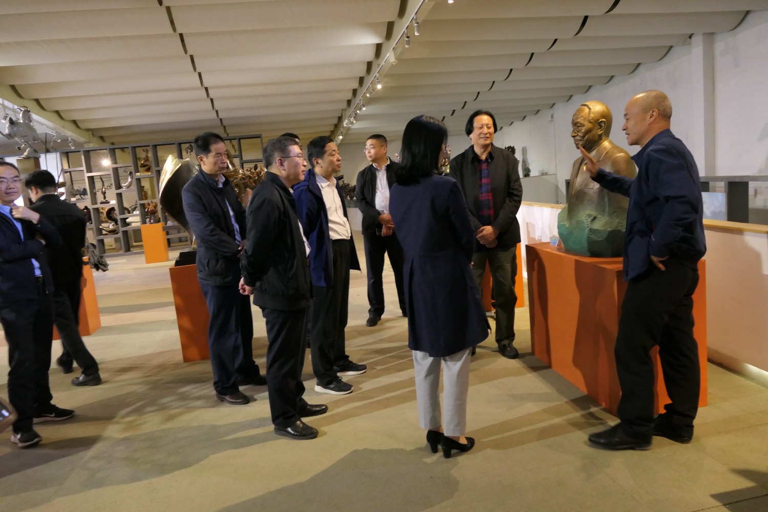 2023年10月20日,原臨朐縣掛職副書記、山東省統(tǒng)計局財務(wù)處長張中華一行,蒞臨華藝雕塑參觀指導(dǎo),國大師傅紹相向來賓介紹雕塑藝術(shù)。
