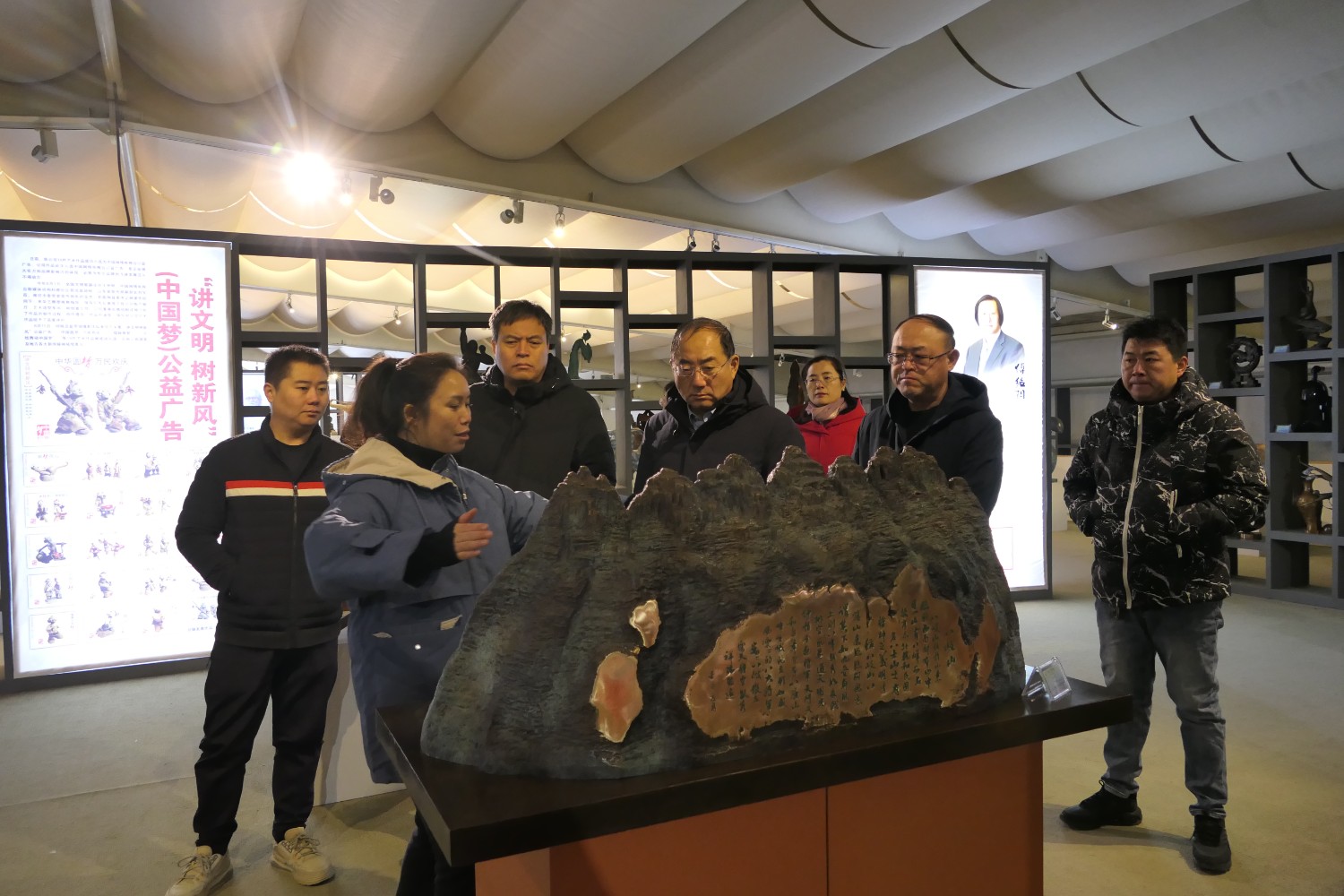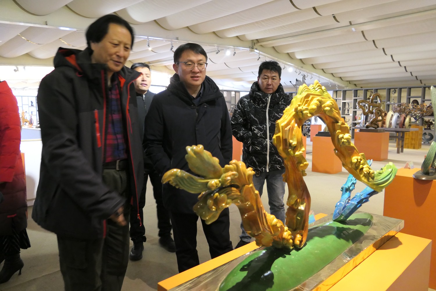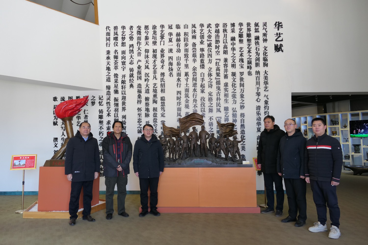 2023年12月20日,山東海化氯堿樹脂有限公司黨總支書記郝宏亮一行蒞臨華藝雕塑參觀指導(dǎo),國大師傅紹相向嘉賓介紹雕塑藝術(shù)。