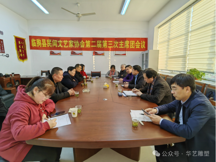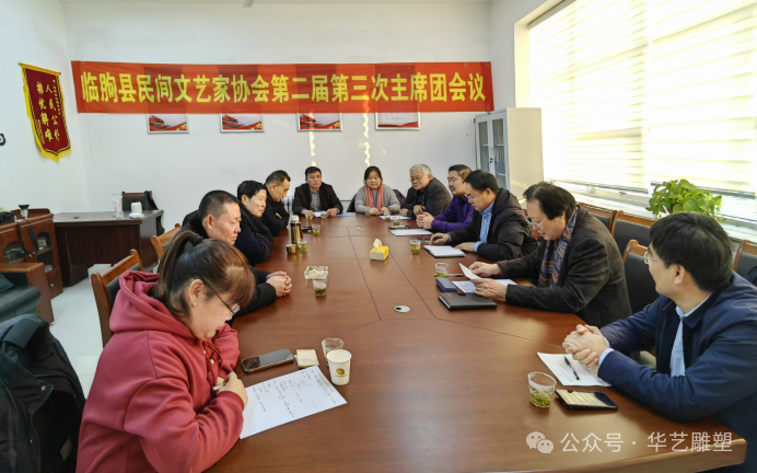 2024年1月27日,臨朐縣民間文藝家協(xié)會在冶源召開第二屆第三次主席團會議,縣文聯(lián)社科聯(lián)黨組書記、主席張克奇蒞臨現(xiàn)場并講話。參加會議的人員有:臨朐縣民間文藝家協(xié)會主席傅紹相,常務副主席兼秘書長劉文遠,副主席連恩平、范文剛、趙永德、鄭成雙;副秘書長譚建偉、蔣靜、季韋韋、孫秀華。會議由常務副主席秘書長劉文遠主持。首先,由副秘書長譚建偉作2023年度財務工作報告;第二項,根據(jù)協(xié)會發(fā)展需要,報請縣文聯(lián)批準,選舉增補了劉廣海同志為民協(xié)副主席。第三項,縣民協(xié)主席傅紹相匯報2023年度協(xié)會的工作發(fā)展及活動情況。傅主席講話中說,今年我們民協(xié)成功舉辦了“鄉(xiāng)村振興齊魯樣板—產(chǎn)業(yè)興旺有好戲”2023(臨朐好手藝)民間藝術?工藝美術精品展銷會暨首屆臨朐(舟超杯)設計創(chuàng)新大賽,得到了省市縣各級領導和協(xié)會領導的充分肯定和認可。省市有關領導在參觀現(xiàn)場時說,此次大展由縣民協(xié)成功舉辦,這在濰坊市還是空前的,這是一個很好地開端!此次展覽實現(xiàn)了老中青藝術家,同臺獻藝,國大師、省大師、市大師代表性作品齊聚,是一次八仙過海、各顯其能的藝術交流盛會,充分體現(xiàn)了“山東手造”技藝的創(chuàng)新發(fā)展,彰顯了臨朐民間藝術的學術性和獨特性。