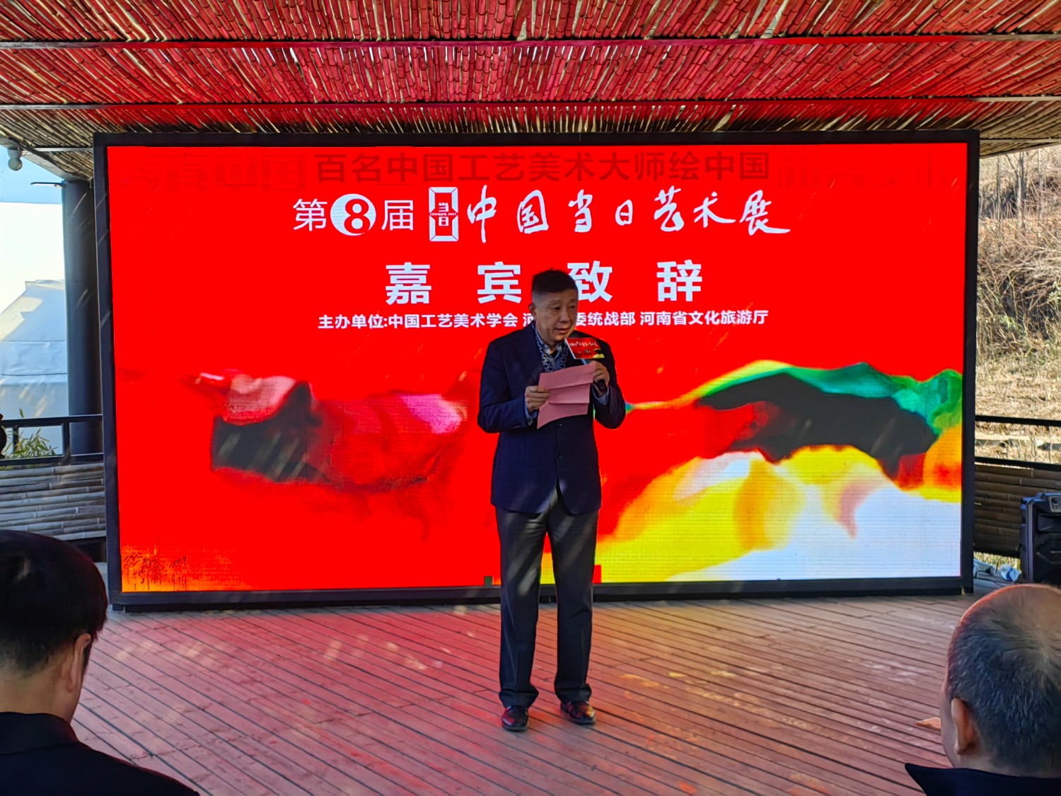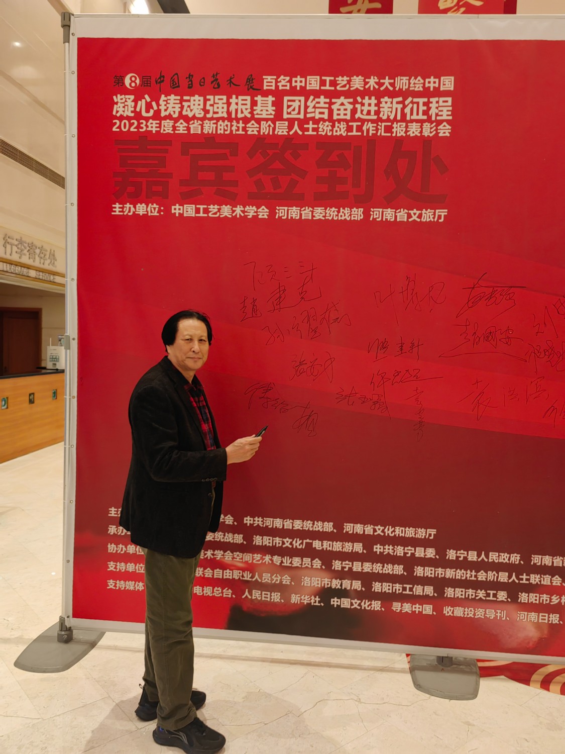 2024-3-112023年12月31日,由中國工藝美術(shù)學(xué)會(huì)、河南省委統(tǒng)戰(zhàn)部、河南省文化旅游廳共同主辦的第八屆中國【當(dāng)日】藝術(shù)展暨百名中國工藝美術(shù)大師繪中國活動(dòng)在洛陽隆重舉辦。出席開幕式的主要領(lǐng)導(dǎo)及嘉賓有中國工藝美術(shù)學(xué)會(huì)黨委書記、理事長才大穎,河南省委統(tǒng)戰(zhàn)部副部長、一級(jí)巡視員梁險(xiǎn)峰,洛陽市人大常委會(huì)副主任雷雪芹,洛陽市政協(xié)副主席魏險(xiǎn)峰,中國工藝美術(shù)學(xué)會(huì)黨委副書記王建良,河南省委統(tǒng)戰(zhàn)部新階層人士統(tǒng)戰(zhàn)工作處處長、二級(jí)巡視員張?zhí)礻嚕鍖幙h縣長王瑞,洛寧縣委統(tǒng)戰(zhàn)部部長易劍波,中國工藝美術(shù)大師代表:趙國安、楊德全、苗煒、鄭國明、熊建新、袁洪濱、傅紹相、王芝文、苗長強(qiáng)、雷天勇、孔相卿、賈會(huì)成、仵孟超、李竹玲、史延春、龐永輝、郭愛和,以及相關(guān)單位領(lǐng)導(dǎo)、專家、學(xué)者近二百余人出席了此次活動(dòng)。