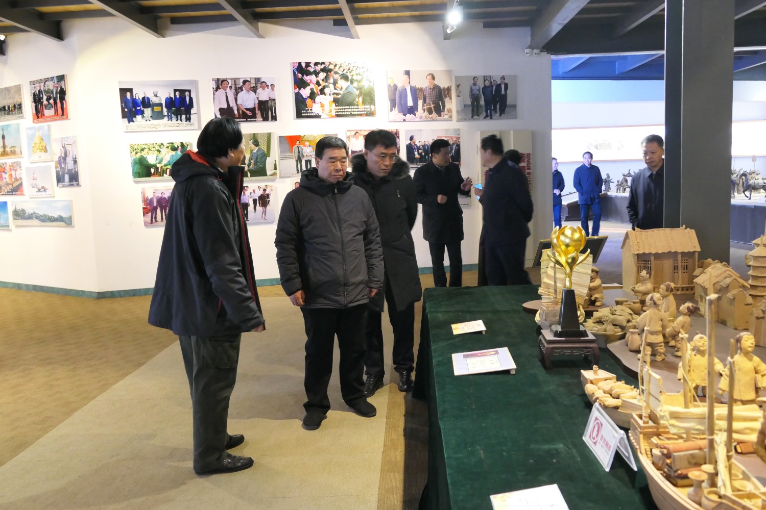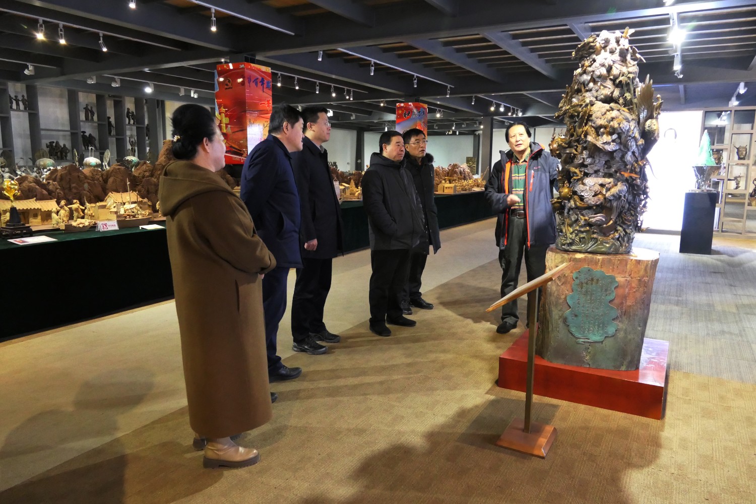 2023年12月23日,原濰坊市委書(shū)記劉曙光,原濰坊市政協(xié)主席蘇立科,原濰坊市政協(xié)主席劉建國(guó)等濰坊市老領(lǐng)導(dǎo),在臨朐縣委副書(shū)記、縣長(zhǎng)陳誠(chéng)陪同下,蒞臨華藝雕塑參觀指導(dǎo),國(guó)大師傅紹相向老領(lǐng)導(dǎo)介紹山東手造文創(chuàng)作品及雕塑藝術(shù)。 ?