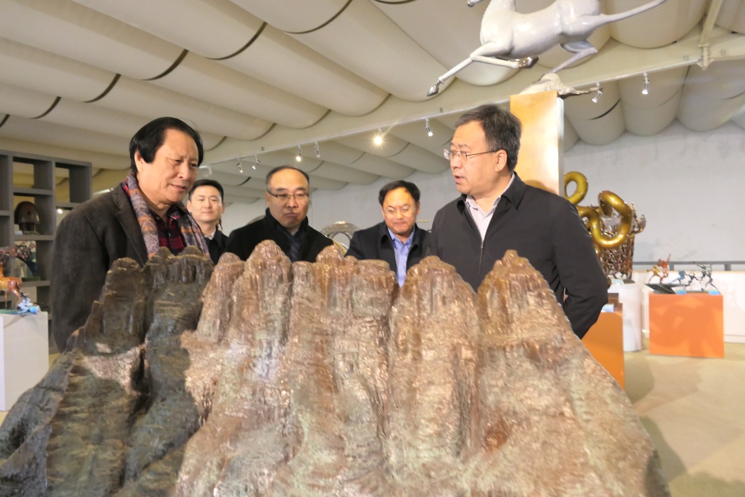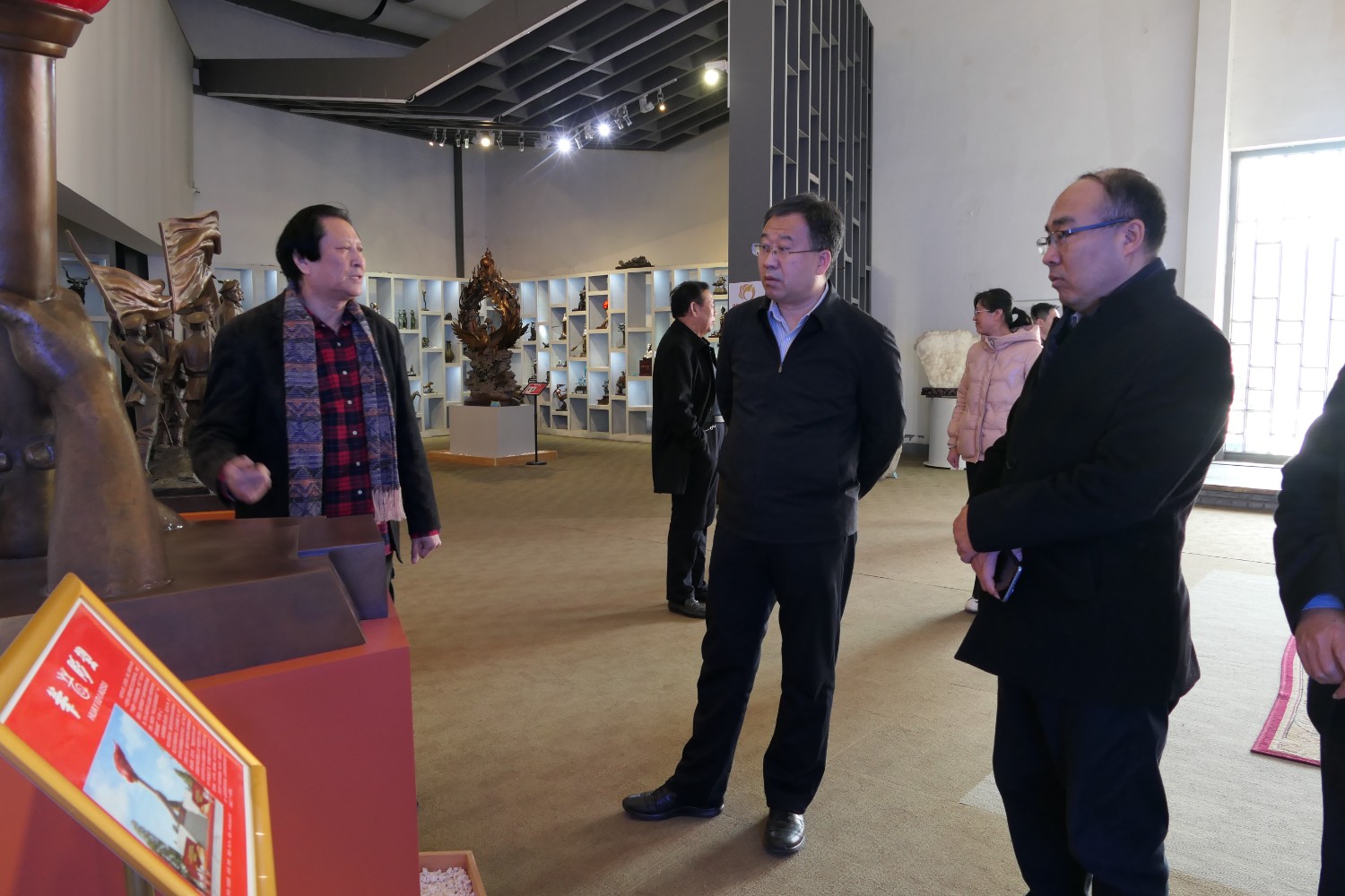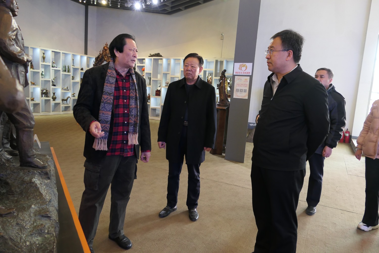 2024年3月8日,濰坊市文聯(lián)領(lǐng)導(dǎo)赴臨朐就基層文聯(lián)、縣級(jí)文藝協(xié)會(huì)工作開展情況、文藝精品創(chuàng)作等進(jìn)行調(diào)研,濰坊市委宣傳部副部長、市文聯(lián)黨組書記、主席劉世海,濰坊市文聯(lián)黨組成員、副主席鄧光著,濰坊市文聯(lián)主任級(jí)科員陳豪等領(lǐng)導(dǎo),在臨朐縣文聯(lián)黨組書記、主席張克奇,臨朐縣文聯(lián)社科聯(lián)黨組成員、副主席張麗麗,中國書協(xié)會(huì)員、臨朐縣書協(xié)主席張俊慶等領(lǐng)導(dǎo)的陪同子下,蒞臨華藝雕塑參觀調(diào)研。中國工藝美術(shù)大師、臨朐縣民協(xié)主席傅紹相向領(lǐng)導(dǎo)嘉賓介紹華藝雕塑發(fā)展情況及“山東手造”文創(chuàng)青銅藝術(shù)品。
