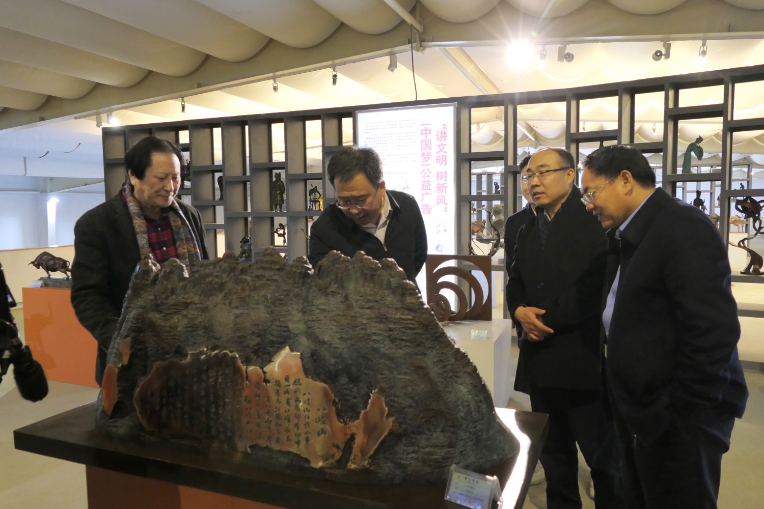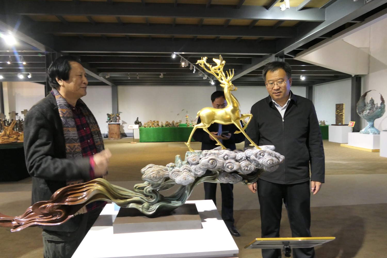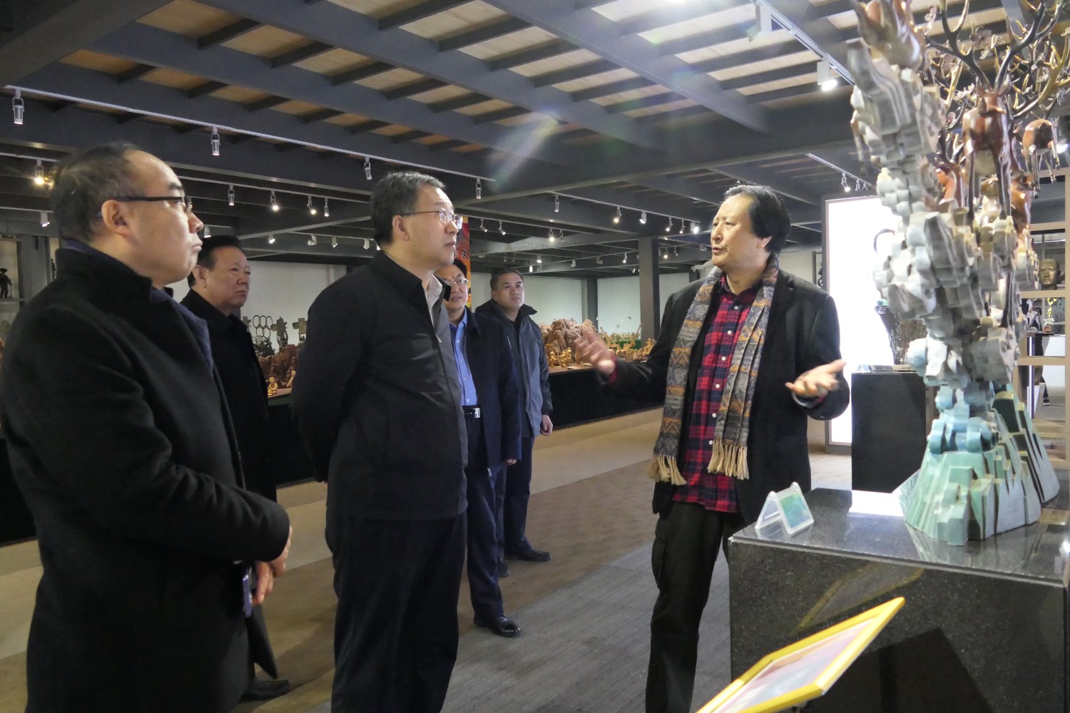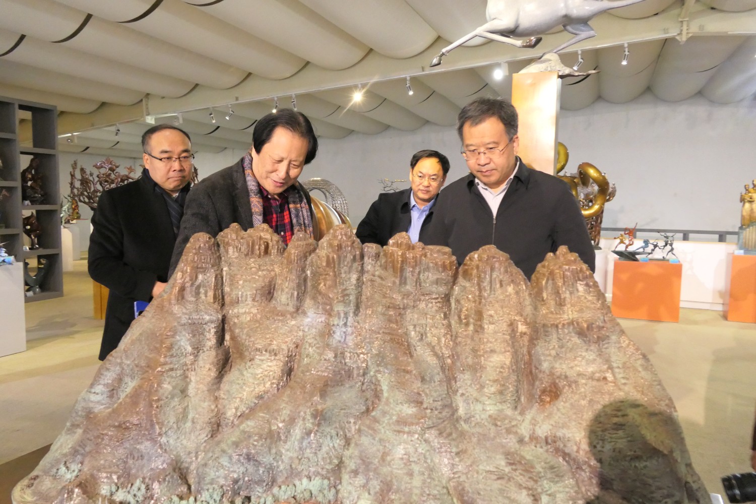 2024年3月8日,濰坊市文聯(lián)領(lǐng)導(dǎo)赴臨朐就基層文聯(lián)、縣級(jí)文藝協(xié)會(huì)工作開展情況、文藝精品創(chuàng)作等進(jìn)行調(diào)研,濰坊市委宣傳部副部長、市文聯(lián)黨組書記、主席劉世海,濰坊市文聯(lián)黨組成員、副主席鄧光著,濰坊市文聯(lián)主任級(jí)科員陳豪等領(lǐng)導(dǎo),在臨朐縣文聯(lián)黨組書記、主席張克奇,臨朐縣文聯(lián)社科聯(lián)黨組成員、副主席張麗麗,中國書協(xié)會(huì)員、臨朐縣書協(xié)主席張俊慶等領(lǐng)導(dǎo)的陪同子下,蒞臨華藝雕塑參觀調(diào)研。中國工藝美術(shù)大師、臨朐縣民協(xié)主席傅紹相向領(lǐng)導(dǎo)嘉賓介紹華藝雕塑發(fā)展情況及“山東手造”文創(chuàng)青銅藝術(shù)品。