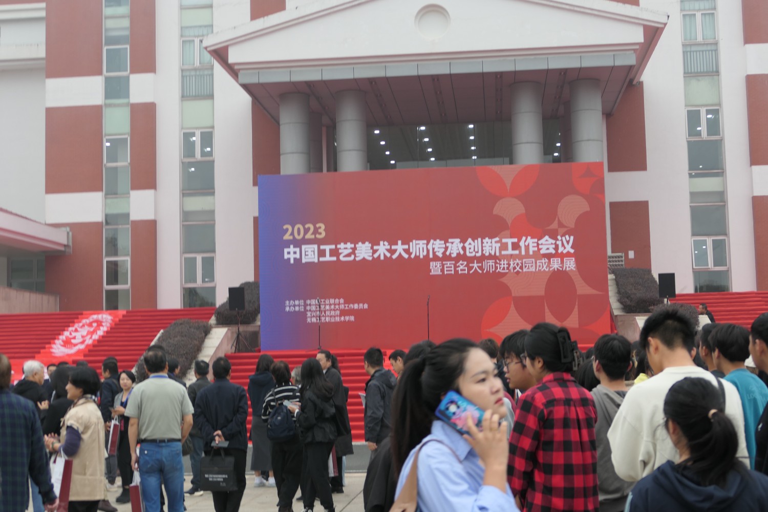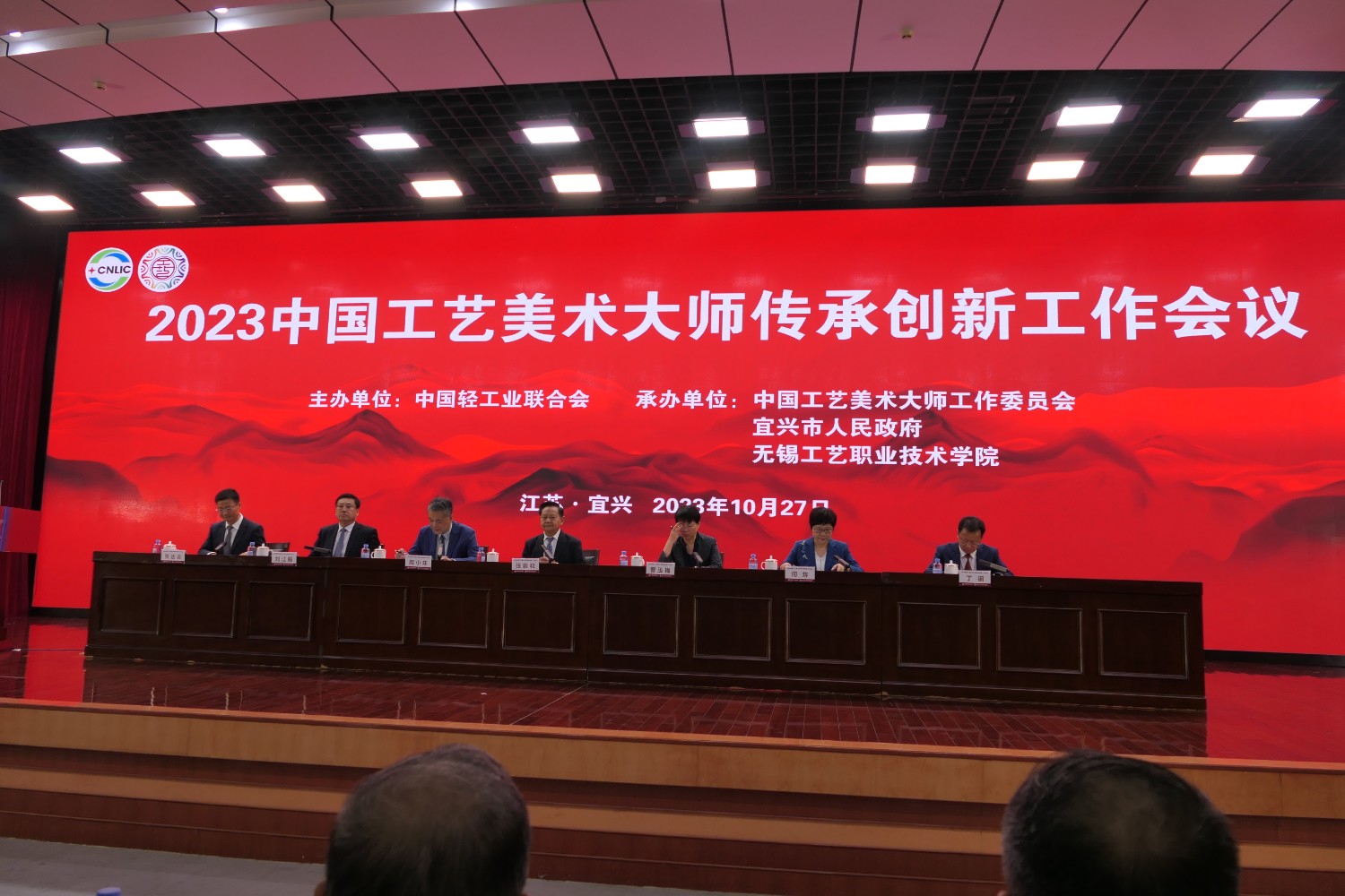 2024-4-24為深入貫徹落實習(xí)近平總書記文化思想精神,推動中國工藝美術(shù)傳承創(chuàng)新,進(jìn)一步發(fā)揮工藝美術(shù)大師引領(lǐng)行業(yè)發(fā)展的重要作用,深化百名大師進(jìn)校園活動,2023年10月27-28日,中國輕工業(yè)聯(lián)合會在宜興無錫工藝職業(yè)技術(shù)學(xué)院召開中國工藝美術(shù)大師傳承創(chuàng)新工作會議,總結(jié)部署大師傳承創(chuàng)新相關(guān)工作,表彰校園優(yōu) 秀大師和優(yōu) 秀傳承創(chuàng)新基地院校,舉行新一批大師進(jìn)校園簽約儀式。同期舉辦工藝美術(shù)系列工作會議和百名大師進(jìn)校園成果展。