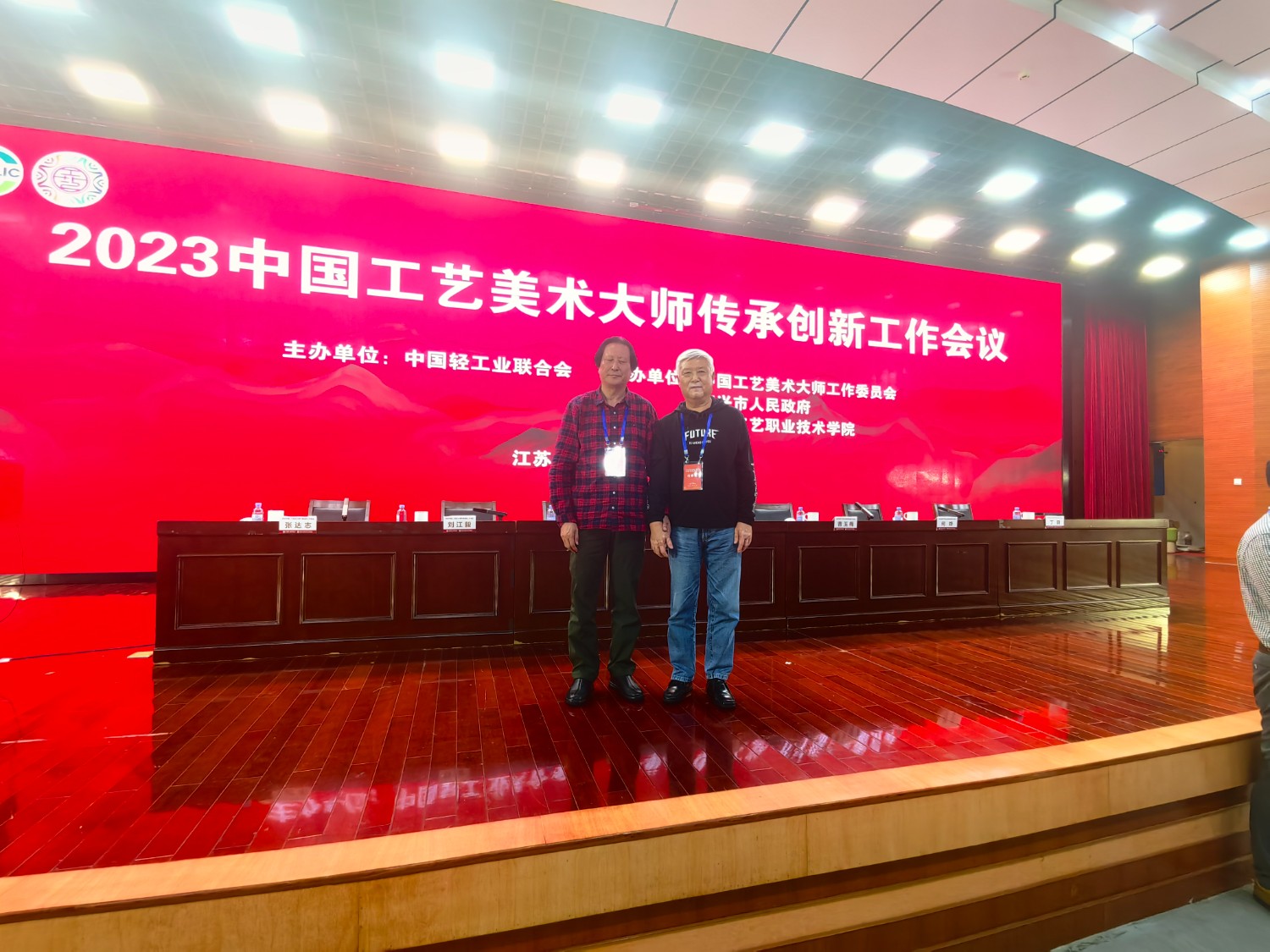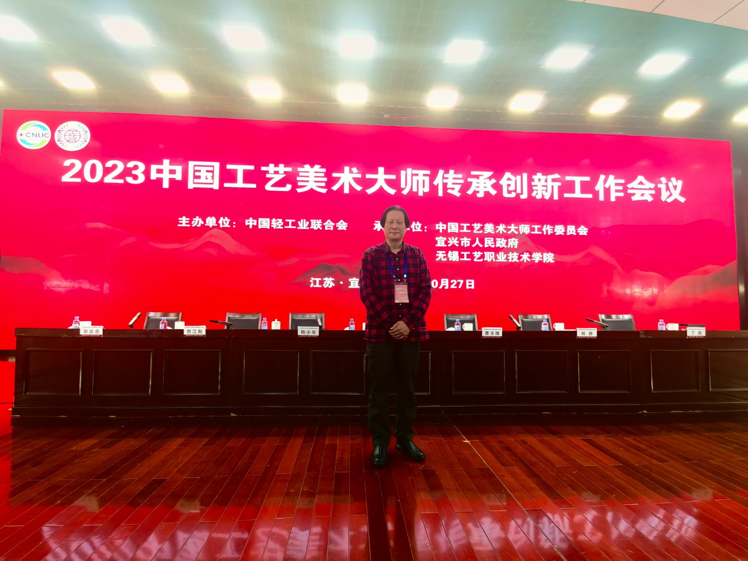 中國輕工業(yè)聯(lián)合會會長、中國工藝美術(shù)大師工作委員會主任張崇和,江蘇省教育廳副廳長曹玉梅,中國輕工業(yè)聯(lián)合會副會長、中國工藝美術(shù)大師工作委員會副主任何燁,中國輕工業(yè)聯(lián)合會副會長、全國工藝美術(shù)標(biāo)委會主任劉江毅,教育部職成司教學(xué)與質(zhì)量處處長張磊,無錫工藝職業(yè)技術(shù)學(xué)院黨委書記丁鋼,宜興市副市長張達(dá)志,無錫工藝職業(yè)技術(shù)學(xué)院院長孫振球,江蘇省輕工廳原廳長陳世愛出席會議。會議由中國輕工業(yè)聯(lián)合會紀(jì)委書記、中國工藝美術(shù)大師工作委員會副主任陶小年主持。中國工藝美術(shù)大師傅紹相先后參加了“2023中國工藝美術(shù)大師傳承創(chuàng)新工作會議和2023年年度全國工藝美術(shù)標(biāo)準(zhǔn)化技術(shù)委員會年會”,并參觀了中國宜興陶瓷博物館、利永紫砂博物館、前墅龍窯和東坡書院。