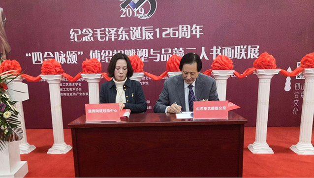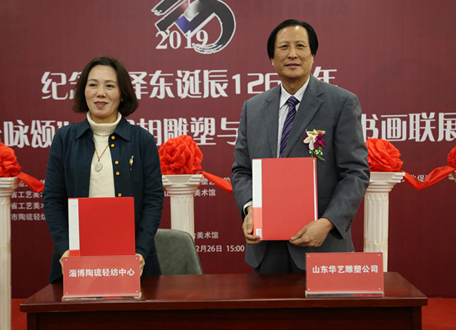 淄博市陶琉輕紡產(chǎn)業(yè)發(fā)展中心黨組成員、副主任何雅英與山東華藝雕塑藝術(shù)股份有限公司董事長(zhǎng)傅紹相簽署了戰(zhàn)略合作協(xié)議。