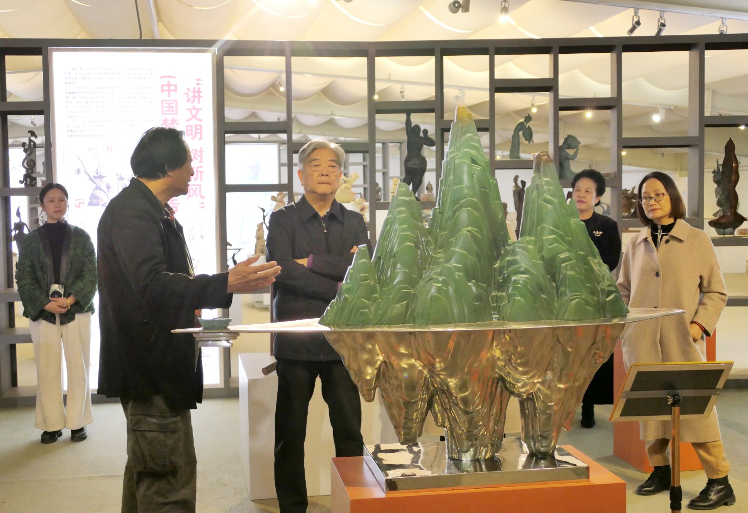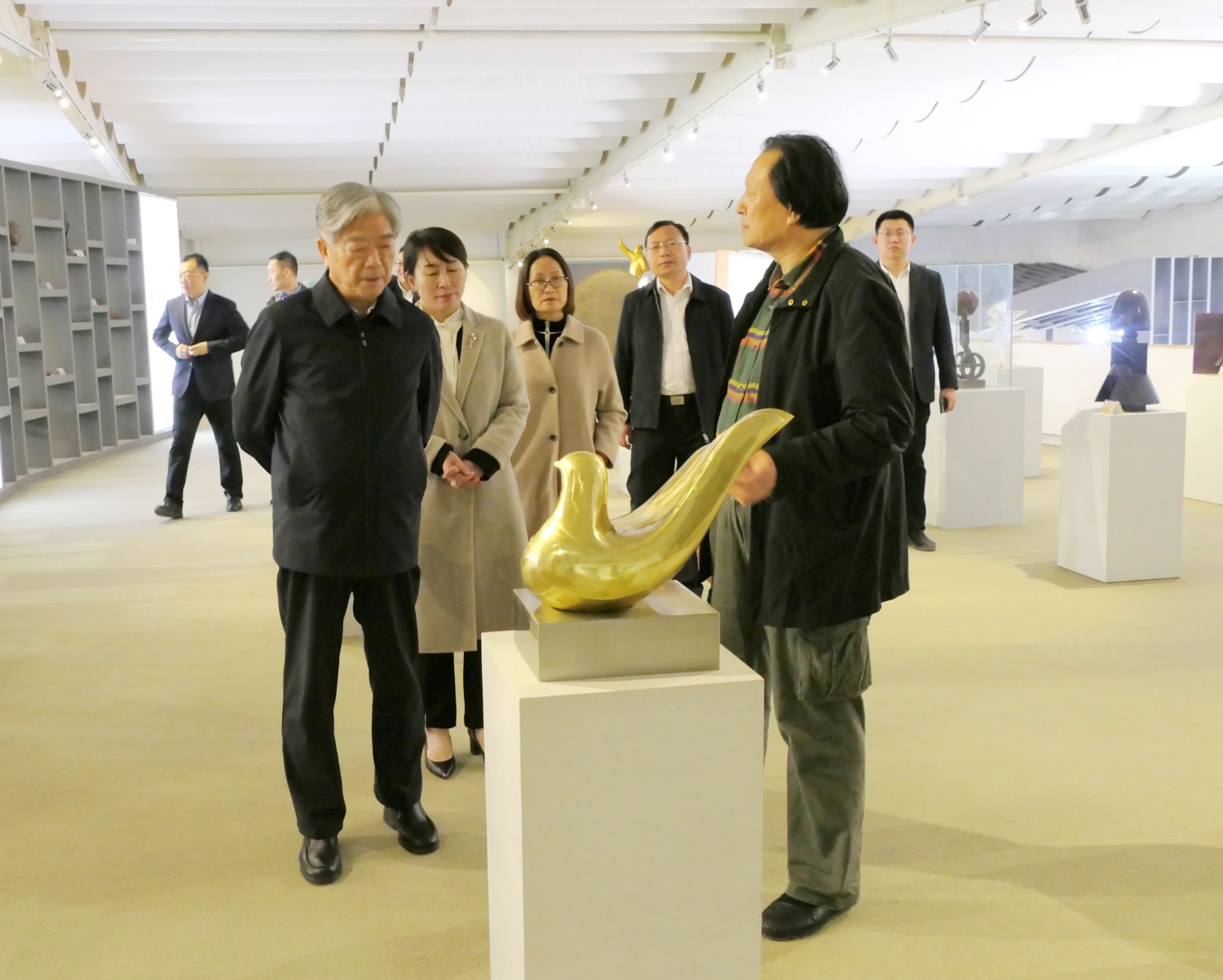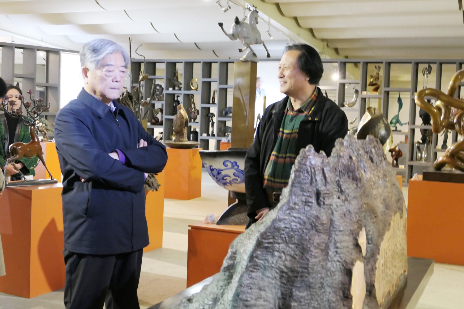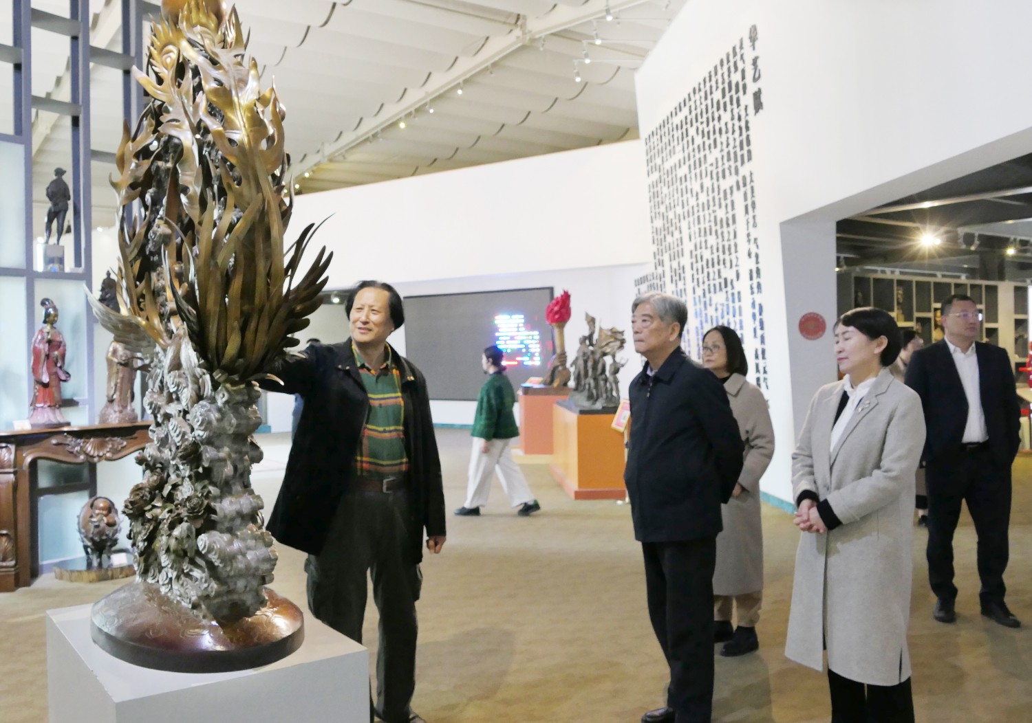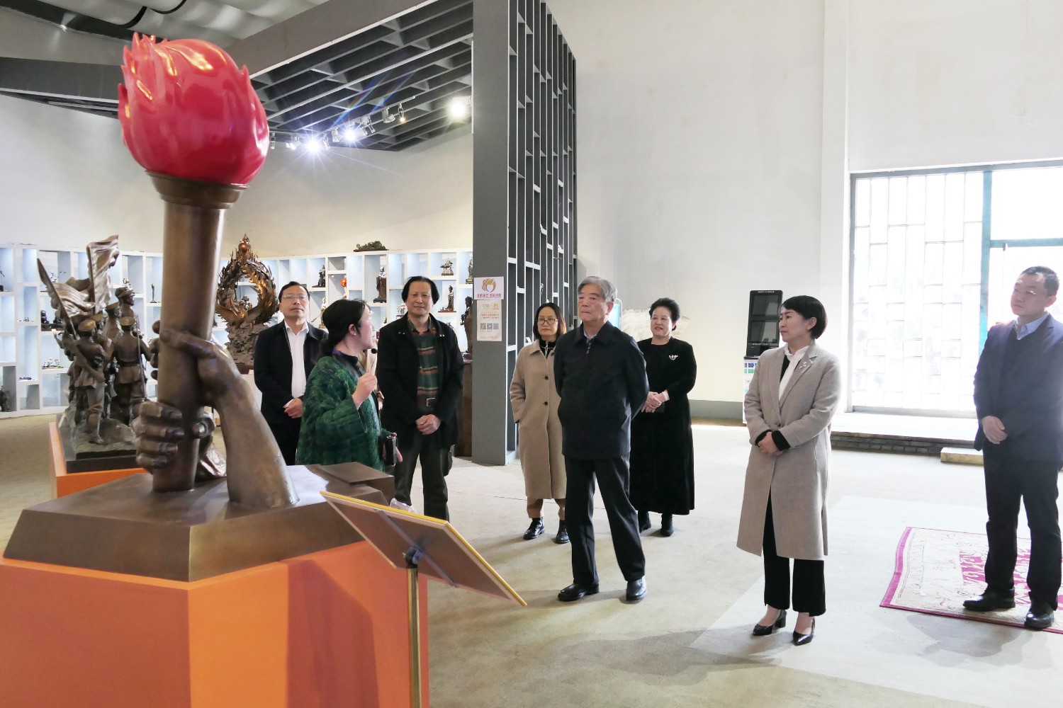 2023年4月7日,曾任國(guó)家食品藥品監(jiān)督管理局局長(zhǎng)、現(xiàn)任國(guó)家藥典委員會(huì)常務(wù)副主任委員邵明立,在臨朐縣委書記劉艷芳的陪同下,蒞臨華藝參觀指導(dǎo),邵明立部長(zhǎng)對(duì)雕塑藝術(shù)研究頗深,傅紹相與邵部長(zhǎng)親切交流雕塑藝術(shù)。
