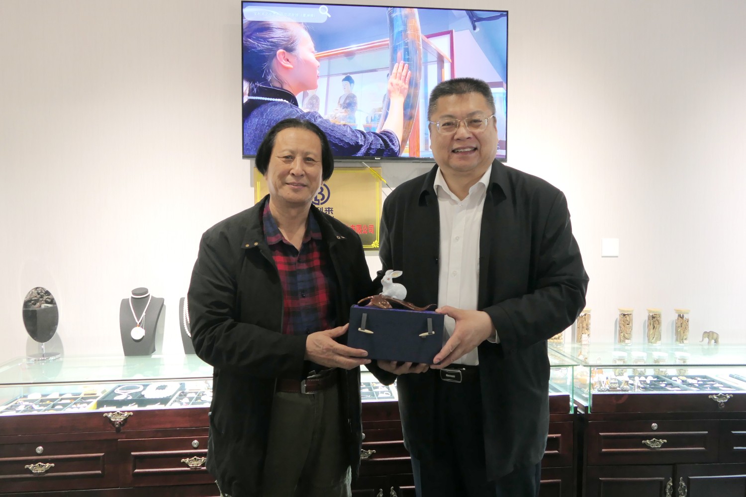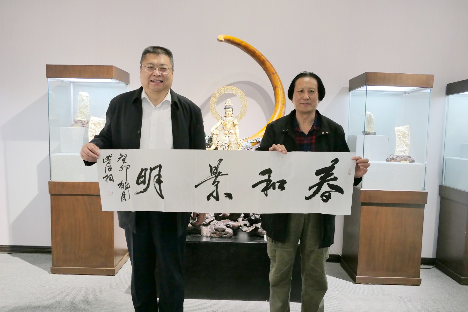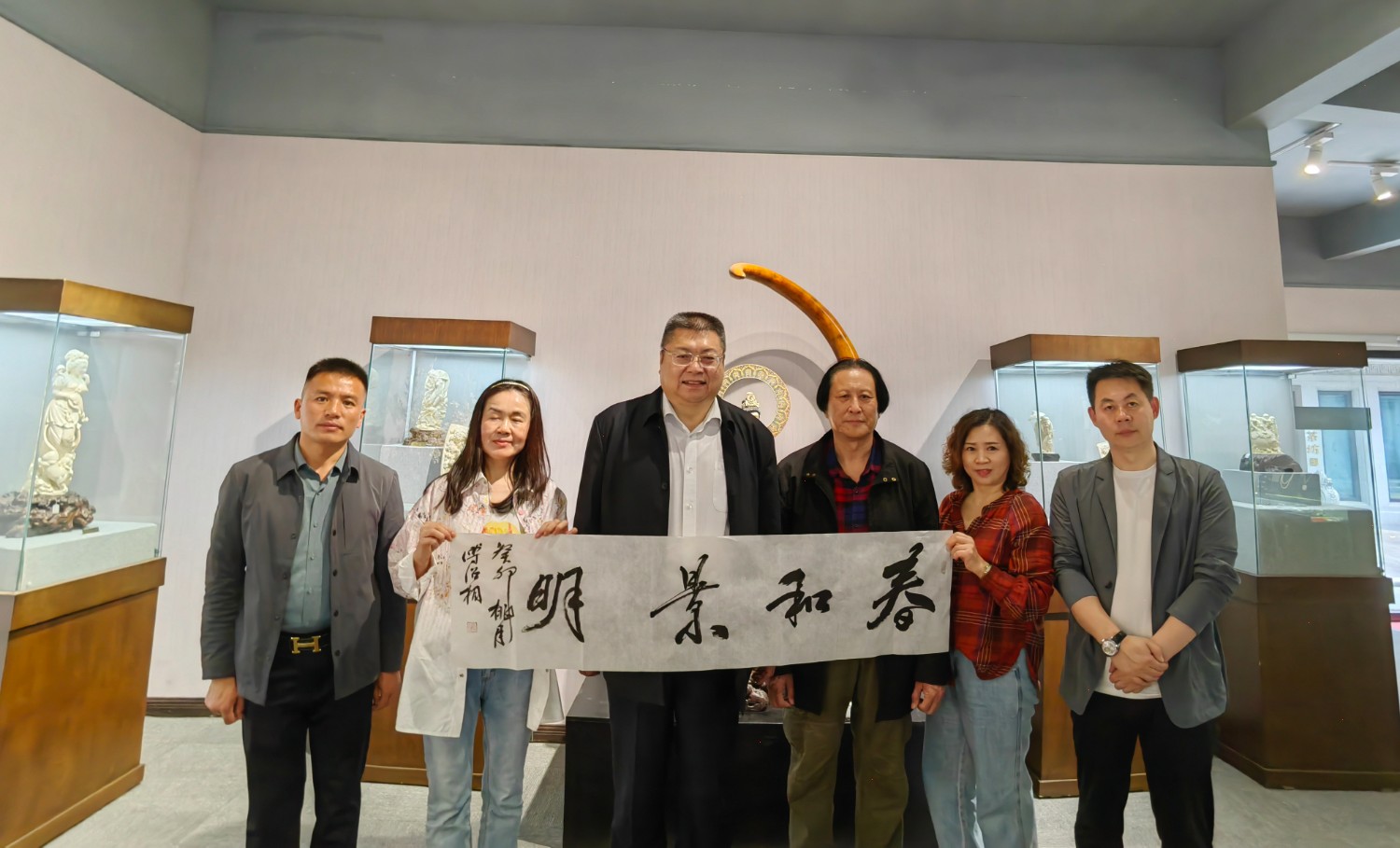 2023年4月9日,在澳門橫琴香洲埠會(huì)館與世界文交所劉灃董事長(zhǎng)交流文化藝術(shù),贈(zèng)送劉灃先生雕塑作品《玉兔如意》及書法作品,曹秋蓉、倫九梅兩位總經(jīng)理一同出席交流活動(dòng)。參觀勵(lì)駿廣場(chǎng)、橫琴口岸、三樓世界文交所藝術(shù)展廳等。