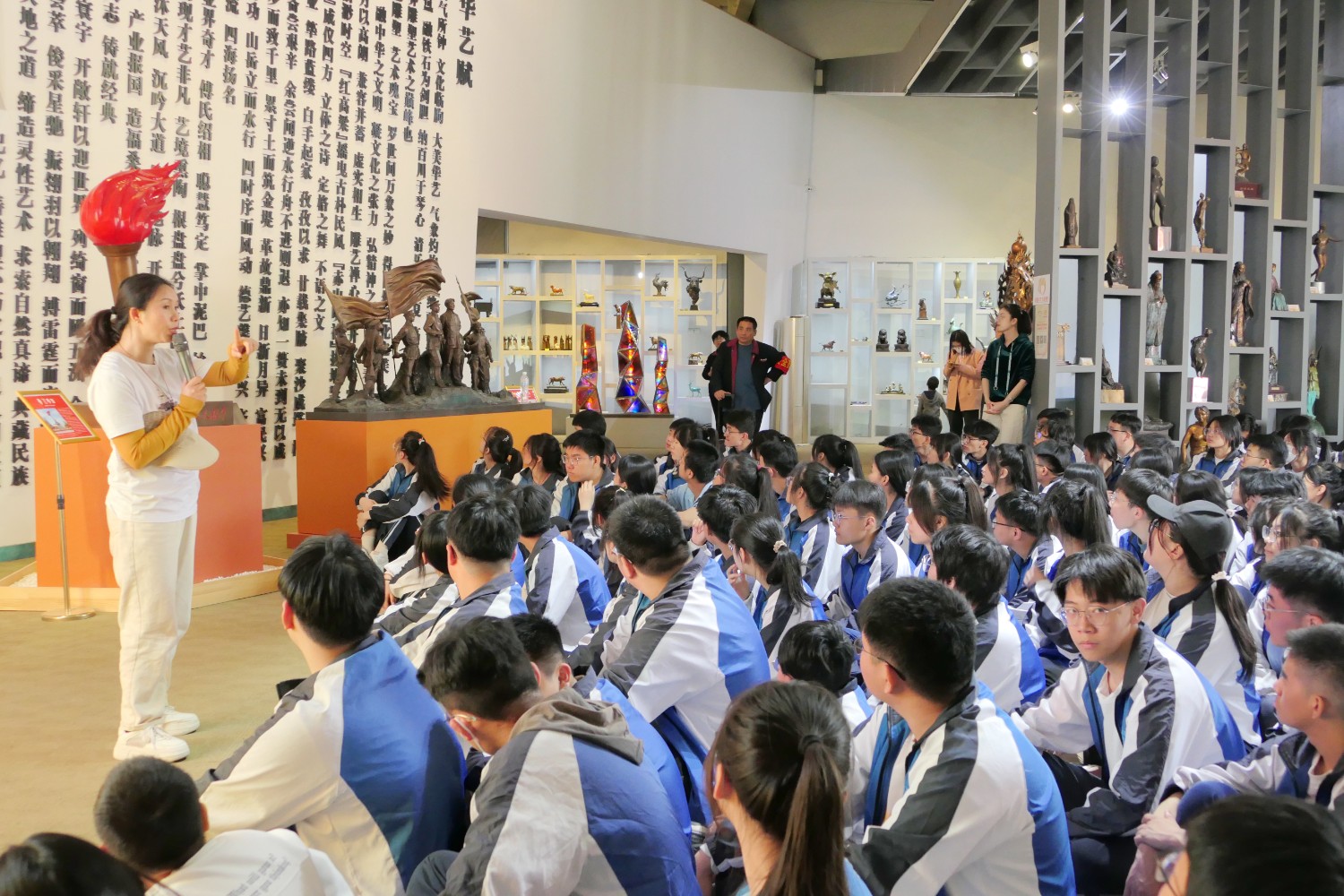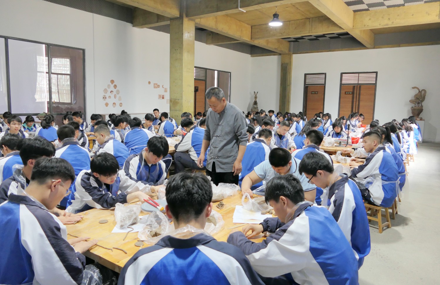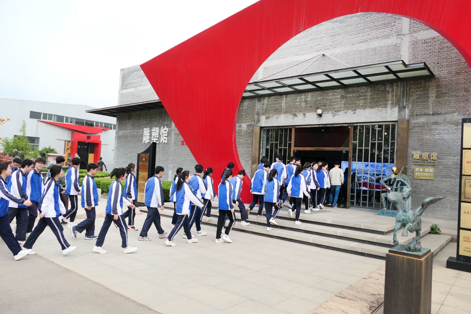 2023年5月20日,臨朐海岳中學師生四百余名,在學校老師傅海剛帶領(lǐng)下,蒞臨華藝雕塑參觀學習并進行陶藝體驗活動,中國工藝美術(shù)大師傅紹相向同學們講解了雕塑藝術(shù),濰坊市實驗學校副校長呂瑩陪同活動。