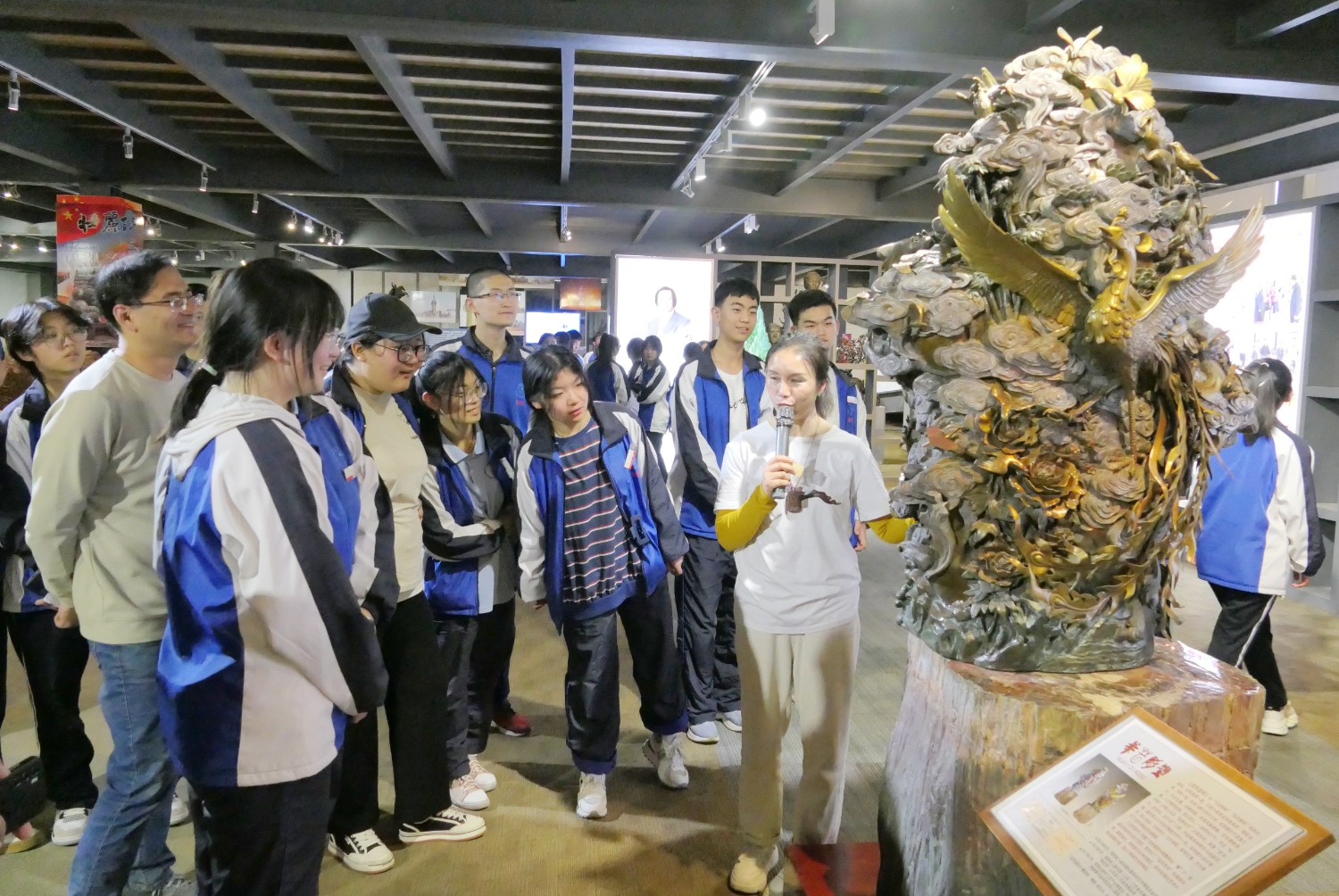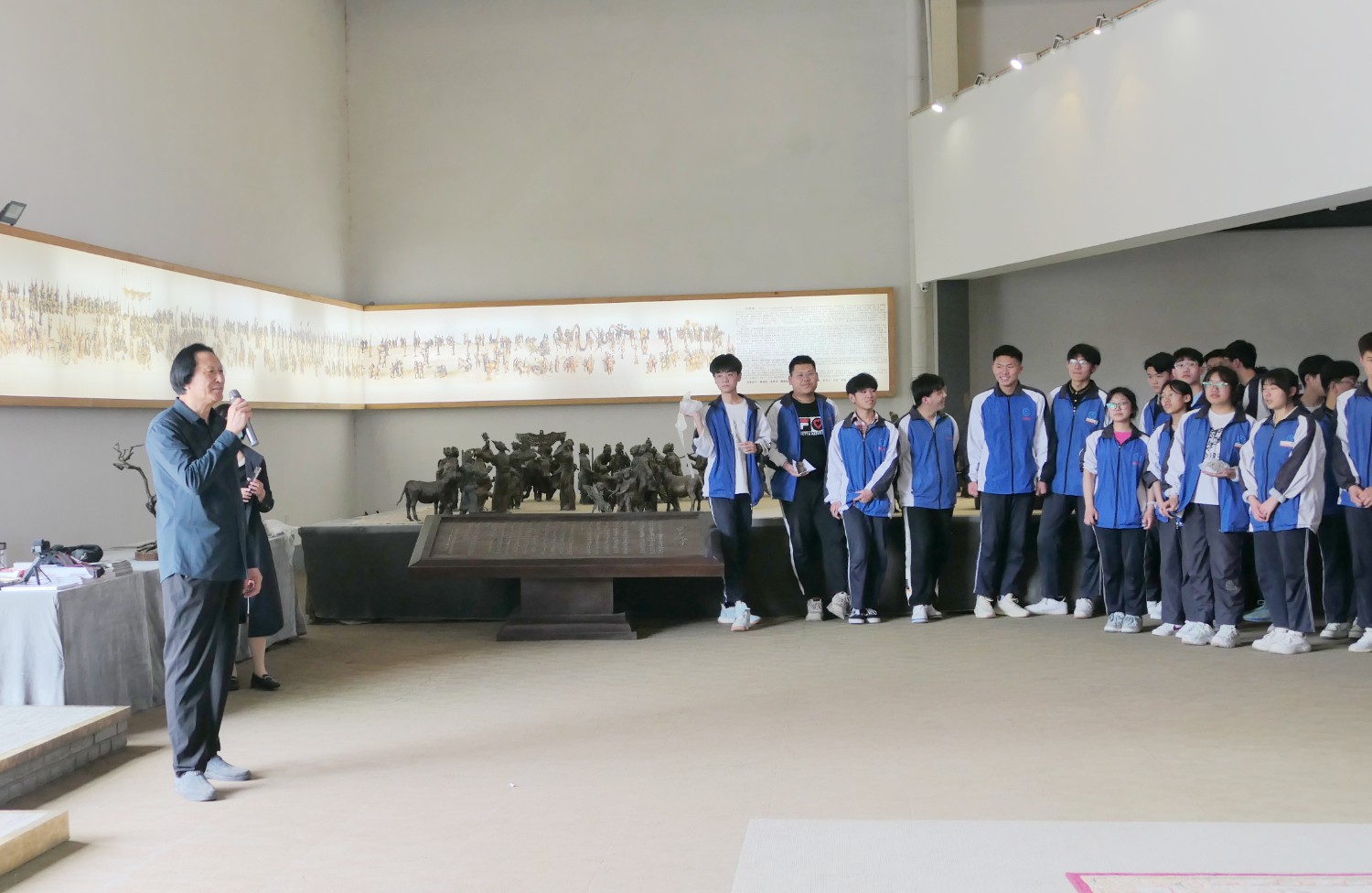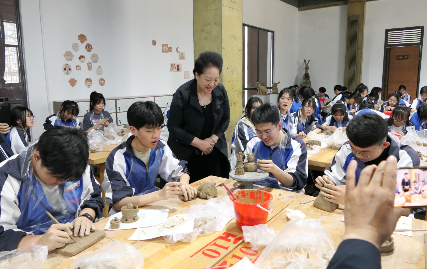 2023年5月20日,臨朐海岳中學師生四百余名,在學校老師傅海剛帶領(lǐng)下,蒞臨華藝雕塑參觀學習并進行陶藝體驗活動,中國工藝美術(shù)大師傅紹相向同學們講解了雕塑藝術(shù),濰坊市實驗學校副校長呂瑩陪同活動。