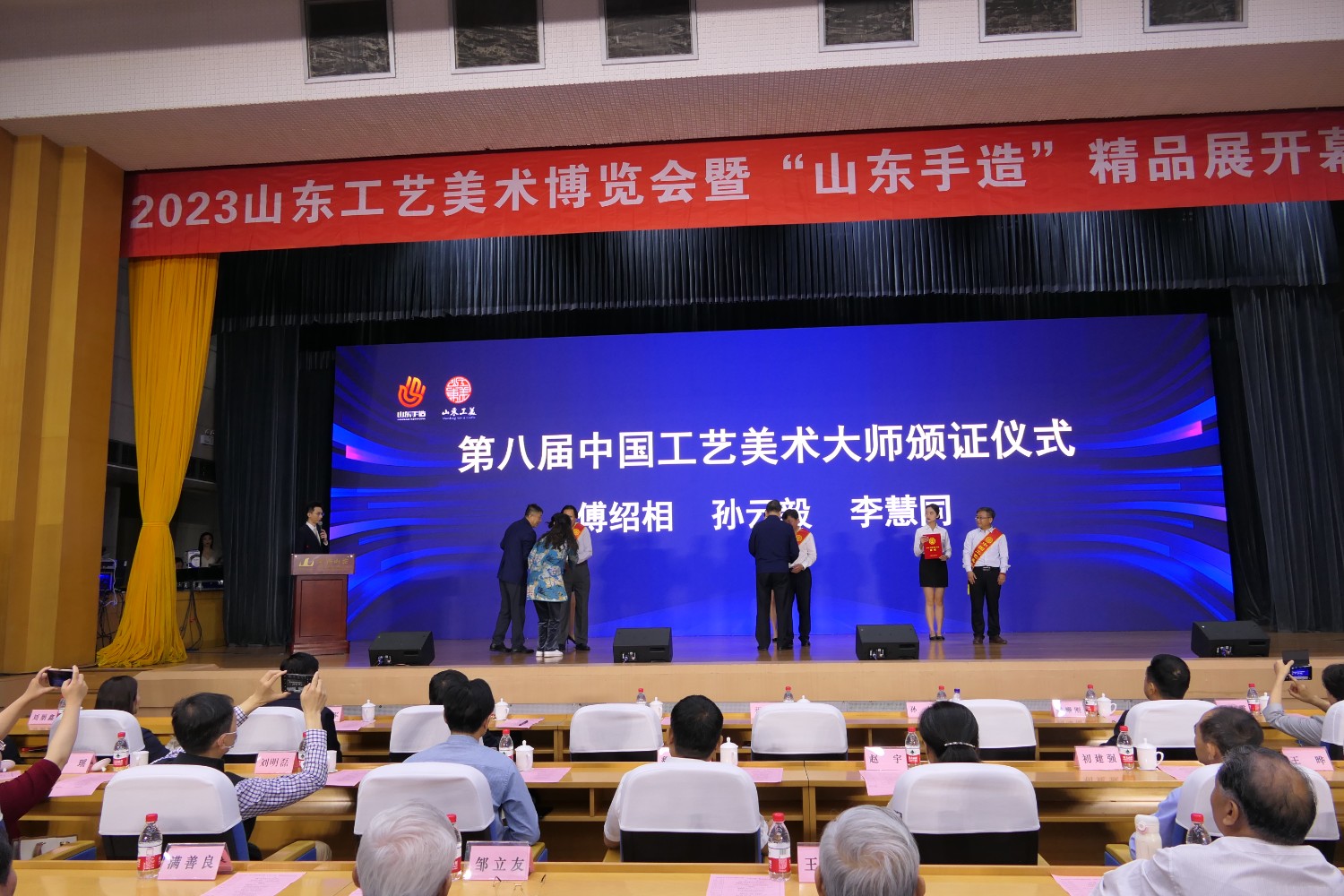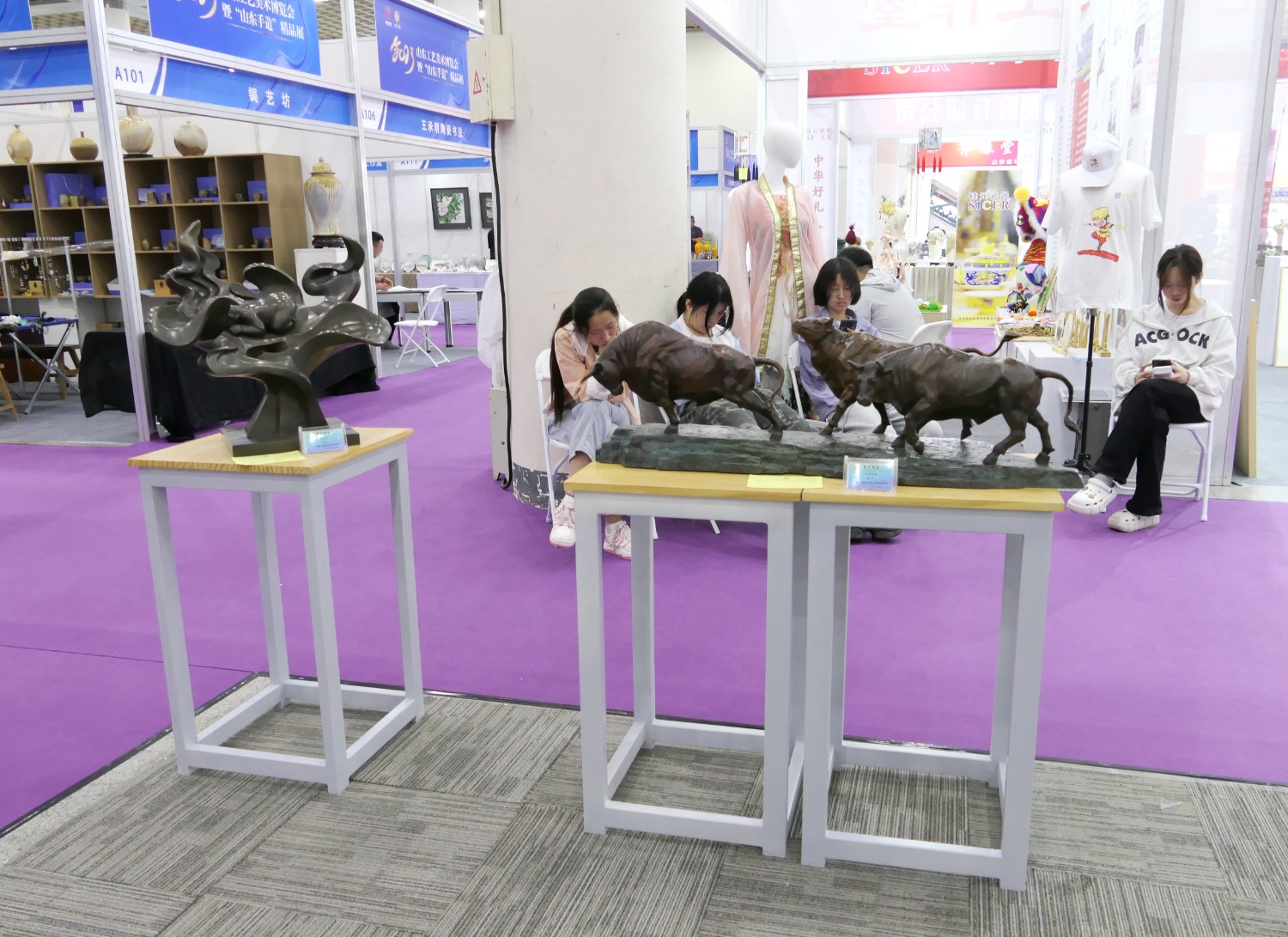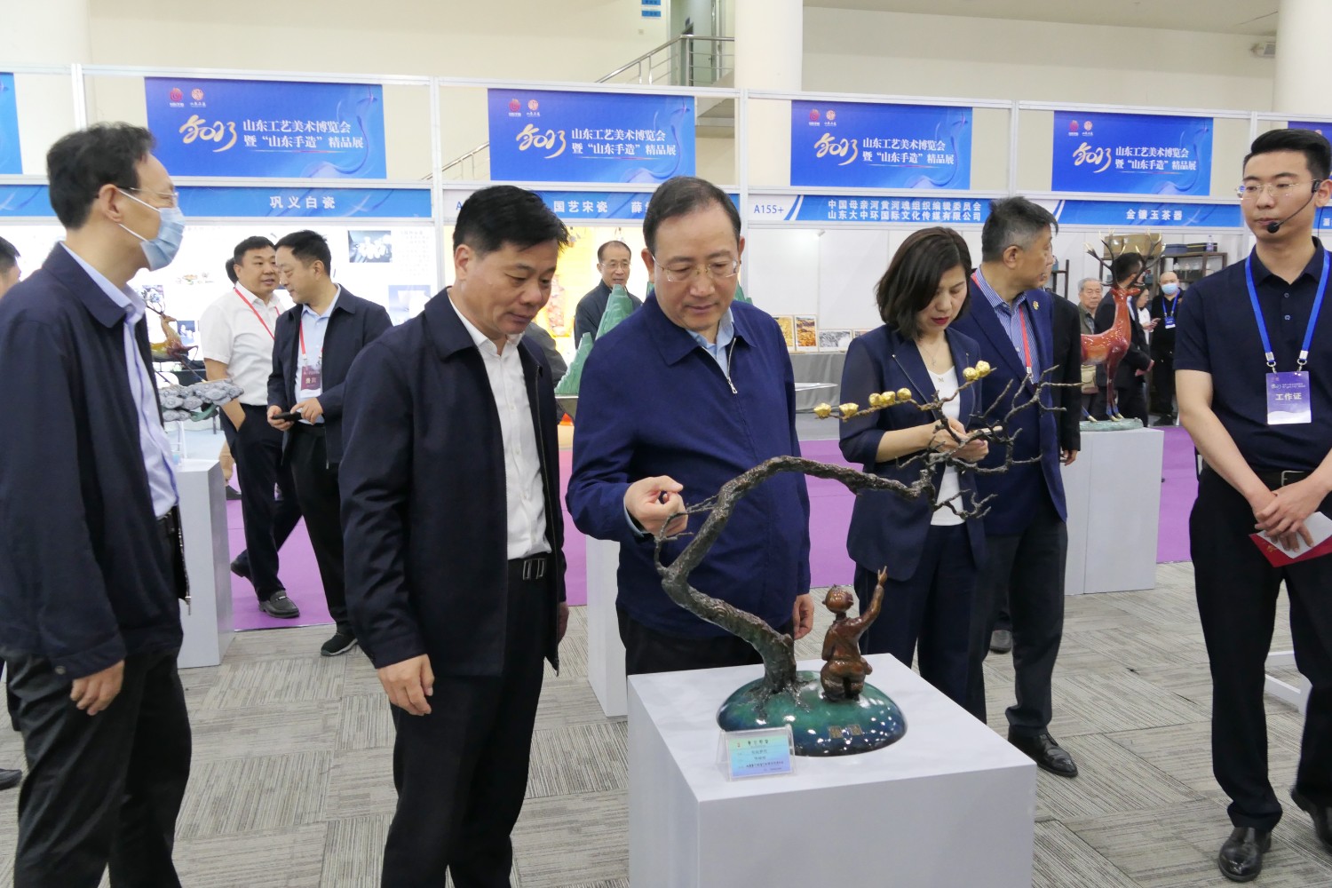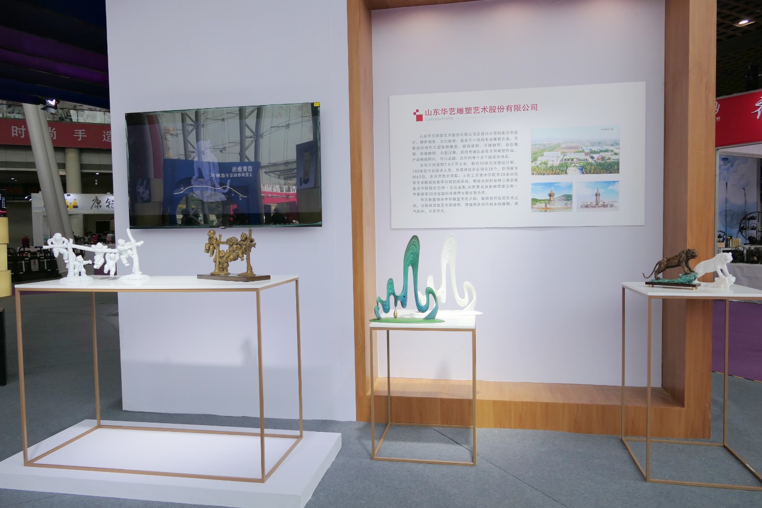 2023-7-192023年5月12日,由山東省工業(yè)和信息化廳、中共山東省委宣傳部、山東省商務廳主辦的“璀璨工美?時尚手造”2023山東工藝美術博覽會暨“山東手造”精品展,在舜耕國際會展中心盛大開幕。開幕式以“山東手造”宣傳片揭開序幕,“四廊一線”文化體驗廊道為主線,展示不同地域文化孕育出的獨特手造產(chǎn)品,以歷史文脈為依托, 展現(xiàn)文化地標風景的同時突出“山東手造”地域特色。歌舞、樂器、合奏……陣陣掌聲,現(xiàn)場還舉辦了“第八屆中國工藝美術大師”傅紹相,孫云毅,李慧同三人的頒證儀式和淄博市文化“兩新”新品發(fā)布等活動,由程守田、才大穎、孫燁、羅新軍、臧耀剛、王哲軍、袁敏等領導嘉賓共同觸發(fā)啟動手印,2023山東工藝美術博覽會暨“山東手造”精品展正式啟動。領導嘉賓巡展,程守田、才大穎、王哲軍、袁敏等領導對中國工藝美術大師傅紹相《一路祥瑞》等作品給予高度評價。此次展會華藝雕塑遴選近30件青銅藝術精品參展,展會期間傅紹相接受山東省“新黃河”頻道記者任曉雯的采訪、山東省電視臺尚士春主任的采訪,并與山東省電視臺主持人毛馨,山東省工藝美術協(xié)會會長袁敏等交流雕塑藝術并合影留念。華藝雕塑傅東總經(jīng)理參展作品《飛天》、傅思涵《福祿祥瑞》、譚炳《鹿伏鶴行》、譚建偉《至圣先師-孔子》、郭寧《呵護》榮獲“荷花杯”山東省工藝美術設計創(chuàng)新大賽金獎;同時傅東總經(jīng)理參展作品《飛天》榮獲“2023山東省工藝美術設計創(chuàng)新獎”。