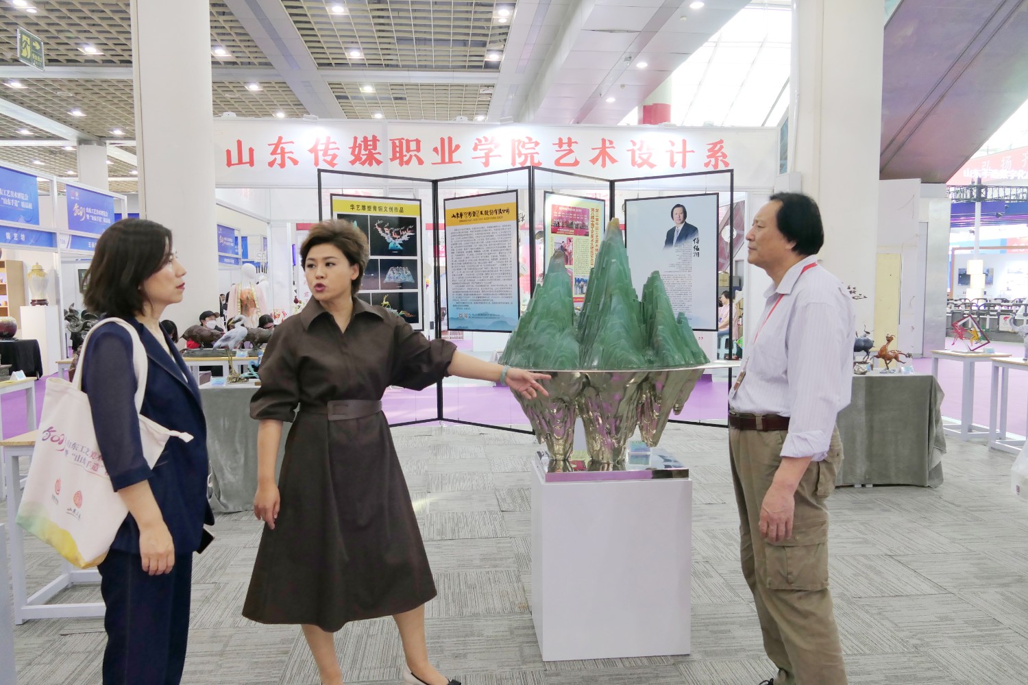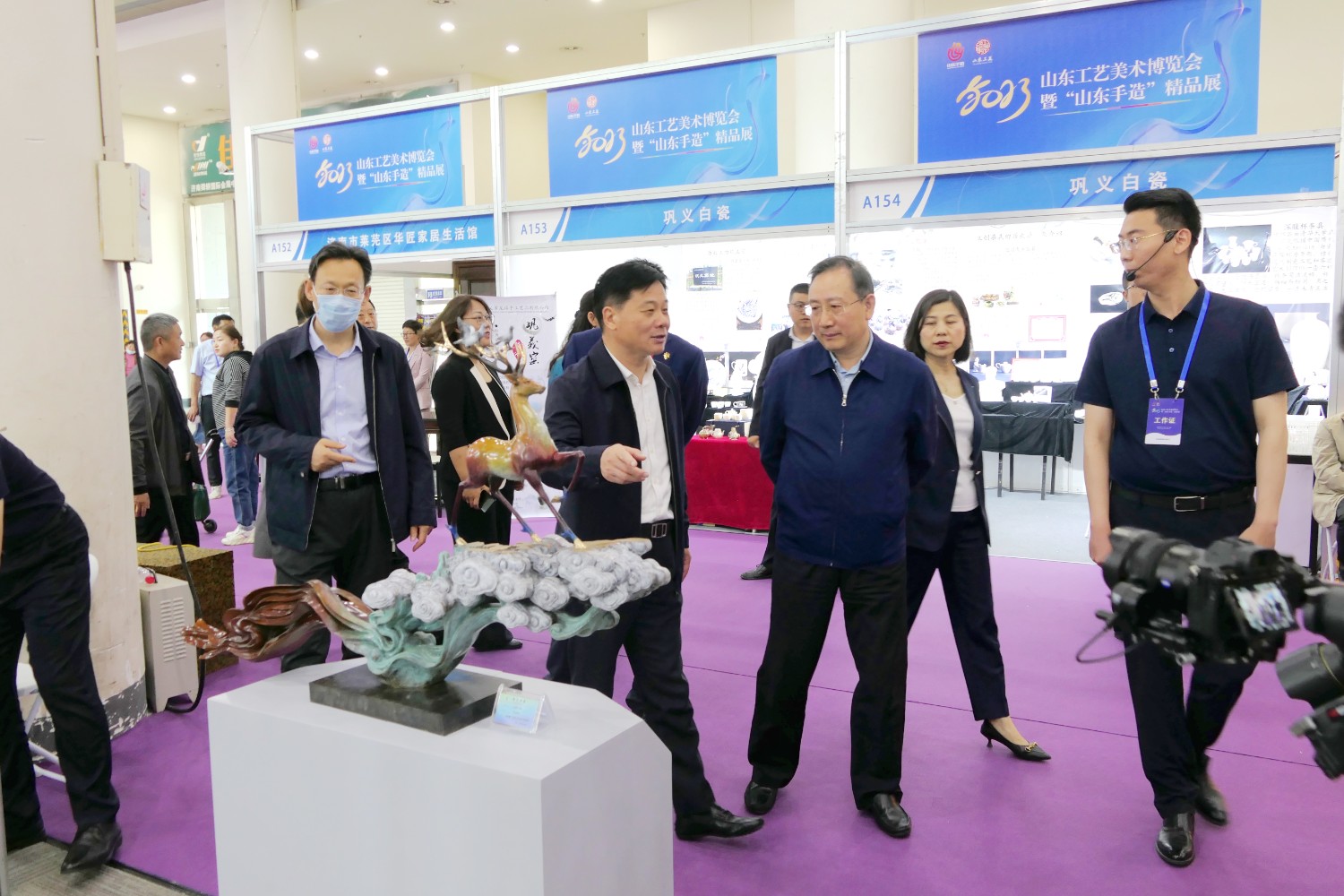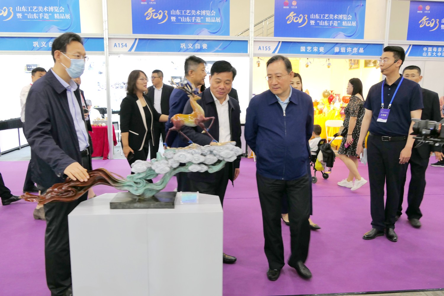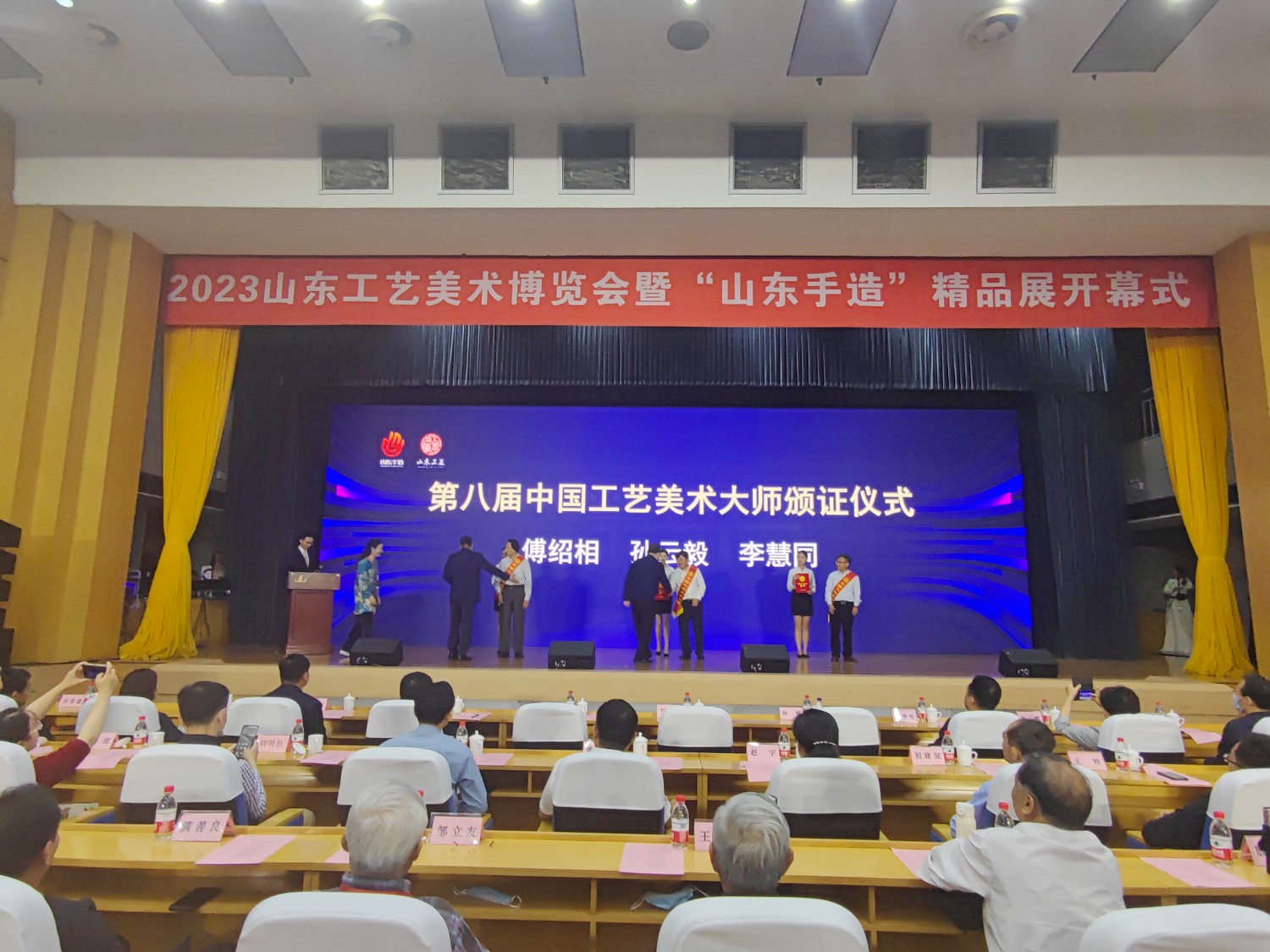 2023-7-192023年5月12日,由山東省工業(yè)和信息化廳、中共山東省委宣傳部、山東省商務廳主辦的“璀璨工美?時尚手造”2023山東工藝美術博覽會暨“山東手造”精品展,在舜耕國際會展中心盛大開幕。開幕式以“山東手造”宣傳片揭開序幕,“四廊一線”文化體驗廊道為主線,展示不同地域文化孕育出的獨特手造產(chǎn)品,以歷史文脈為依托, 展現(xiàn)文化地標風景的同時突出“山東手造”地域特色。歌舞、樂器、合奏……陣陣掌聲,現(xiàn)場還舉辦了“第八屆中國工藝美術大師”傅紹相,孫云毅,李慧同三人的頒證儀式和淄博市文化“兩新”新品發(fā)布等活動,由程守田、才大穎、孫燁、羅新軍、臧耀剛、王哲軍、袁敏等領導嘉賓共同觸發(fā)啟動手印,2023山東工藝美術博覽會暨“山東手造”精品展正式啟動。領導嘉賓巡展,程守田、才大穎、王哲軍、袁敏等領導對中國工藝美術大師傅紹相《一路祥瑞》等作品給予高度評價。此次展會華藝雕塑遴選近30件青銅藝術精品參展,展會期間傅紹相接受山東省“新黃河”頻道記者任曉雯的采訪、山東省電視臺尚士春主任的采訪,并與山東省電視臺主持人毛馨,山東省工藝美術協(xié)會會長袁敏等交流雕塑藝術并合影留念。華藝雕塑傅東總經(jīng)理參展作品《飛天》、傅思涵《福祿祥瑞》、譚炳《鹿伏鶴行》、譚建偉《至圣先師-孔子》、郭寧《呵護》榮獲“荷花杯”山東省工藝美術設計創(chuàng)新大賽金獎;同時傅東總經(jīng)理參展作品《飛天》榮獲“2023山東省工藝美術設計創(chuàng)新獎”。