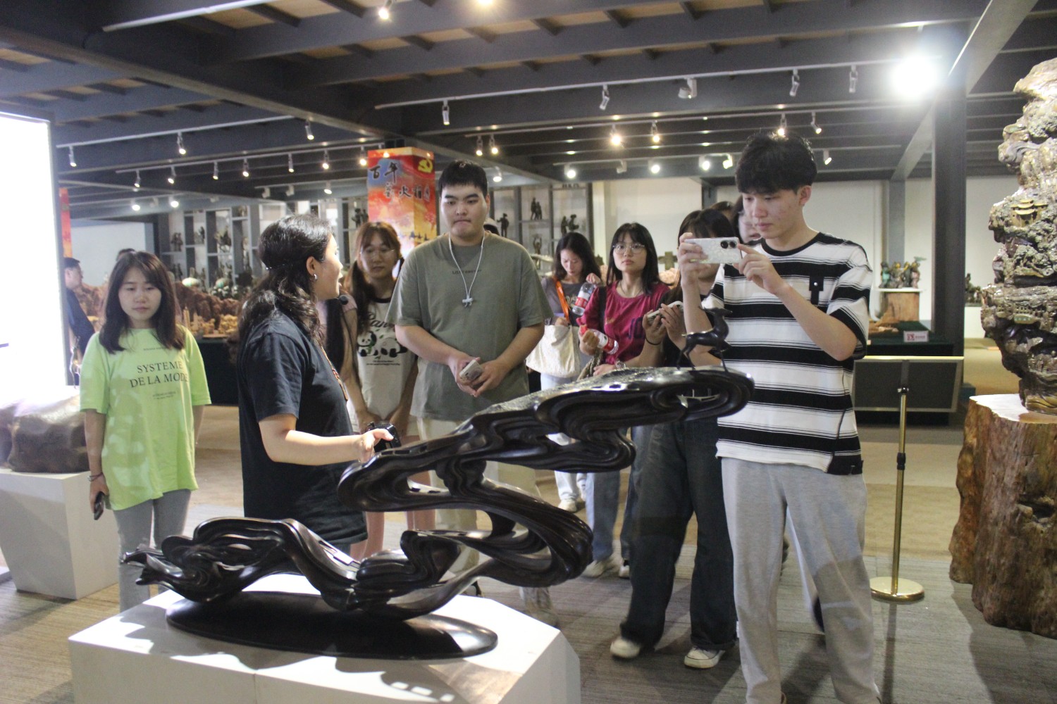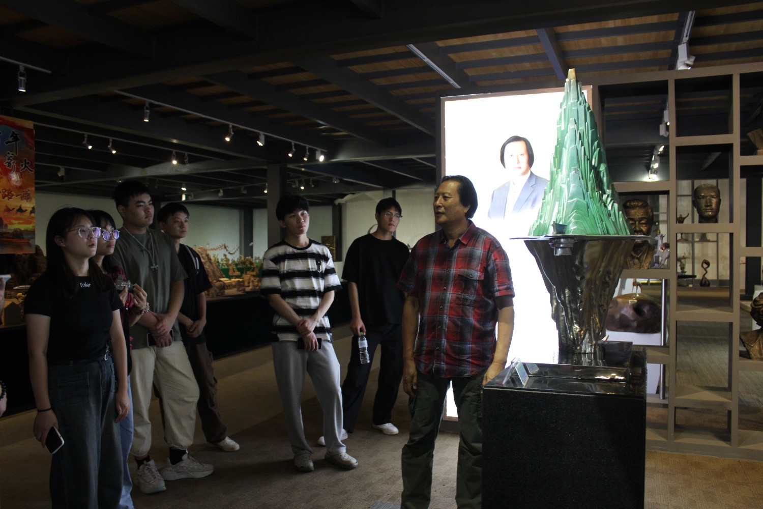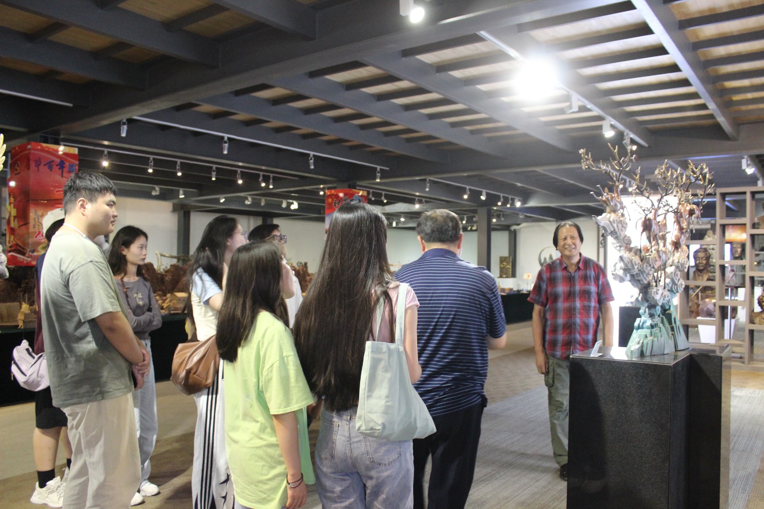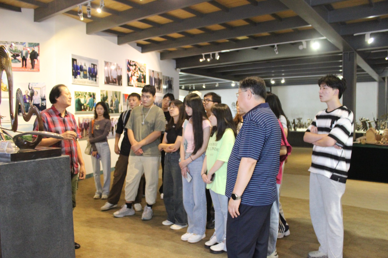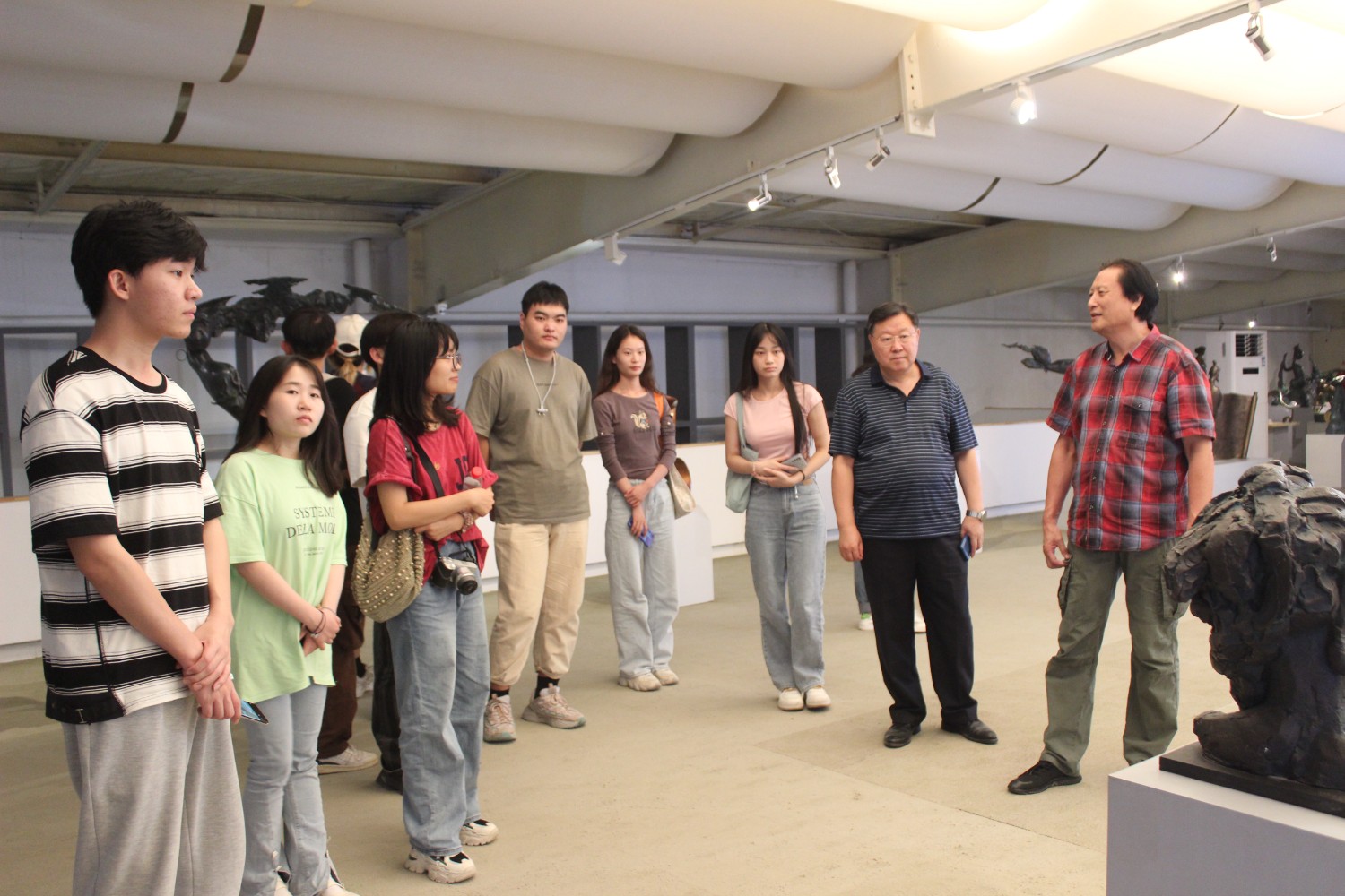 2023年9月13日,山東藝術(shù)學(xué)院教授、碩士研究生導(dǎo)師、工藝美術(shù)學(xué)主任鄭軍先生帶領(lǐng)13位學(xué)生,蒞臨華藝雕塑參觀學(xué)習(xí),中國工美藝術(shù)大師、華藝雕塑董事長傅紹相先生介紹雕塑藝術(shù),并與鄭軍教授和同學(xué)們合影留念。