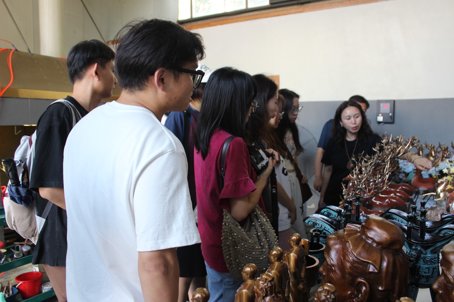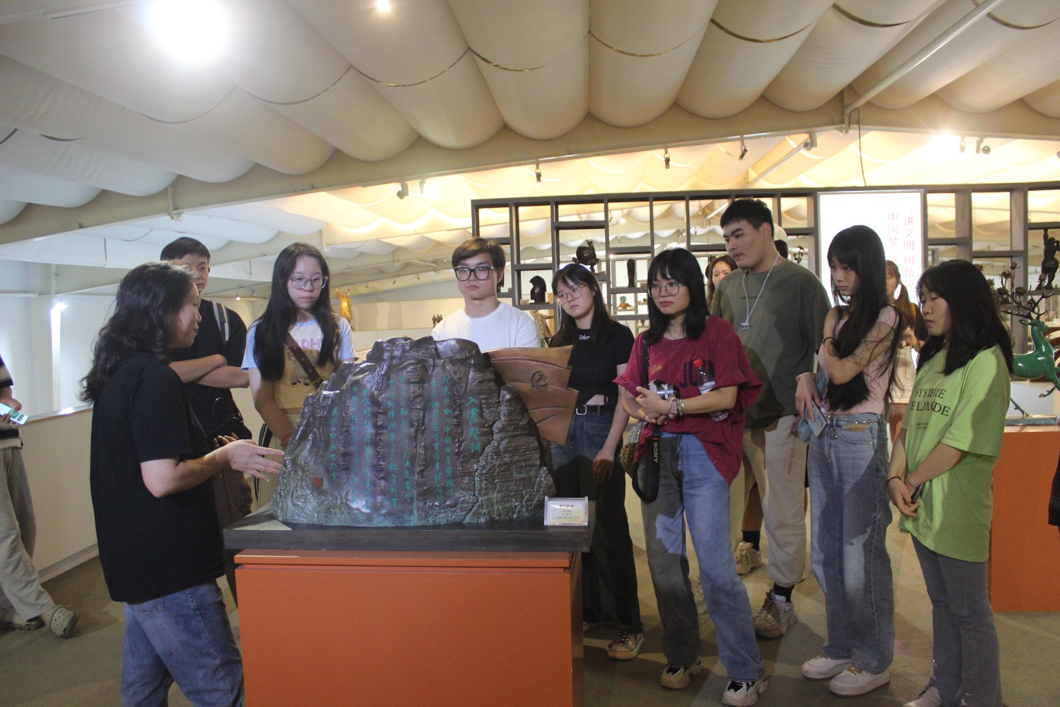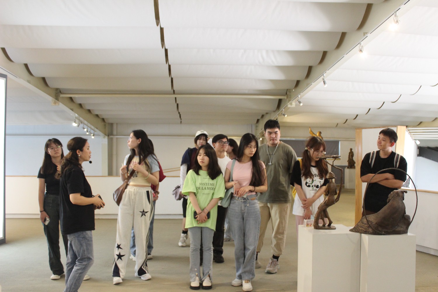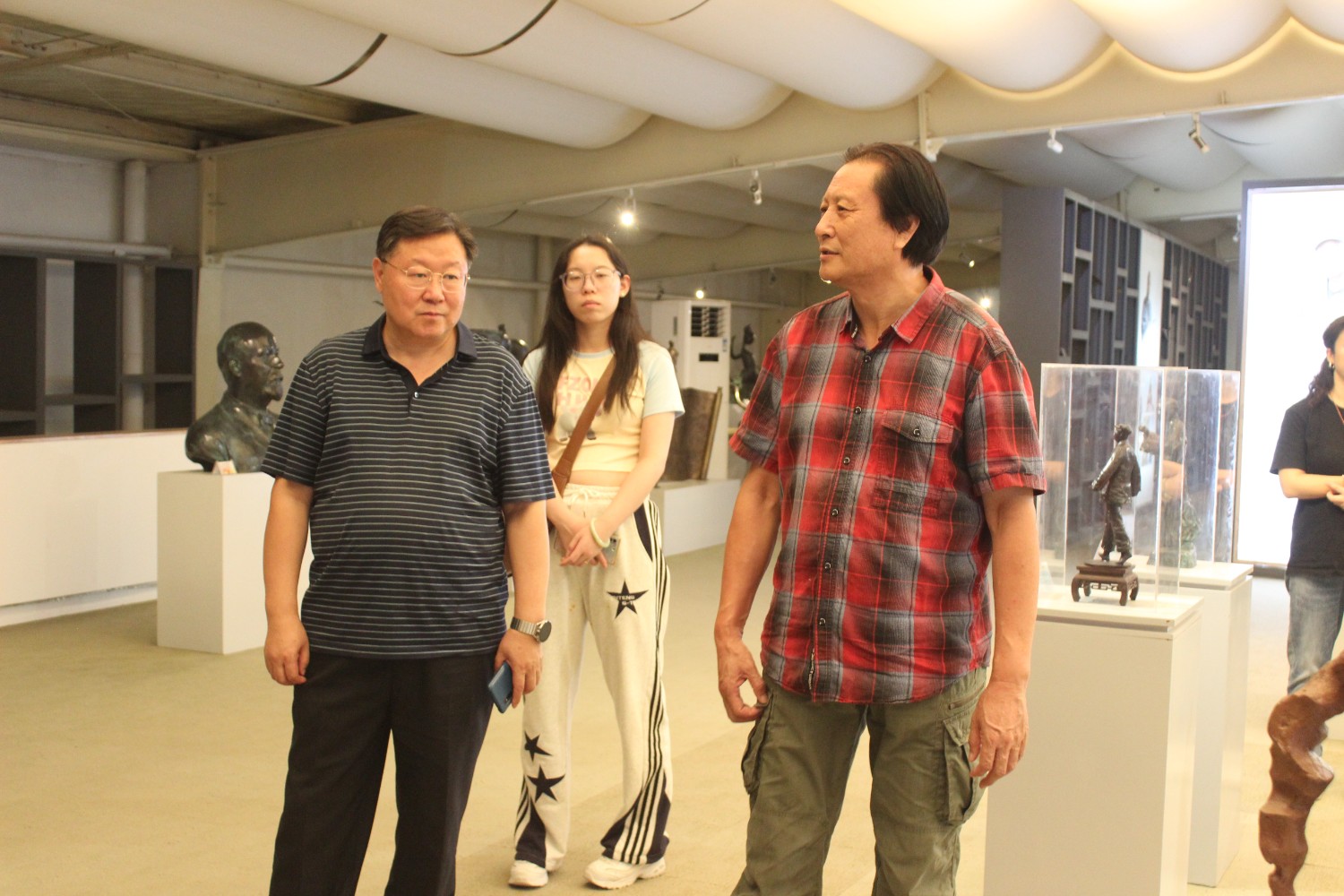 2023年9月13日,山東藝術(shù)學(xué)院教授、碩士研究生導(dǎo)師、工藝美術(shù)學(xué)主任鄭軍先生帶領(lǐng)13位學(xué)生,蒞臨華藝雕塑參觀學(xué)習(xí),中國工美藝術(shù)大師、華藝雕塑董事長傅紹相先生介紹雕塑藝術(shù),并與鄭軍教授和同學(xué)們合影留念。
