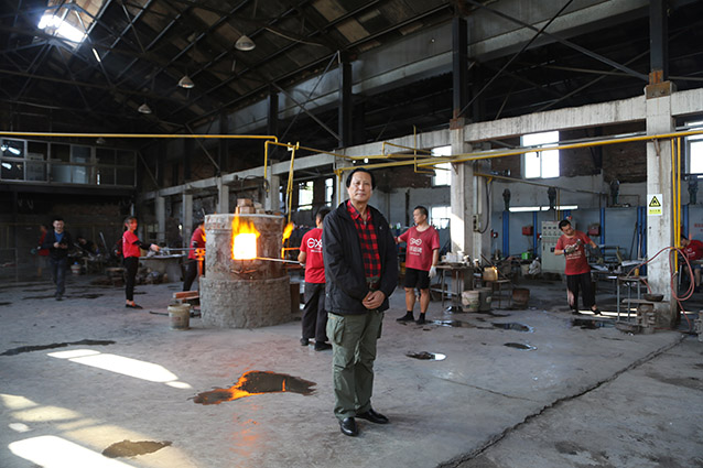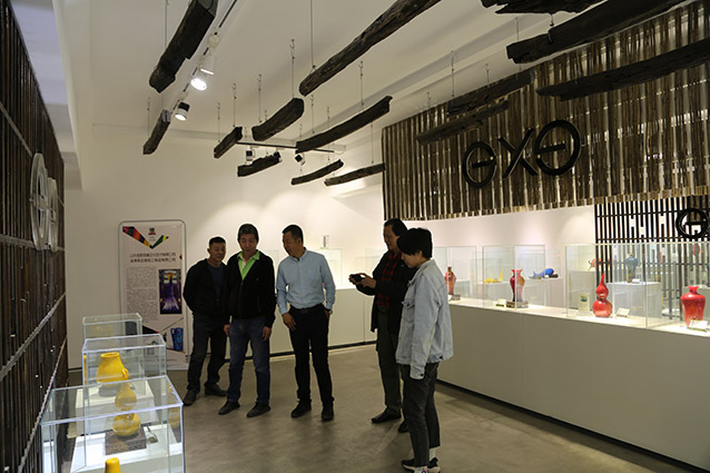 2019年10月8日,美國紐約藝術家郭楨教授、雕塑家韓冬先生、雕塑家張敏及傅紹相先生一同在淄博參觀山東陶瓷學院。耿大海院長陪同并前往山東金祥琉璃文化藝術有限公司交流,總經(jīng)理袁世祥介紹了琉璃藝術。中國工藝美術大師王孝誠先生介紹鼻煙壺,大家受益匪淺
